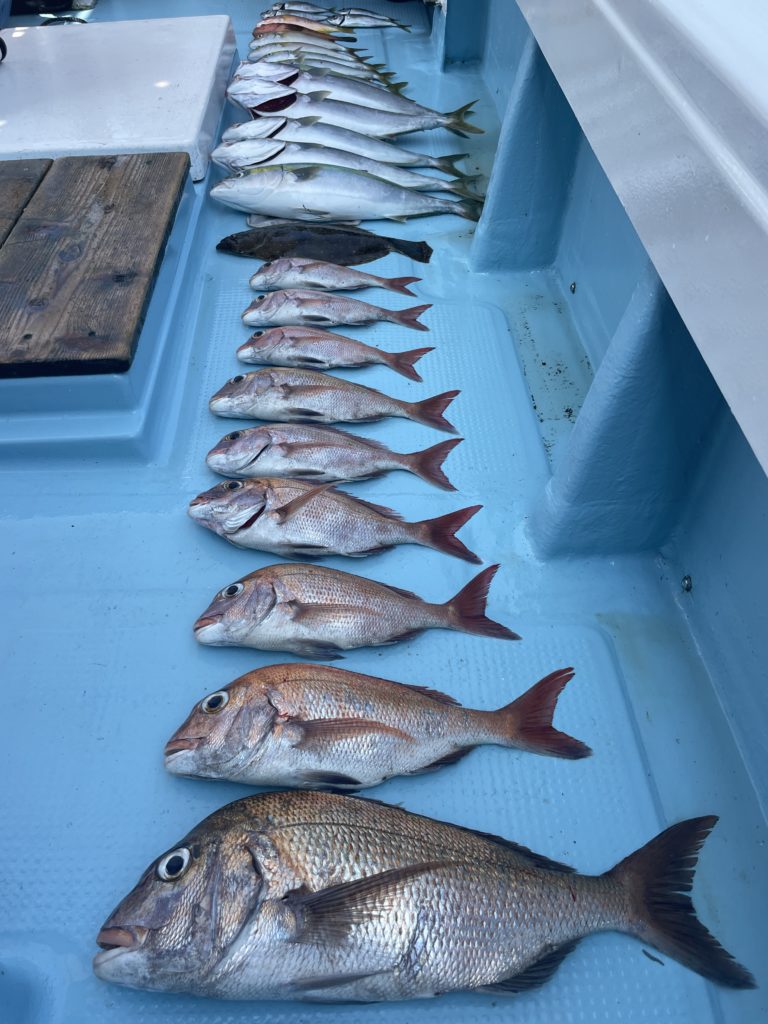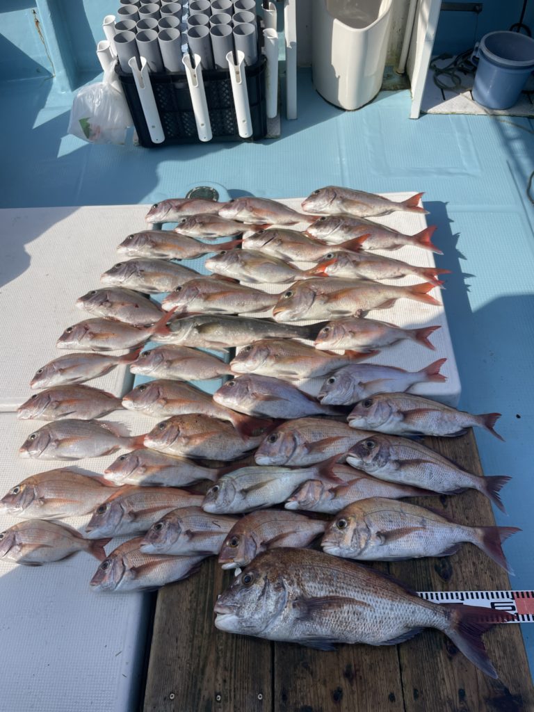 今週1週間は爆釣撃が続きました。船中100枚オーバー、1人42枚、良型連発と中々パンチのある1週間でした。潮が小さくなって来て当たりが朝一中々ない日もありましたが、ポイントを何度も移動して釣る日も多々ありましたが移動するたびに当たりもあり数、良型と良く釣れました。