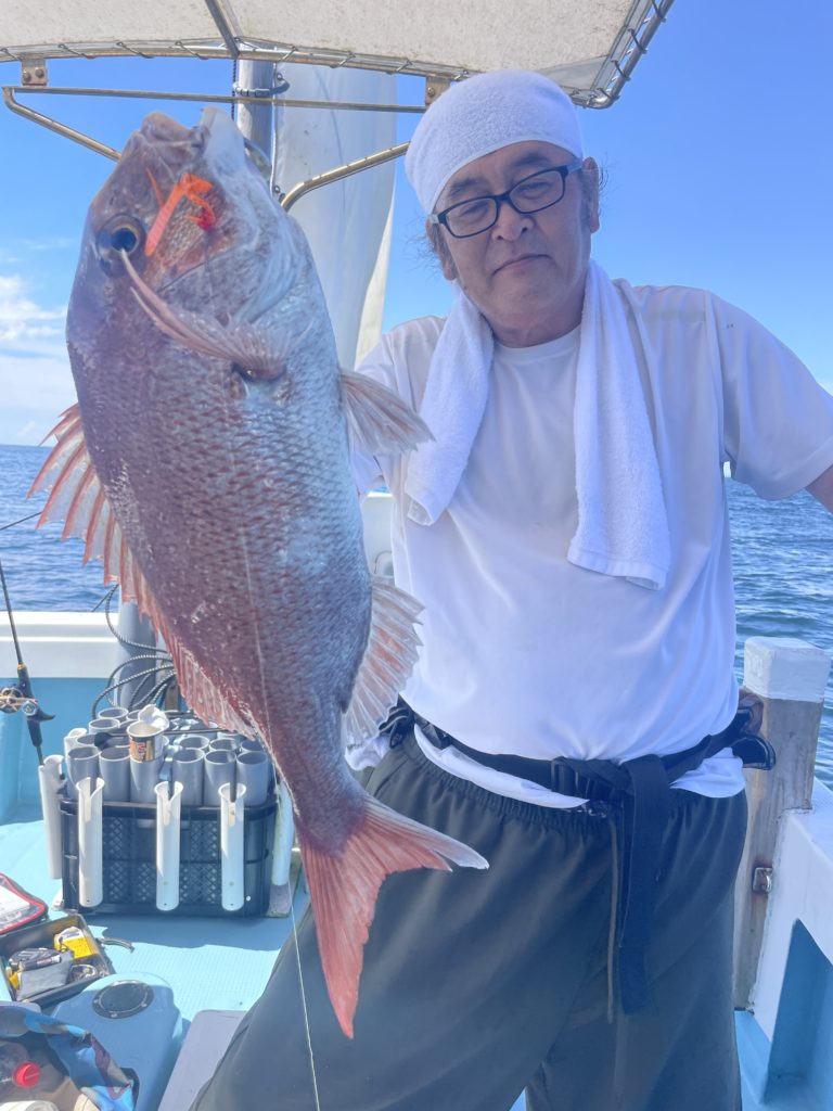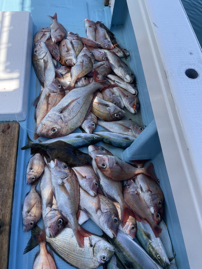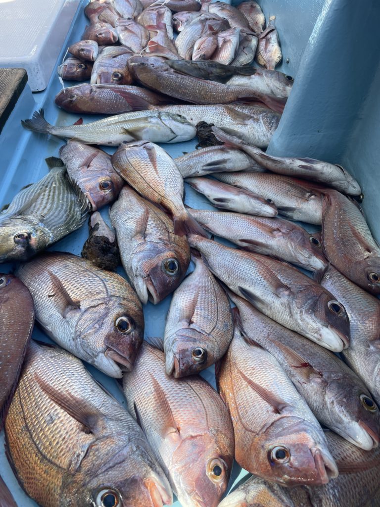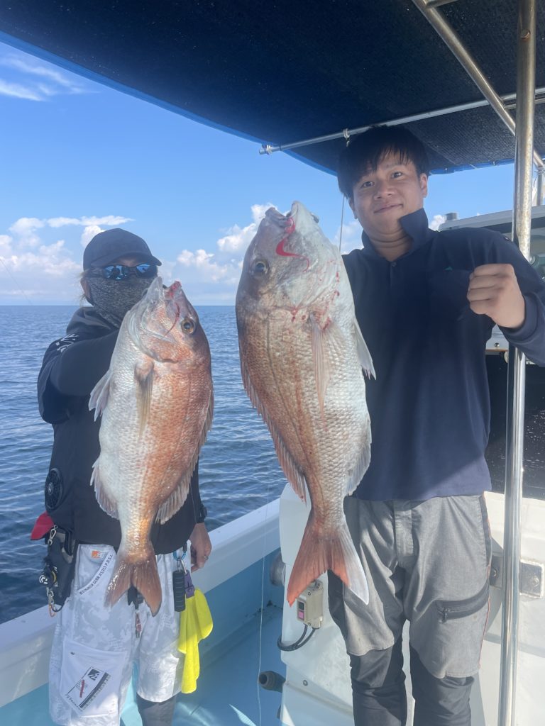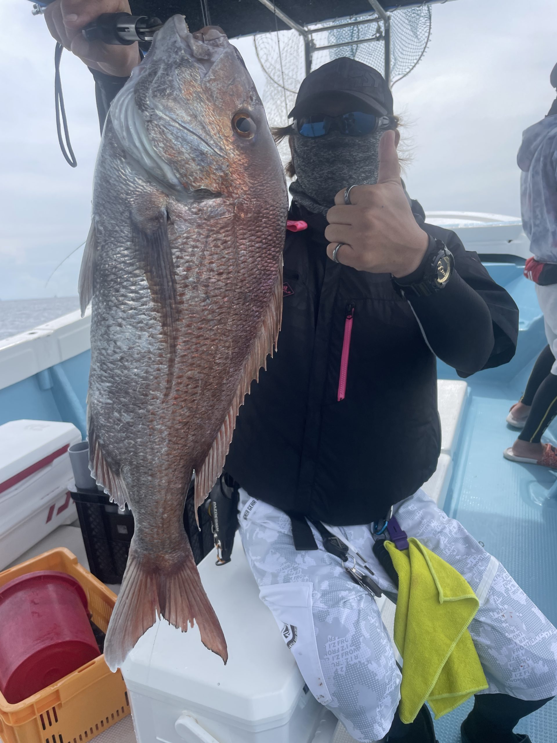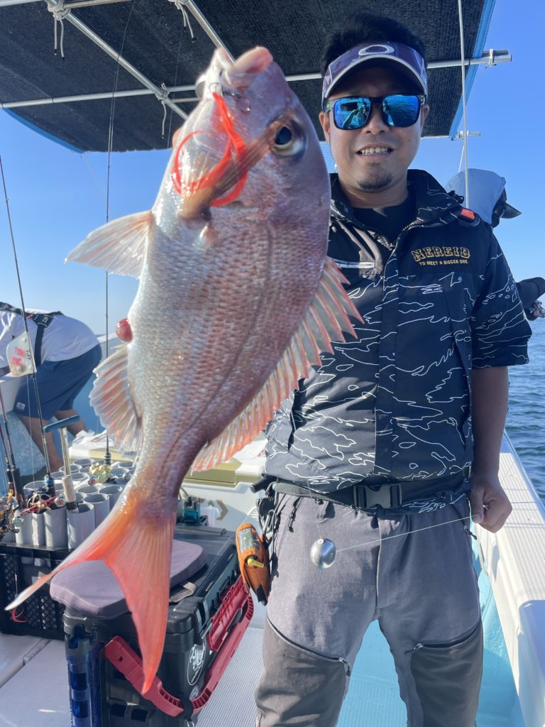 今週も当たりが良くあり、深場から浅場まで良く当たりました。週の前半はサイズ、型が狙えて楽しめました。週の中は台風が来て2日お休み頂きました。台風の影響で濁りがあるかなと思いましたが、水の色を見ても濁りがなく水温も27〜28°と少し下がり台風明けは深場で良く釣れて楽しめました。