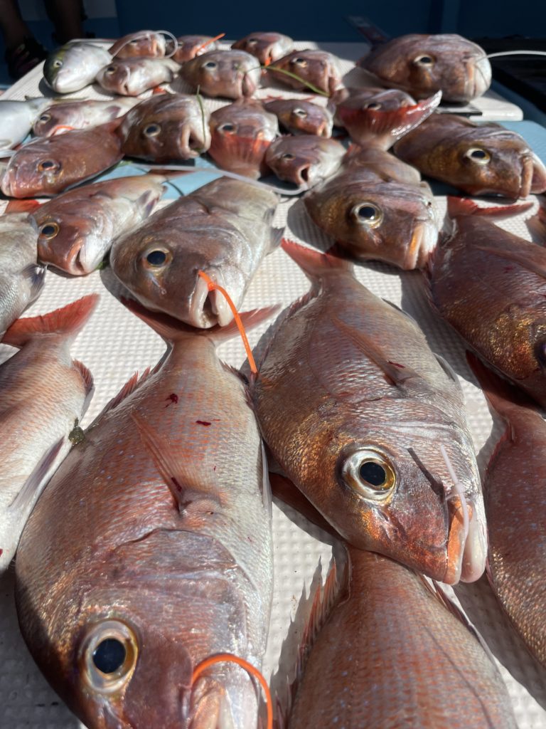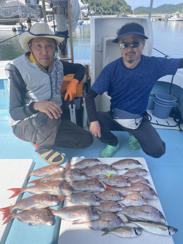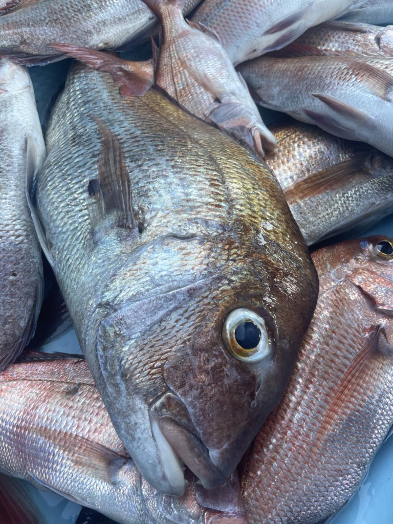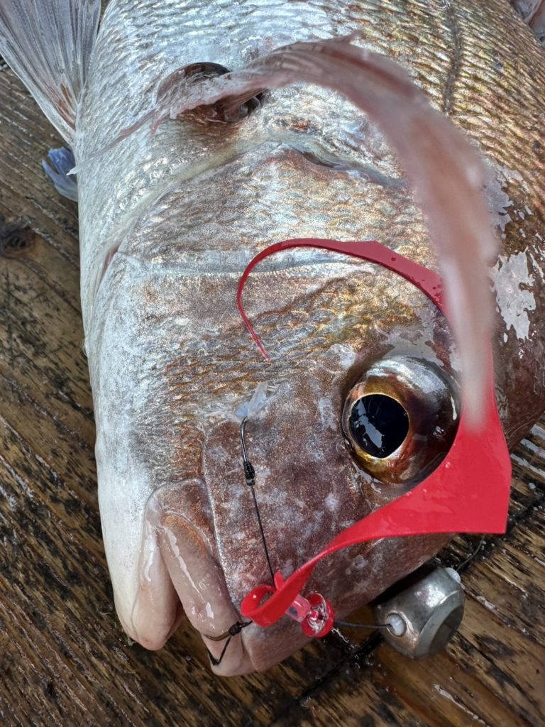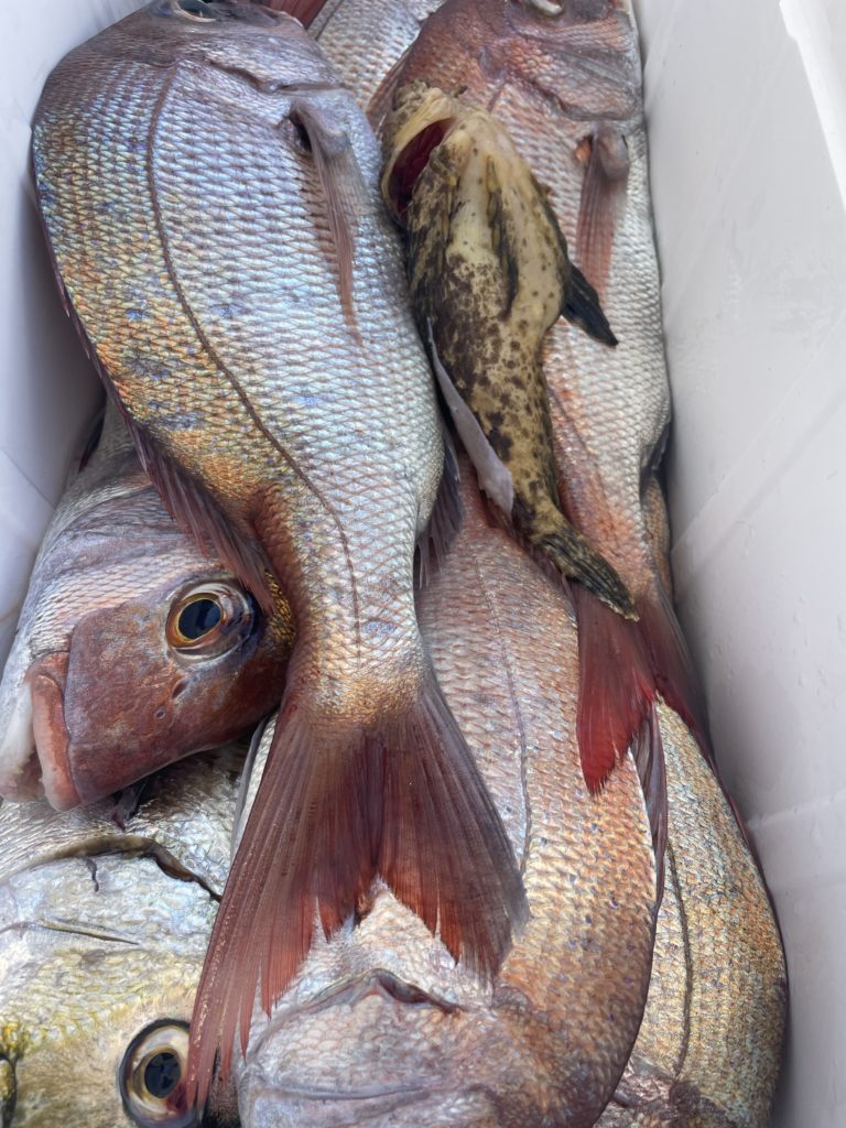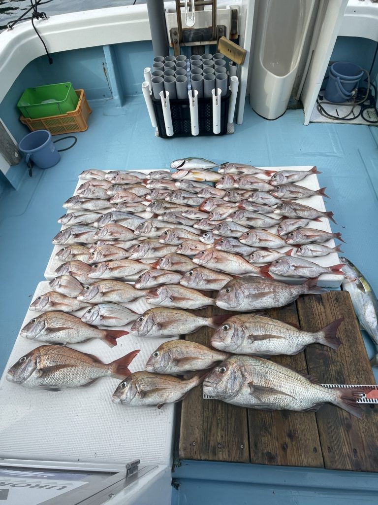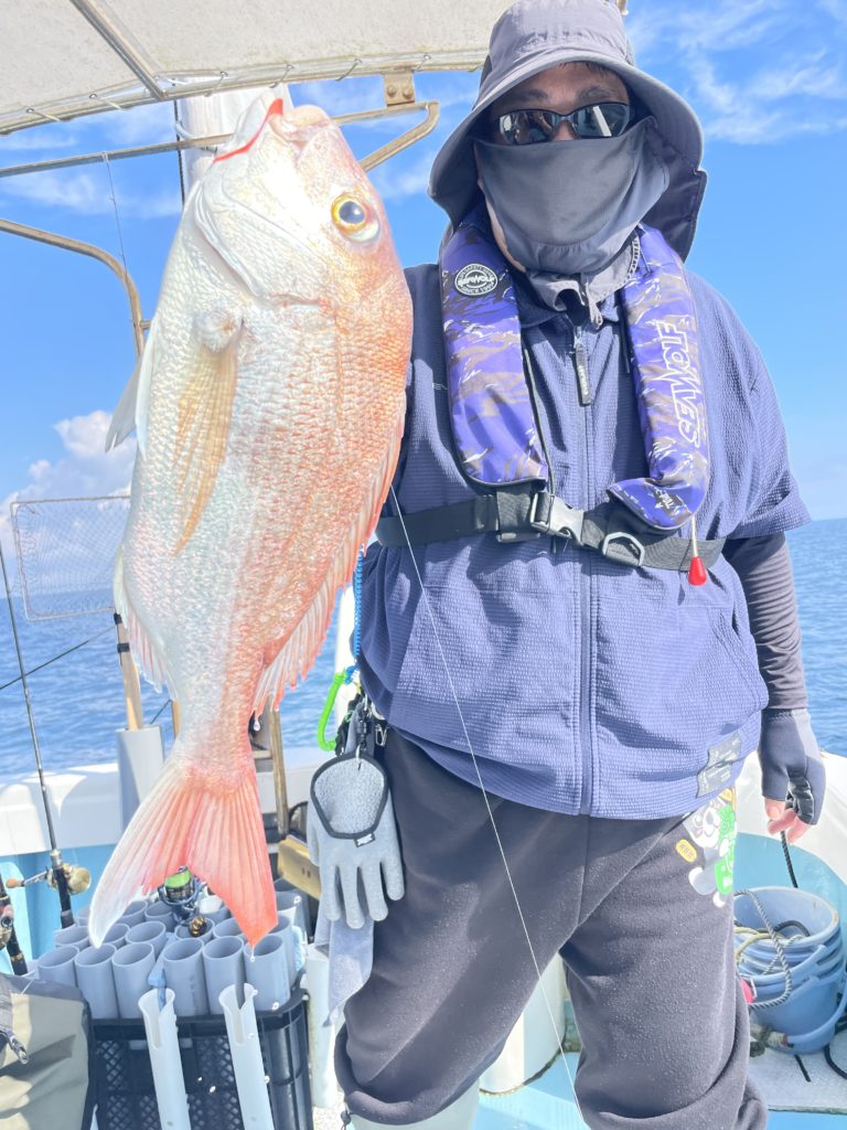 今週も当たりが良くあり、深場から浅場まで良く当たりました。週の前半はサイズ、型が狙えて楽しめました。週の中は台風が来て2日お休み頂きました。台風の影響で濁りがあるかなと思いましたが、水の色を見ても濁りがなく水温も27〜28°と少し下がり台風明けは深場で良く釣れて楽しめました。