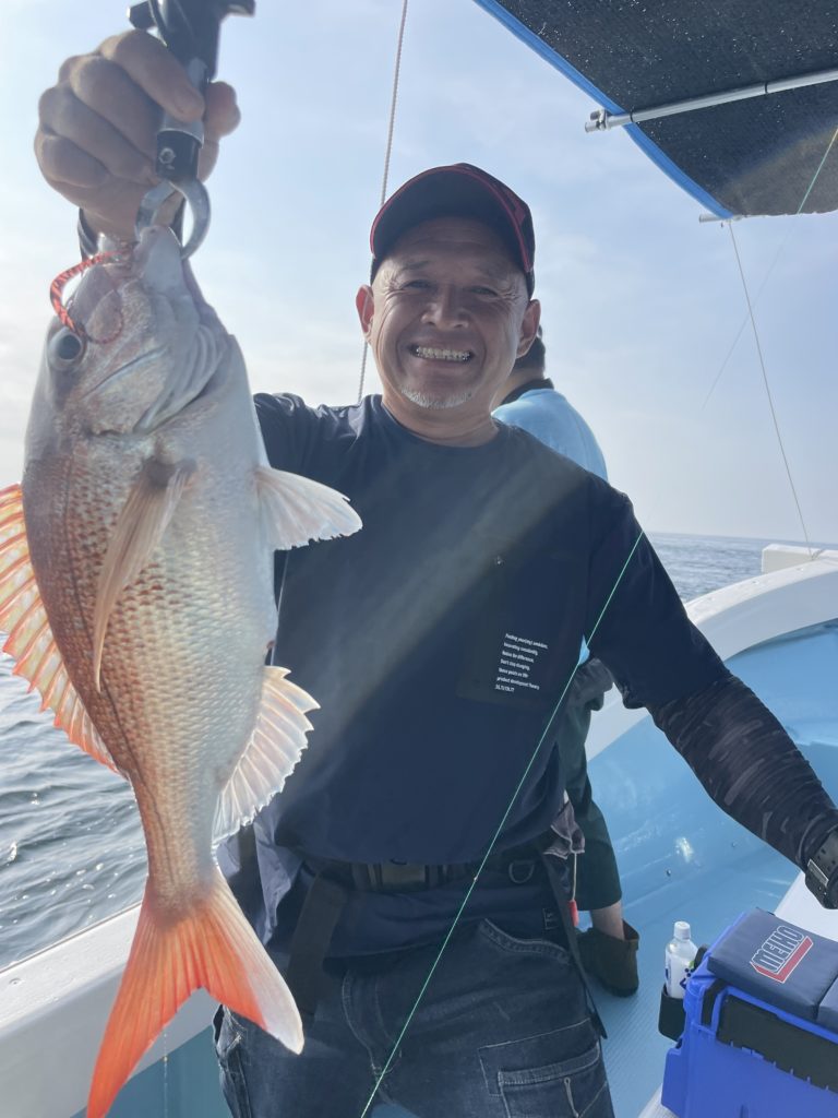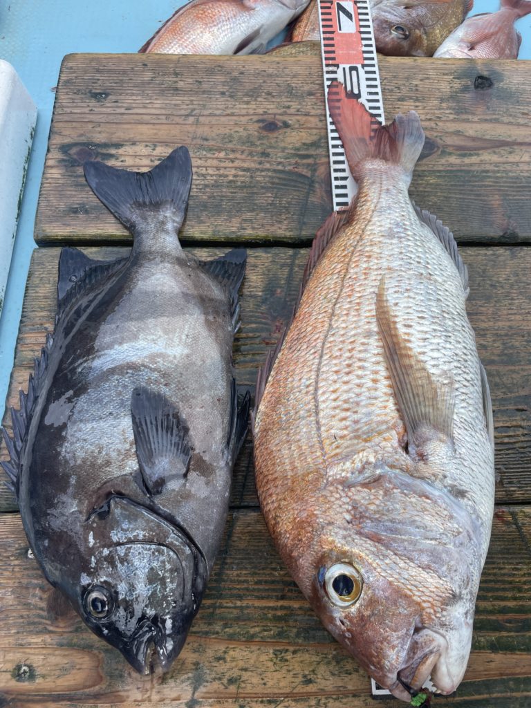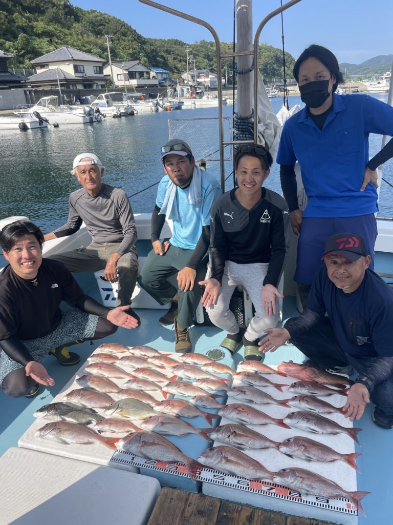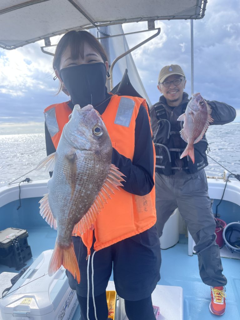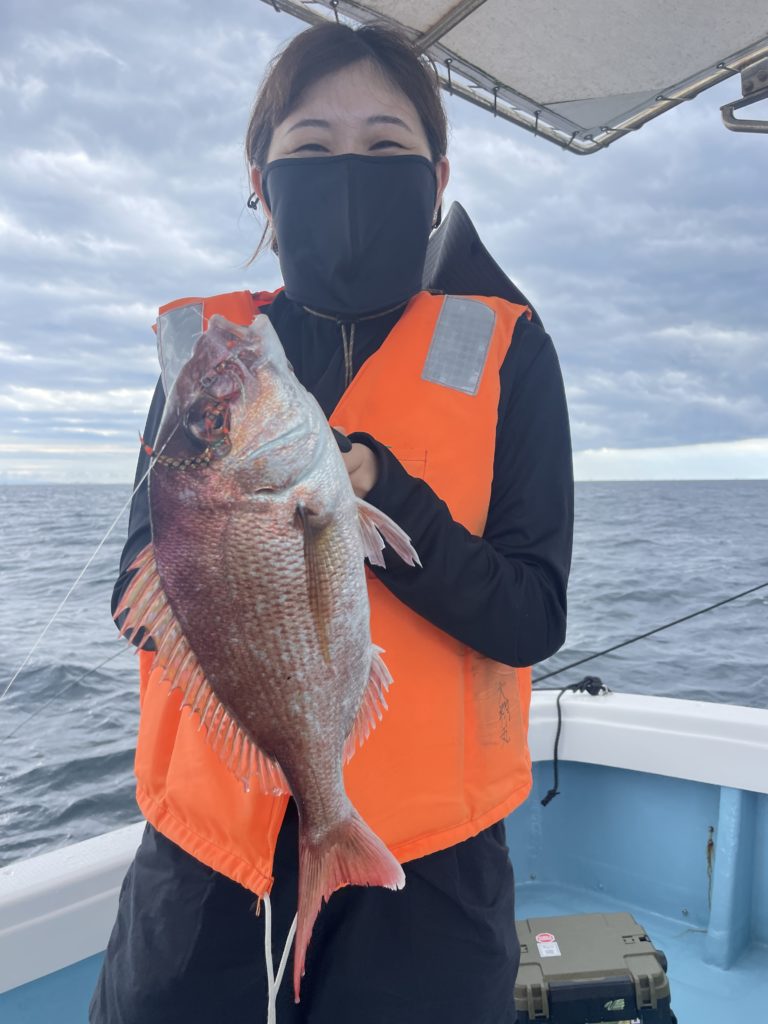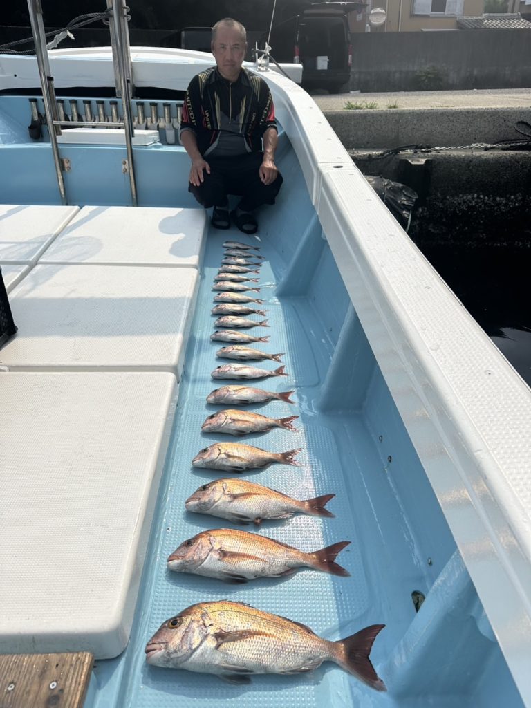 今週は中々渋い日が続きました。魚探に反応があっても当たりがなく移動移動で釣りをしました。深場、磯近くを攻めて渋いながらも数、良型もボチボチ釣れて良かったです。釣り初めての方も全員鯛が釣れて良かったです。