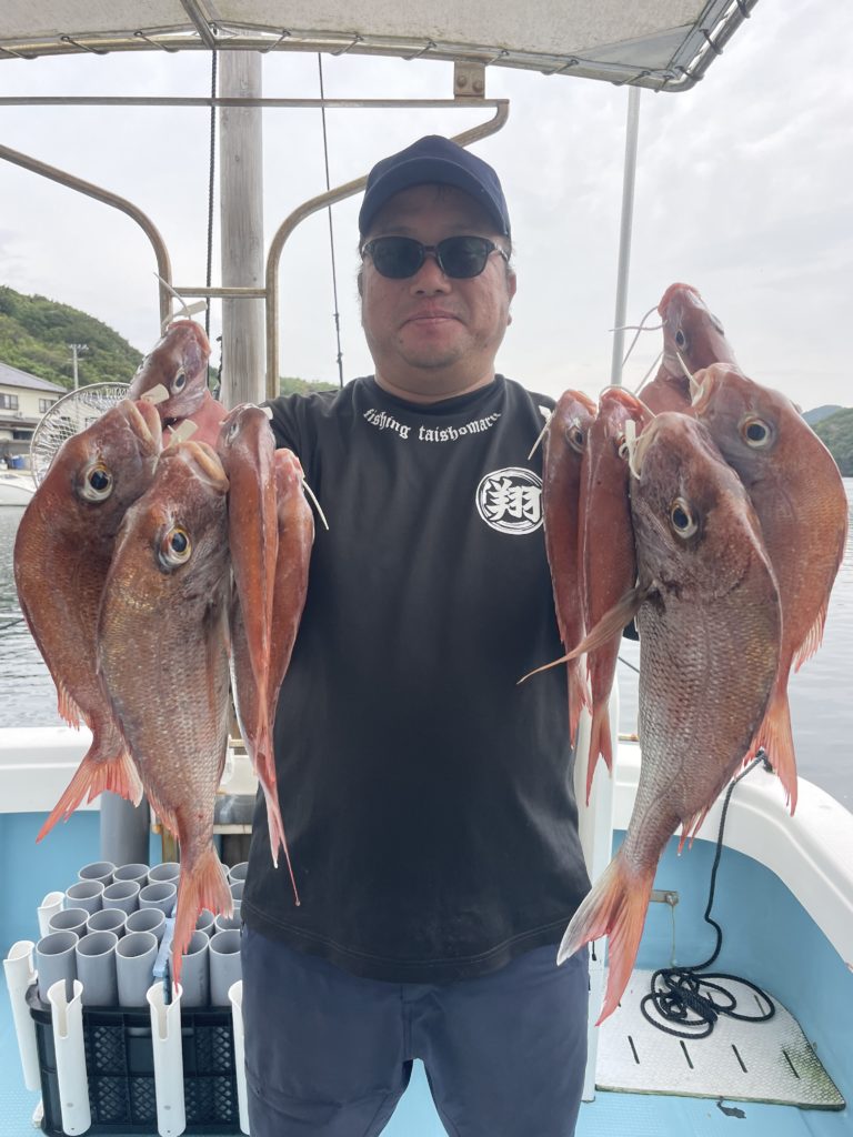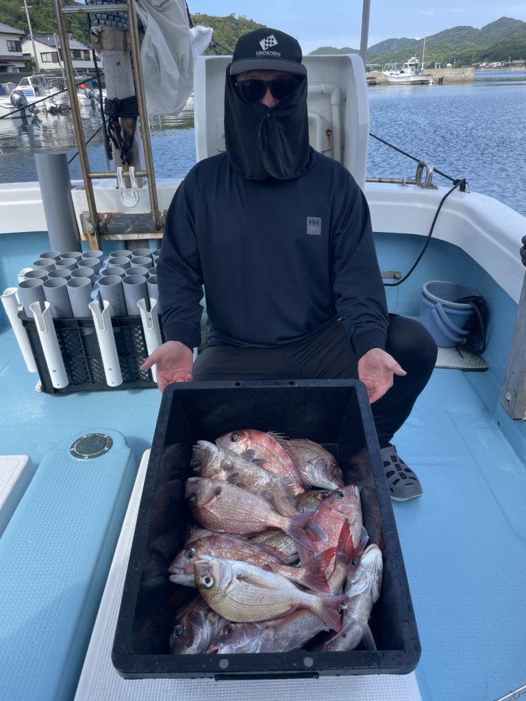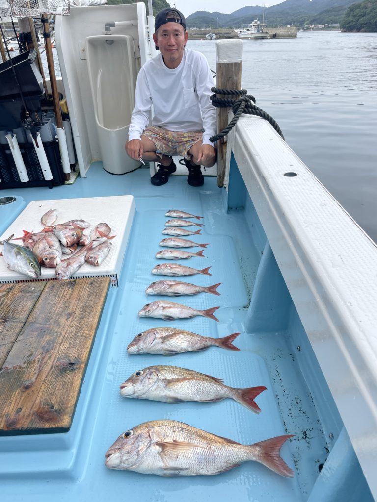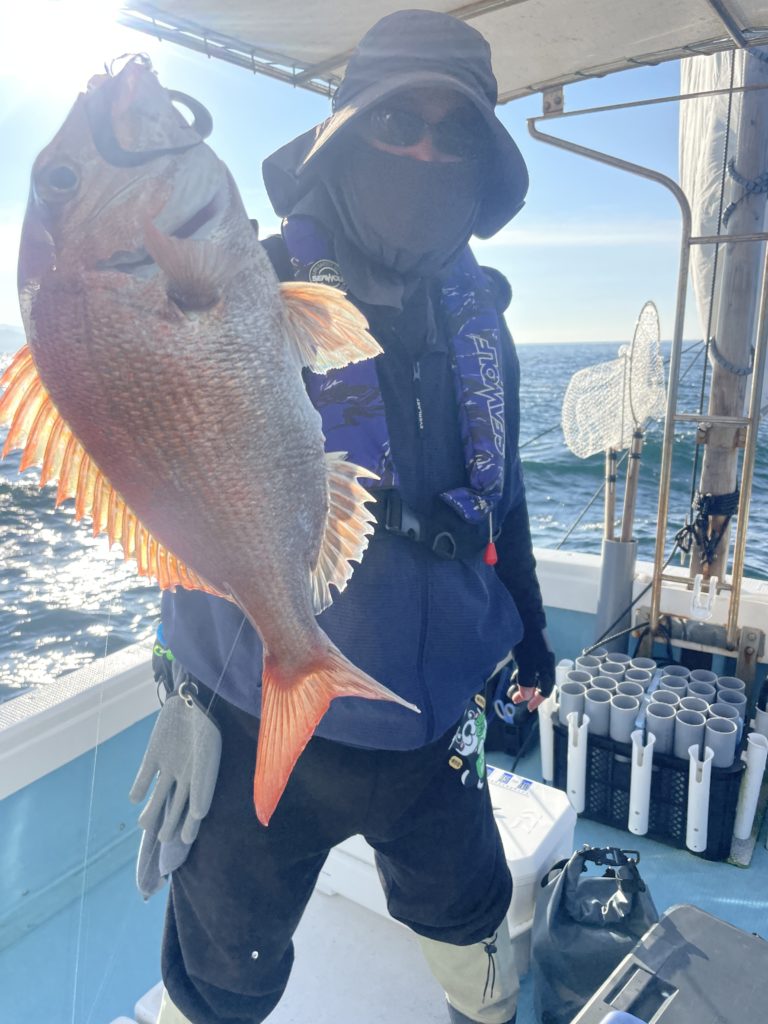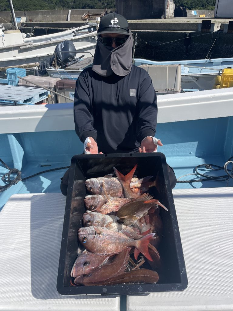 今週は中々渋い日が続きました。魚探に反応があっても当たりがなく移動移動で釣りをしました。深場、磯近くを攻めて渋いながらも数、良型もボチボチ釣れて良かったです。釣り初めての方も全員鯛が釣れて良かったです。