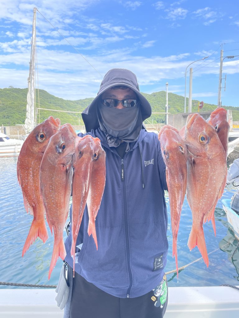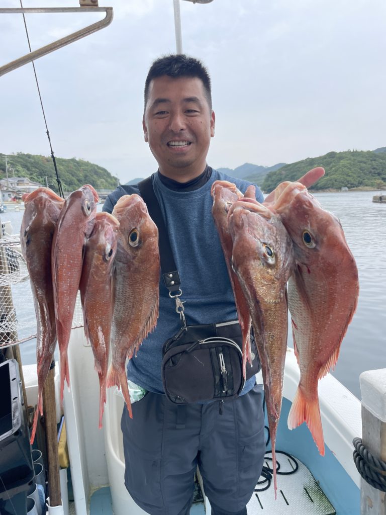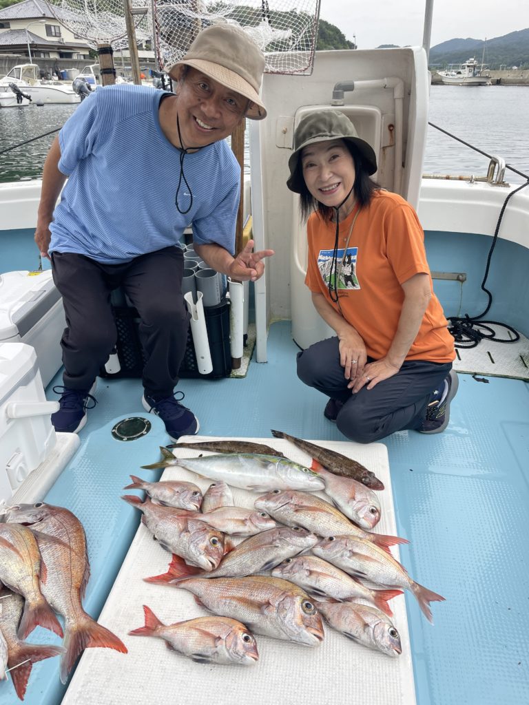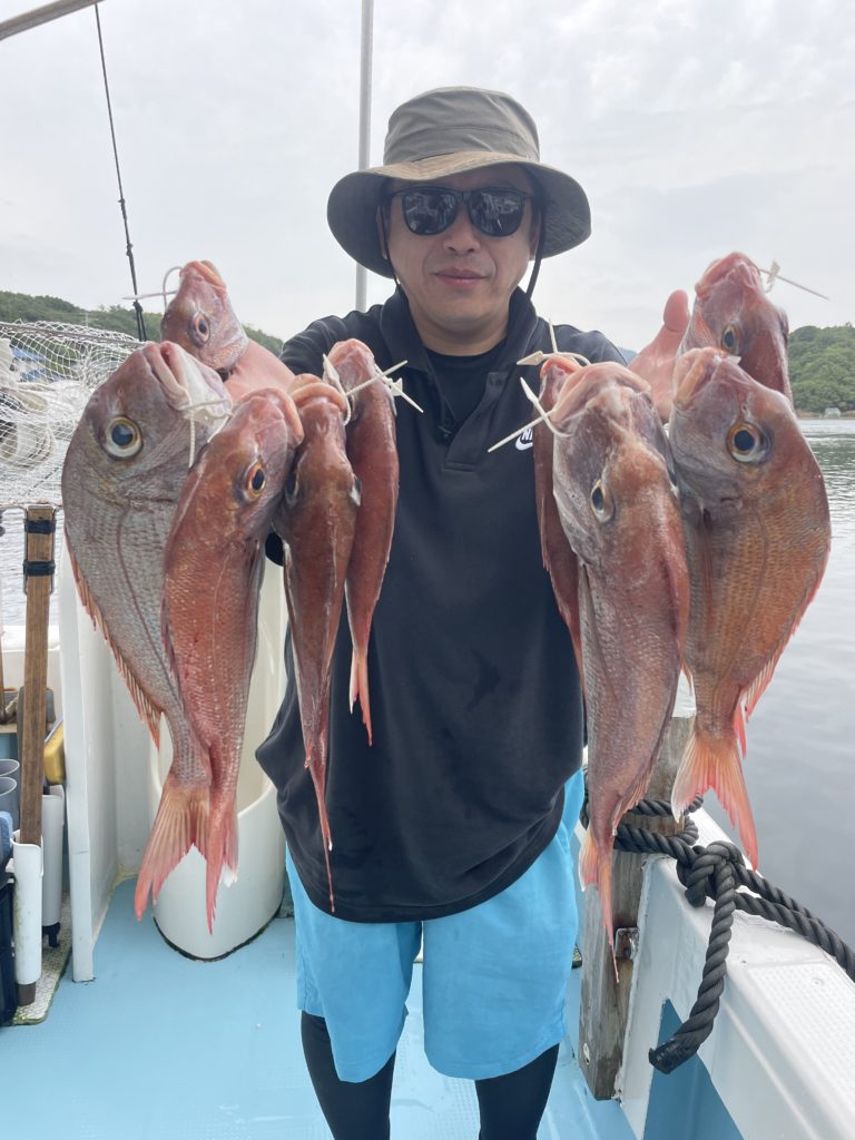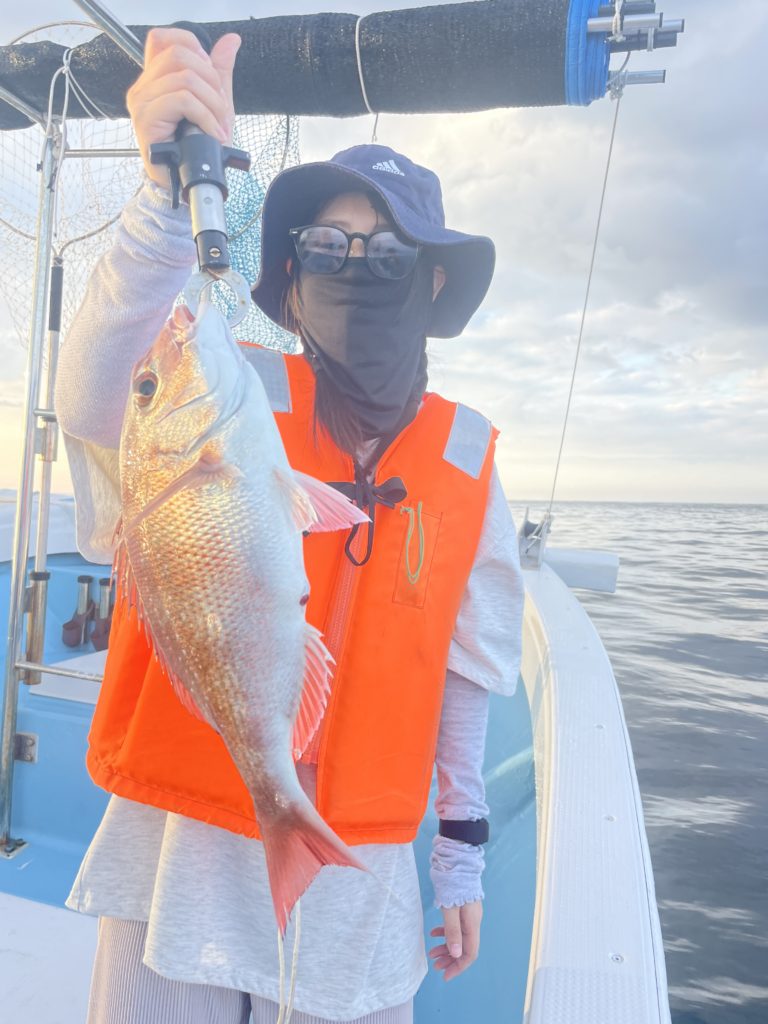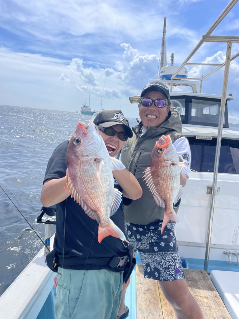 今週は中々渋い日が続きました。魚探に反応があっても当たりがなく移動移動で釣りをしました。深場、磯近くを攻めて渋いながらも数、良型もボチボチ釣れて良かったです。釣り初めての方も全員鯛が釣れて良かったです。