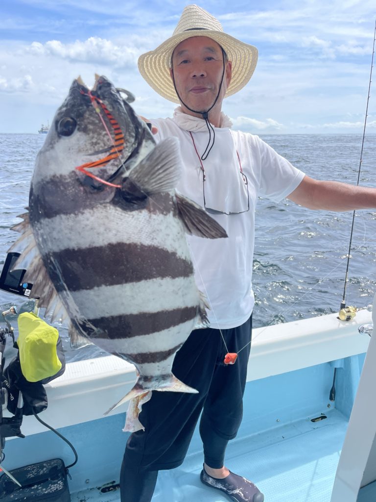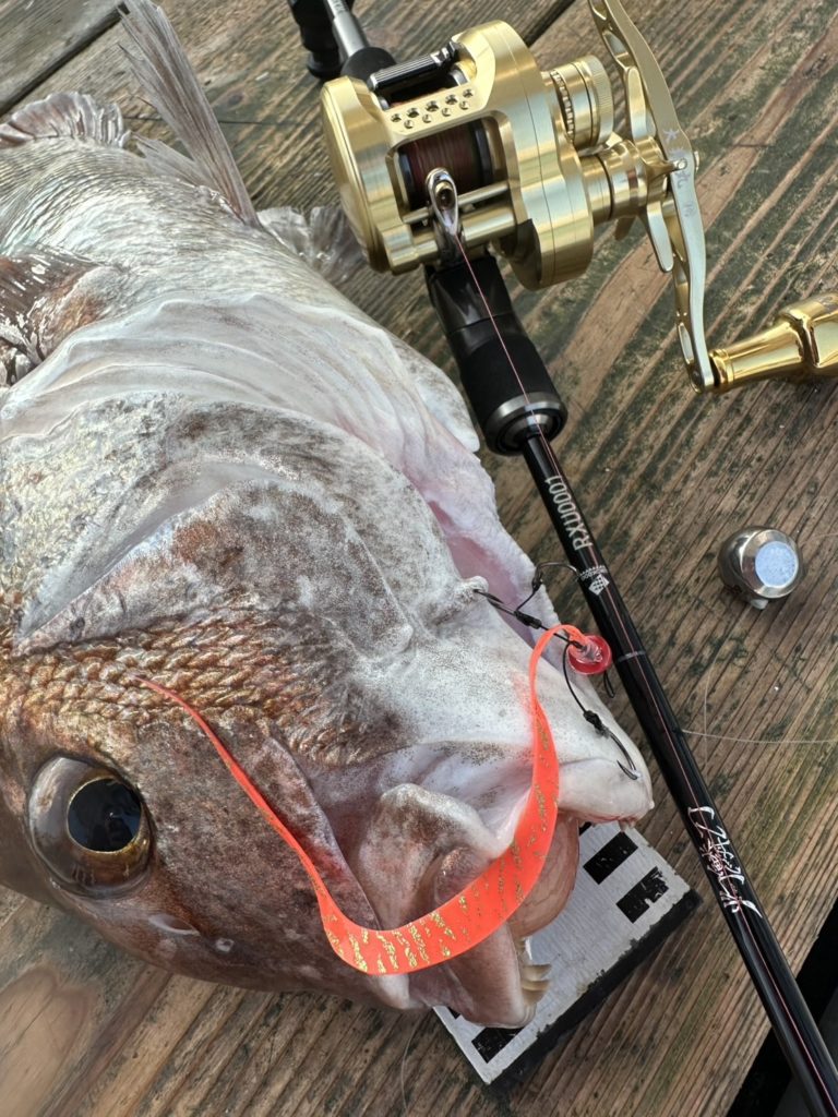 2回しか釣り上げた事ないですが何度見てもカッコいいですね。前回はロングジグ、今回はタイラバで釣り上げました。お見事です。