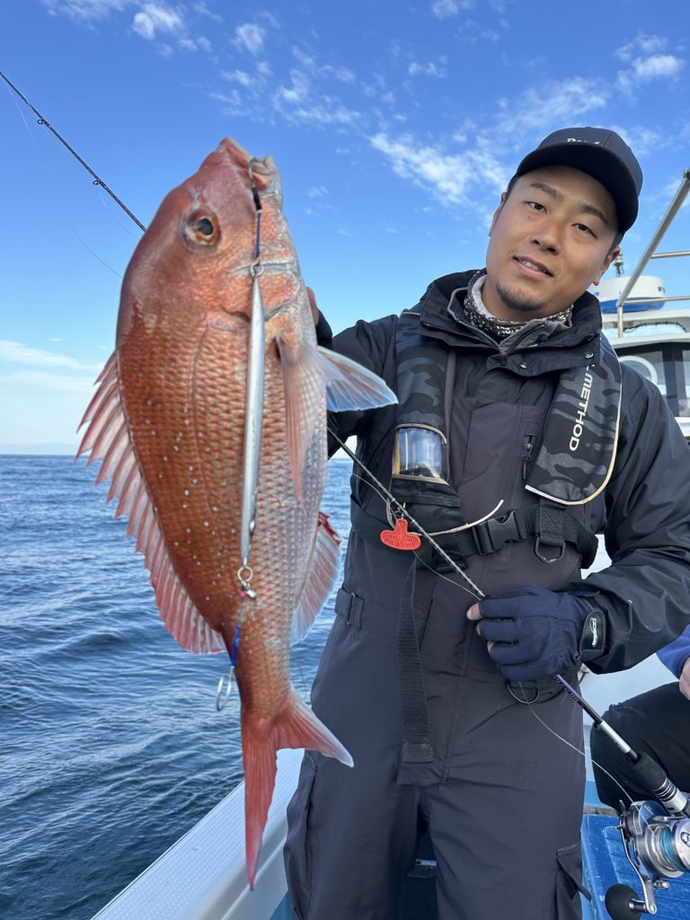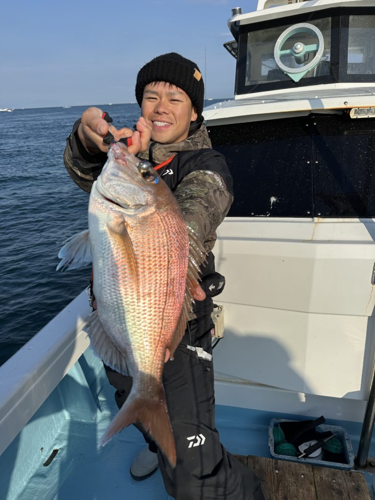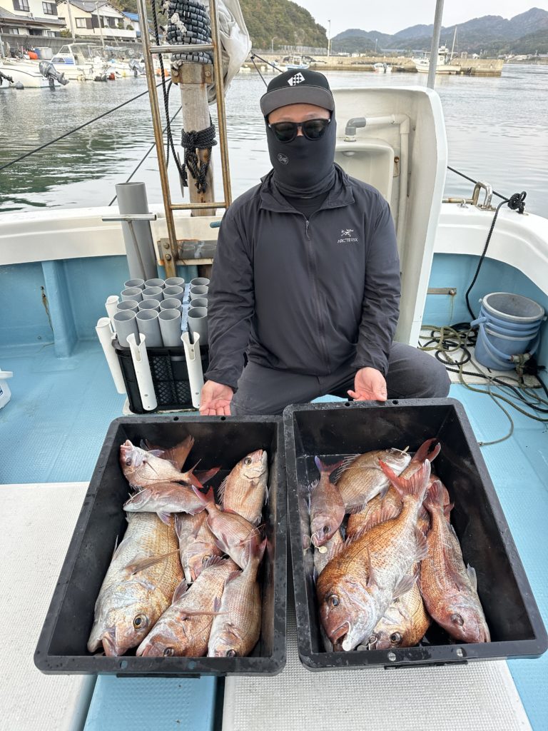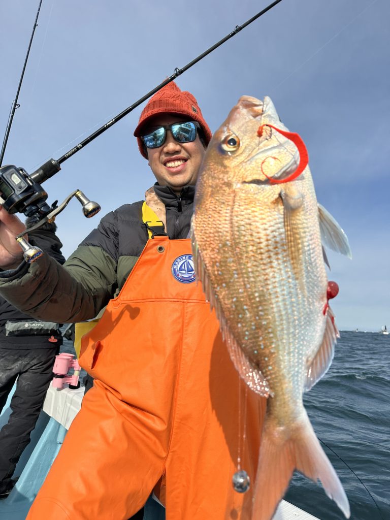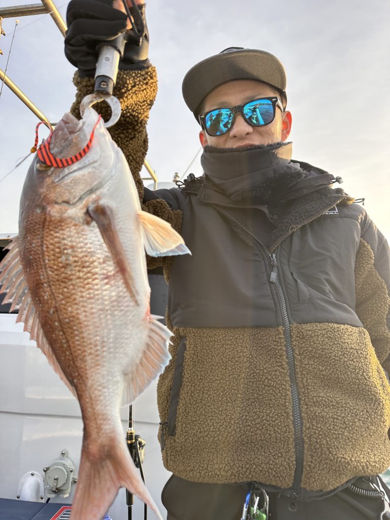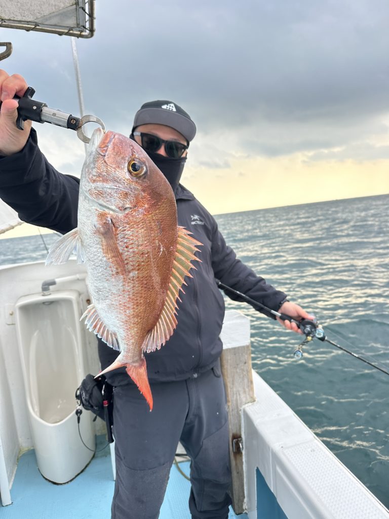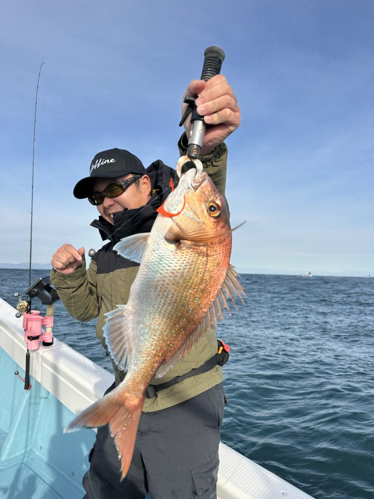 タイラバでも出船致しました。タイラバでは今週当たりも多く船中100枚超えもあり楽しめました。夏の鯛とは少し違い合わせ方なども少し変わってきますが冬は釣っても大きい鯛が混ざりやすくアメ色になってきた鯛は食べても絶品ですので是非お待ちしてます。