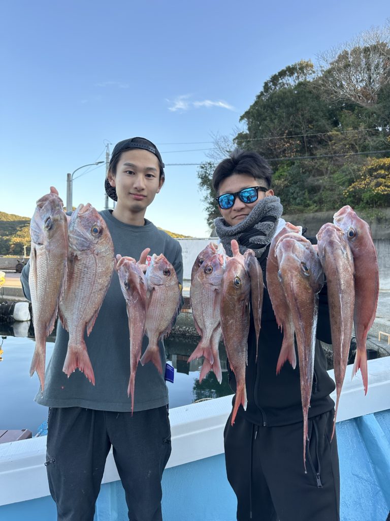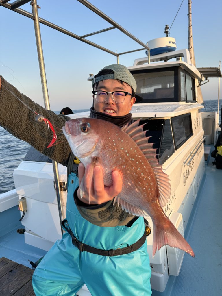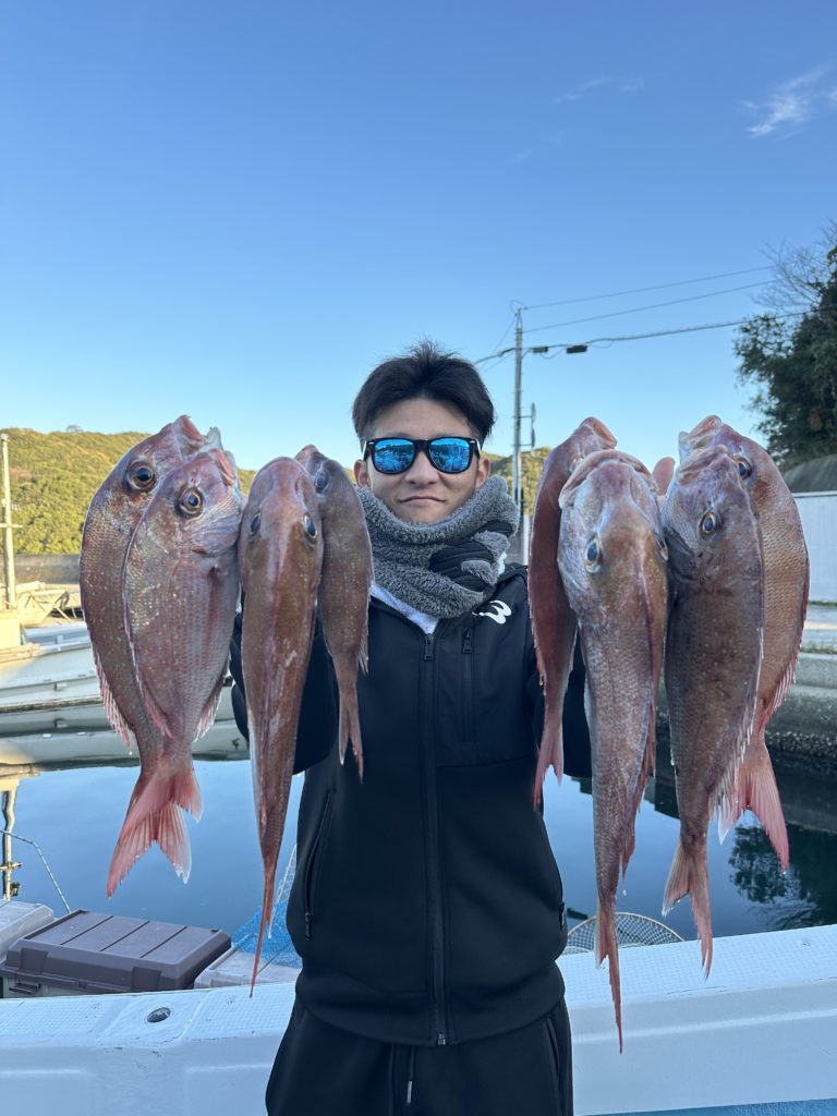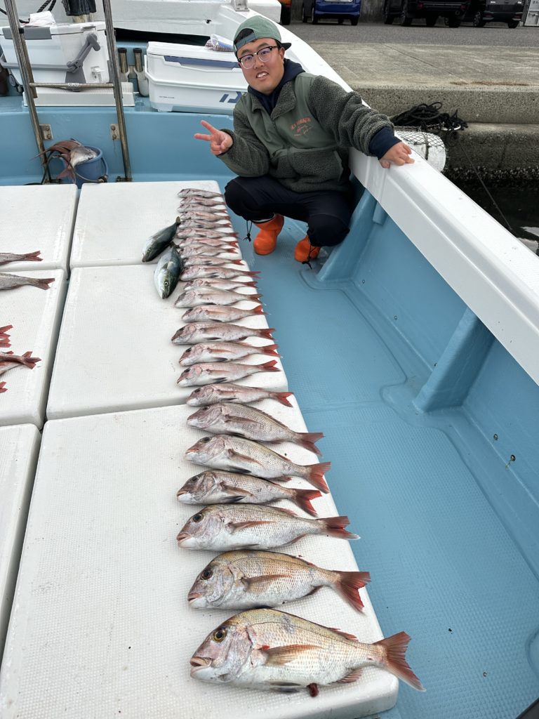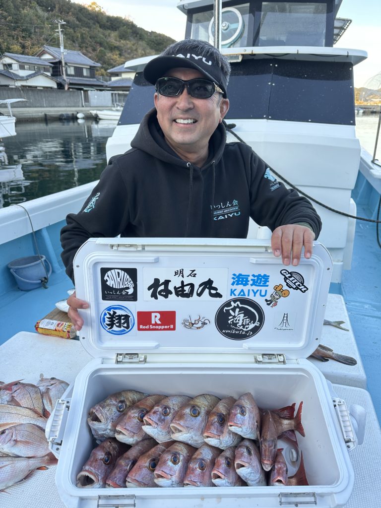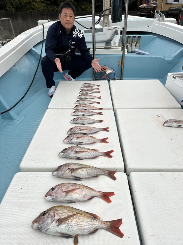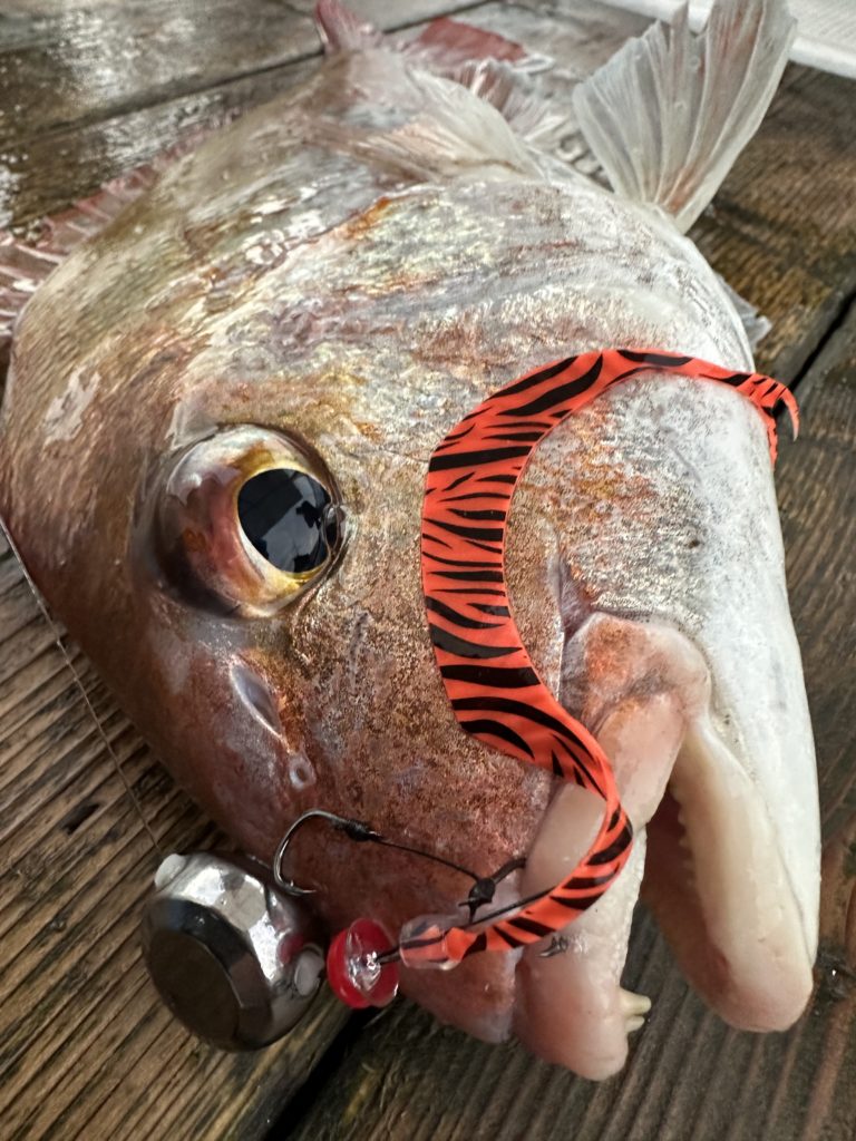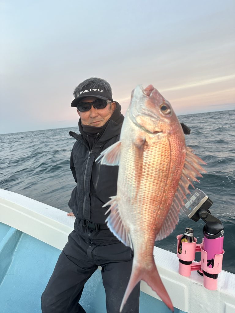 タイラバでも出船致しました。タイラバでは今週当たりも多く船中100枚超えもあり楽しめました。夏の鯛とは少し違い合わせ方なども少し変わってきますが冬は釣っても大きい鯛が混ざりやすくアメ色になってきた鯛は食べても絶品ですので是非お待ちしてます。