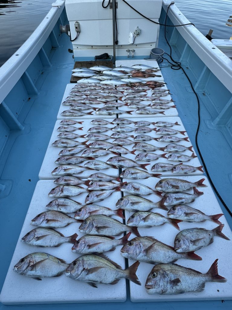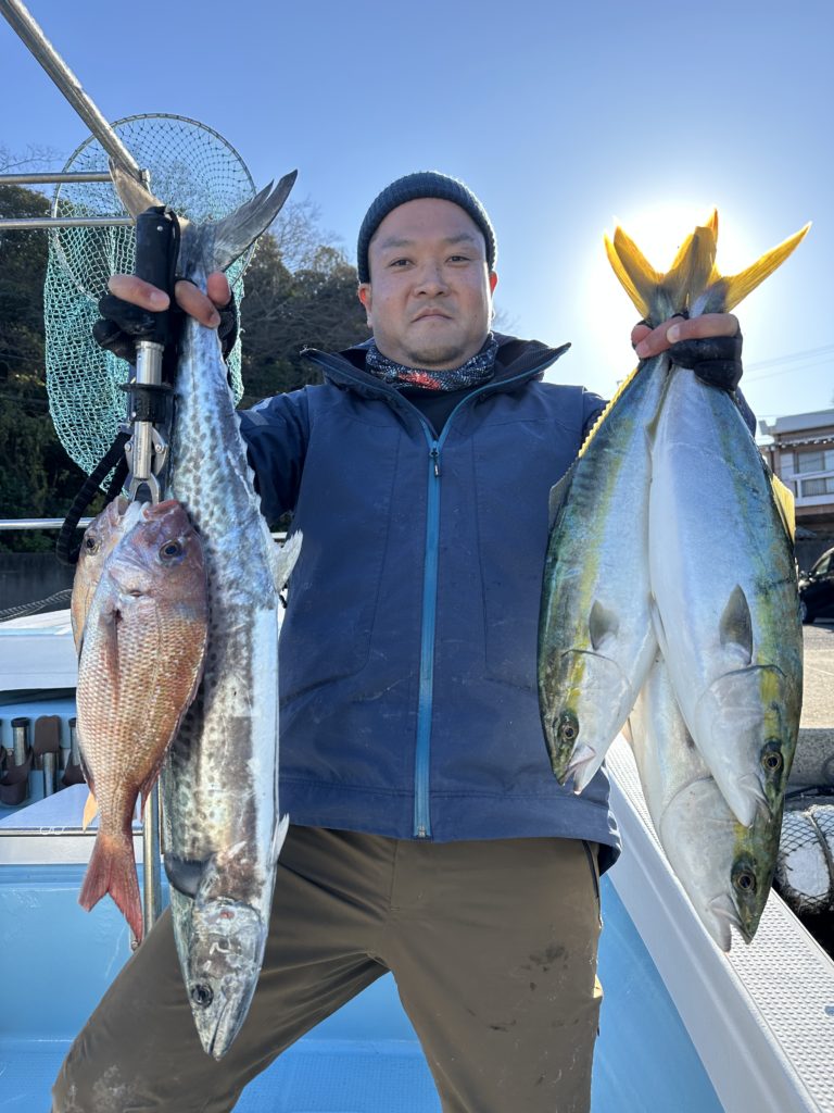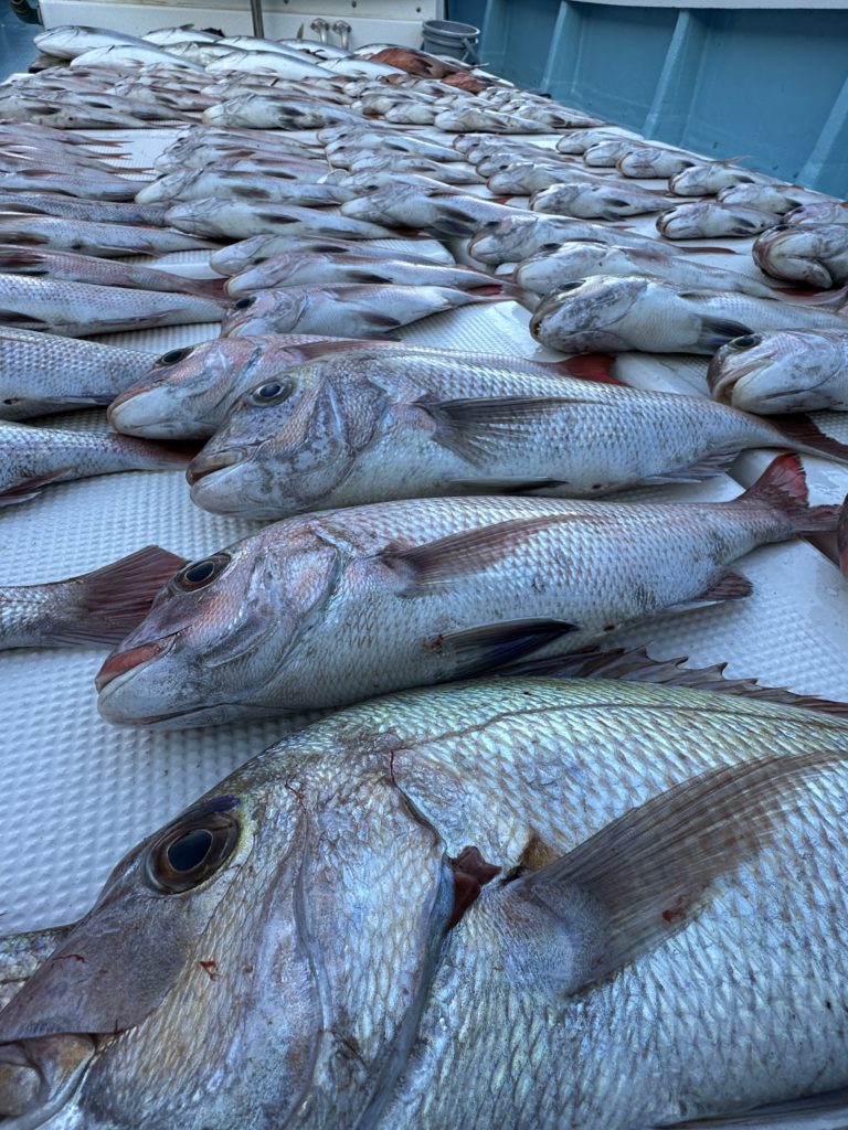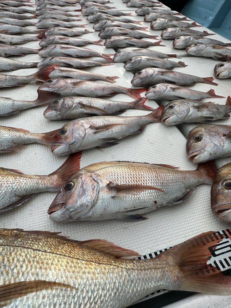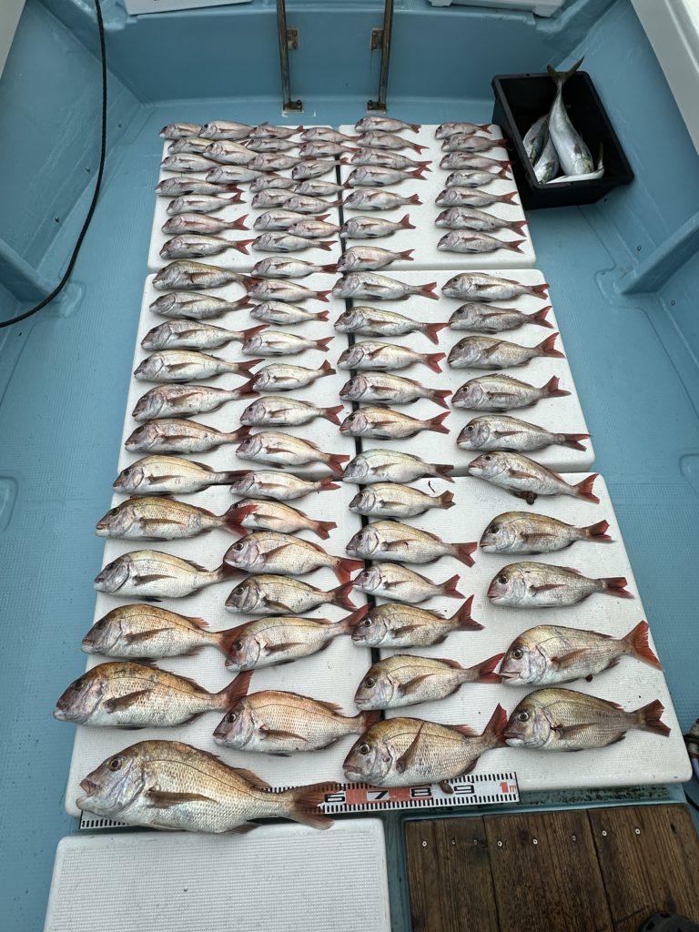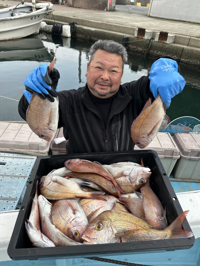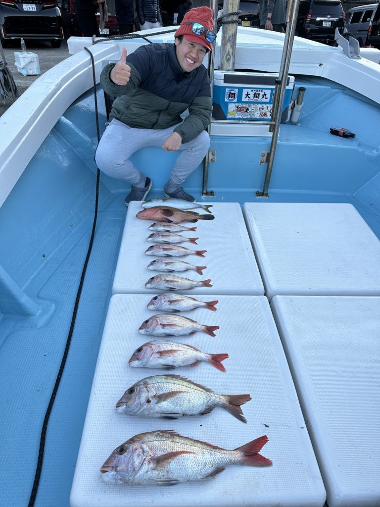 タイラバでも出船致しました。タイラバでは今週当たりも多く船中100枚超えもあり楽しめました。夏の鯛とは少し違い合わせ方なども少し変わってきますが冬は釣っても大きい鯛が混ざりやすくアメ色になってきた鯛は食べても絶品ですので是非お待ちしてます。