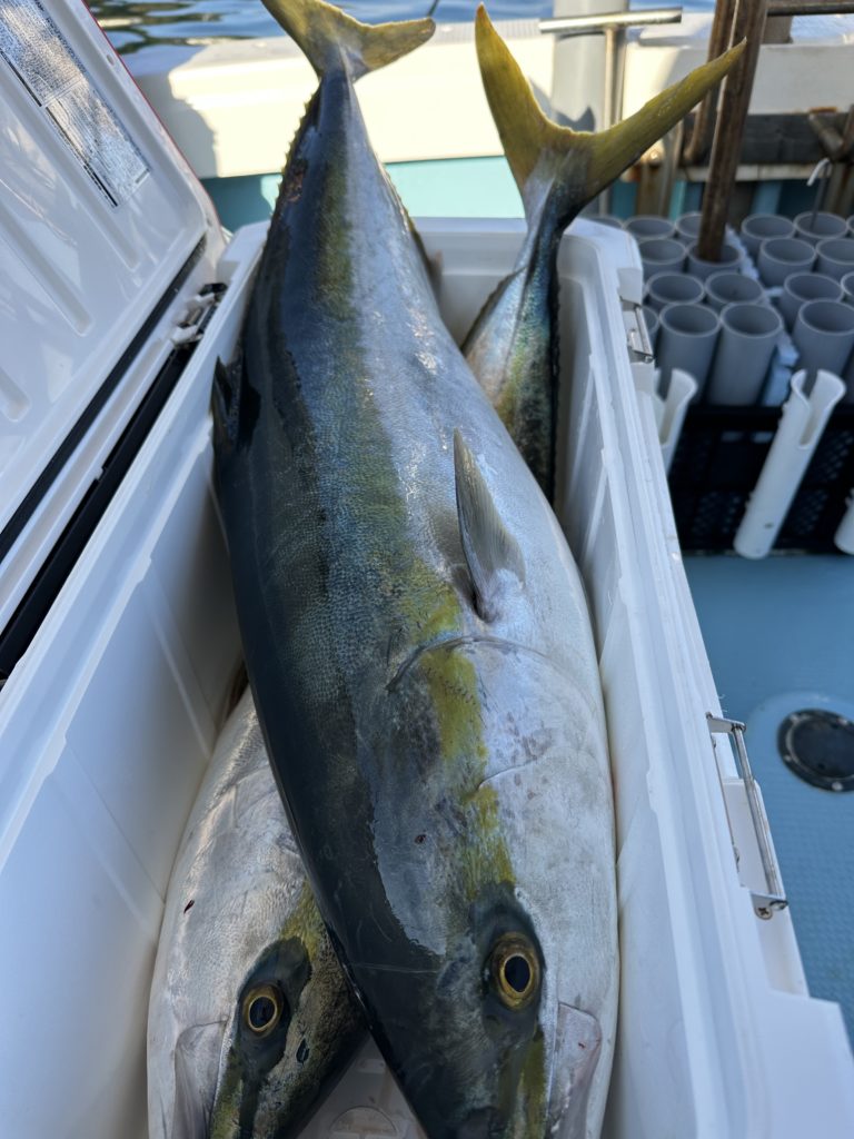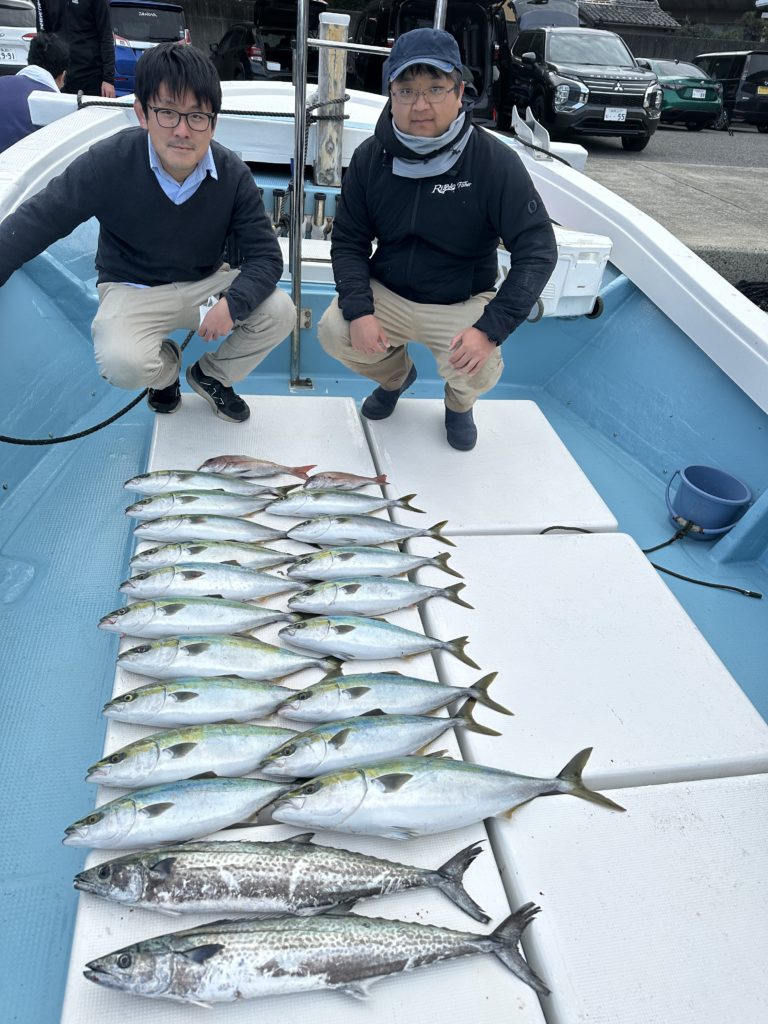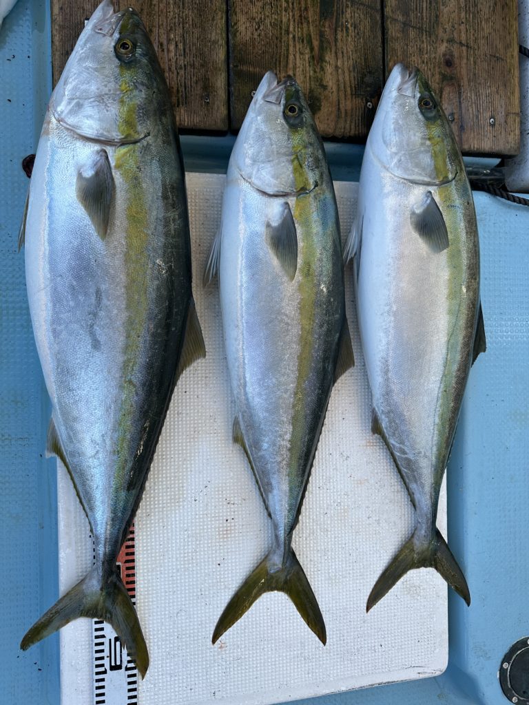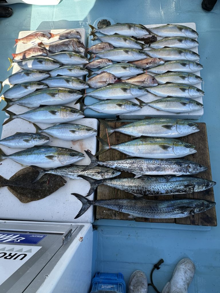 ジギングでは今週は当たりも良くあり、サワラ、青物と良く釣れました。8キロオーバー、7キロオーバー、6キロオーバーのブリも上がり楽しめました。ツバスも丸々していて脂も乗ってました。