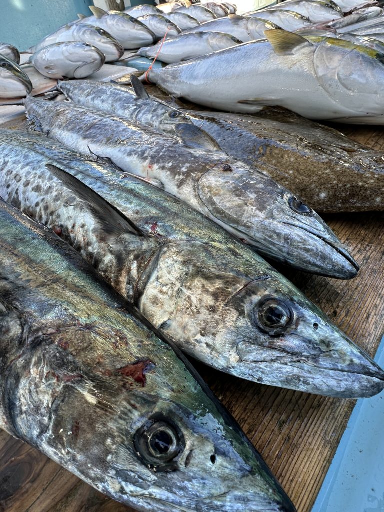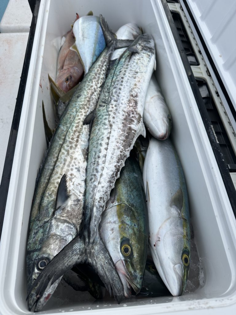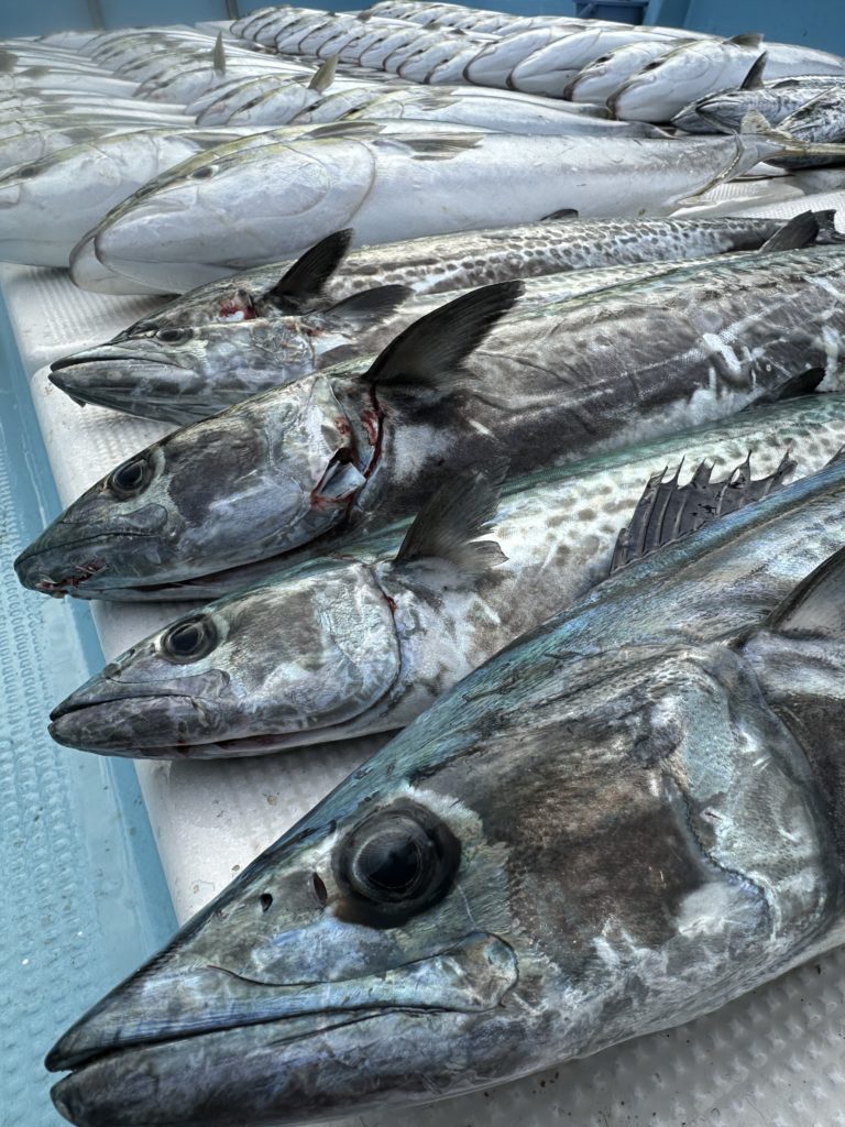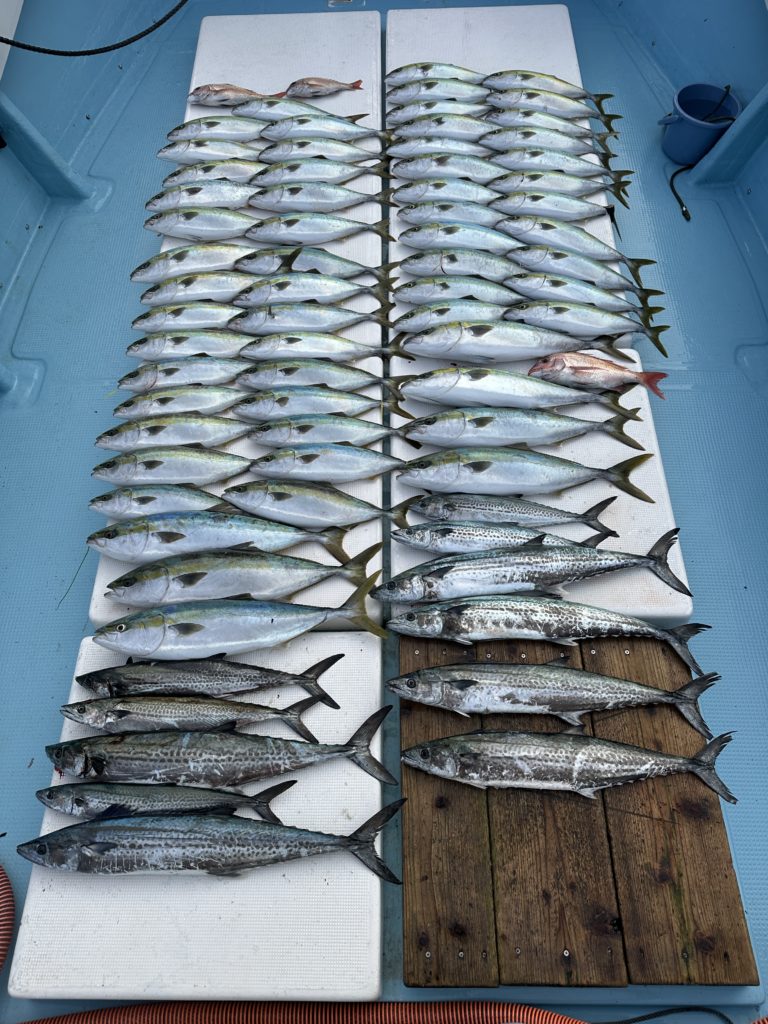 ジギングでは今週は当たりも良くあり、サワラ、青物と良く釣れました。8キロオーバー、7キロオーバー、6キロオーバーのブリも上がり楽しめました。ツバスも丸々していて脂も乗ってました。