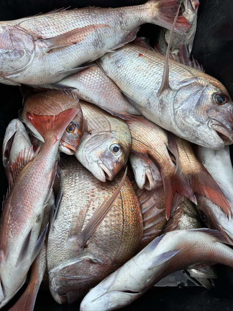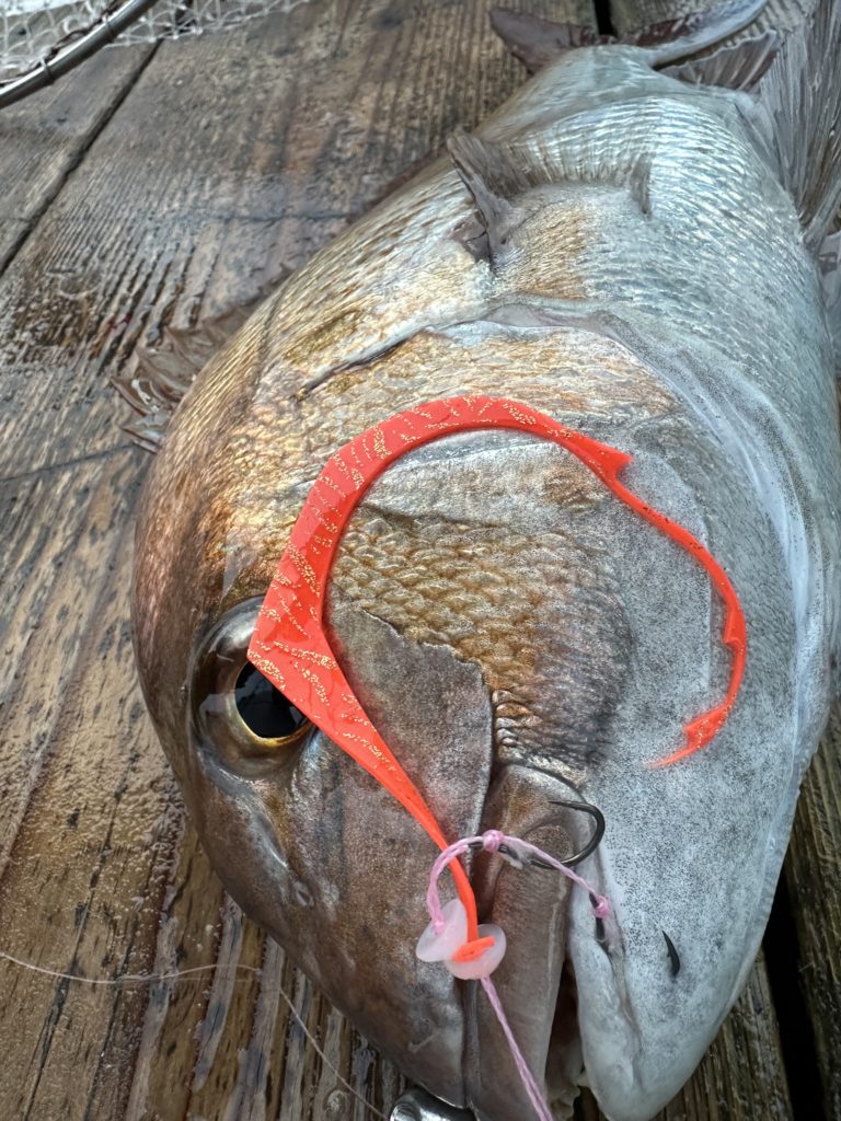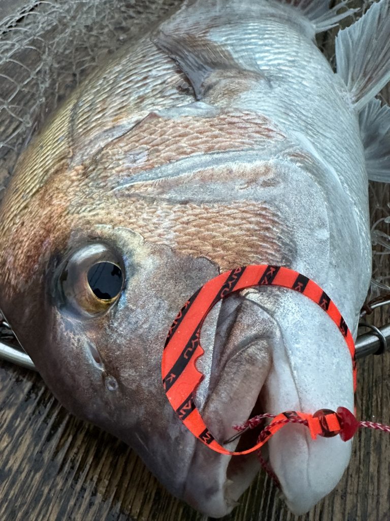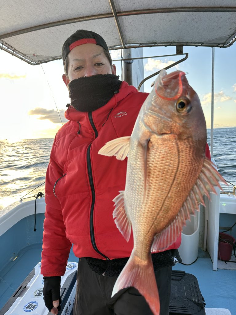 今週は少し水温も下がったのでHタイラバの方が良く当たるかなと思ってましたが、ほぼほぼ、タイラバに当たりがありました。水温が下がり浮いてくる鳴門の冬の鯛は黄金色に輝きアメ色になり丸々した個体も釣れ出しますので皆様狙いに来てみて下さい。