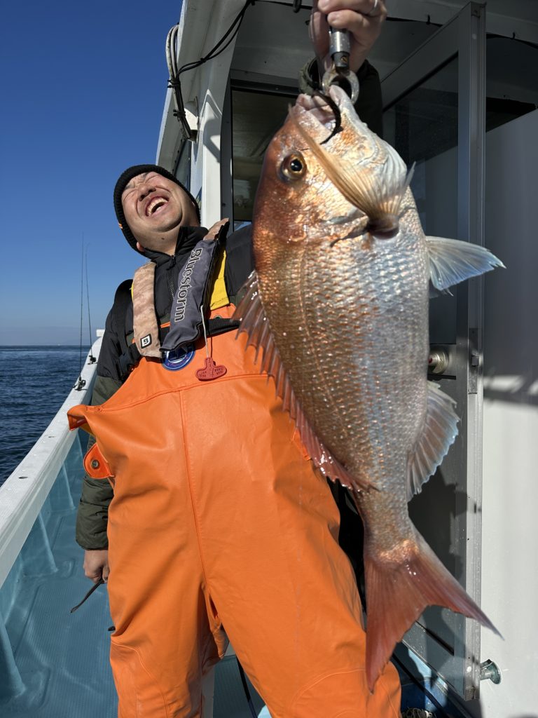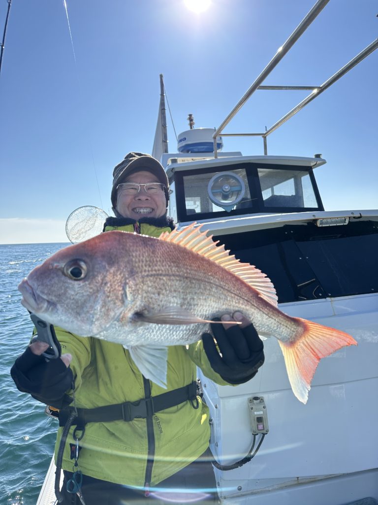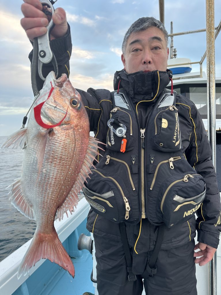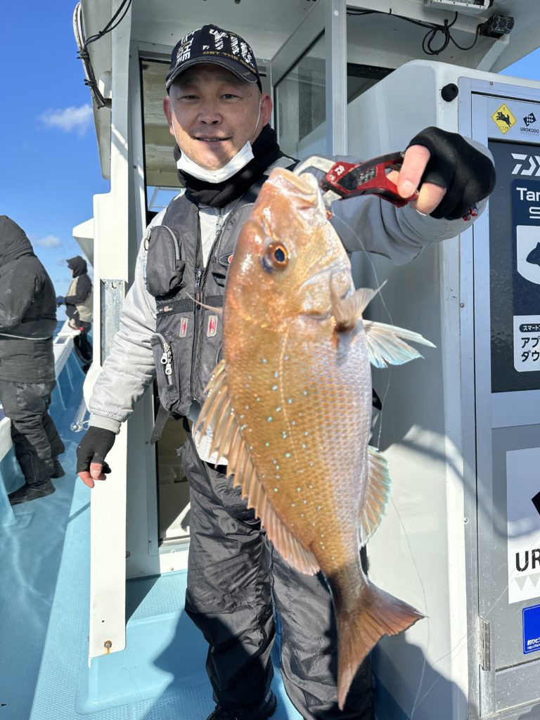 流石です、この冬にはタイラバオンリーで数、良型連発で釣って頂きました。当たらない時は巻きスピードを変えたりネクタイを変えて当たりをよく出していました、流石でした。