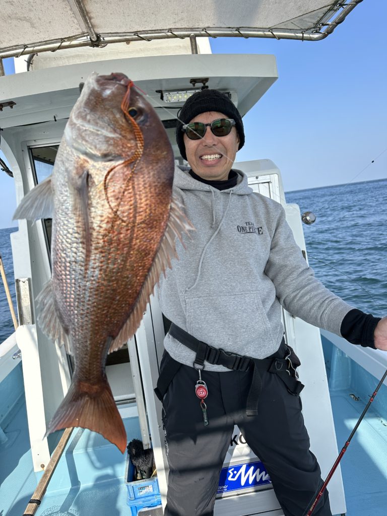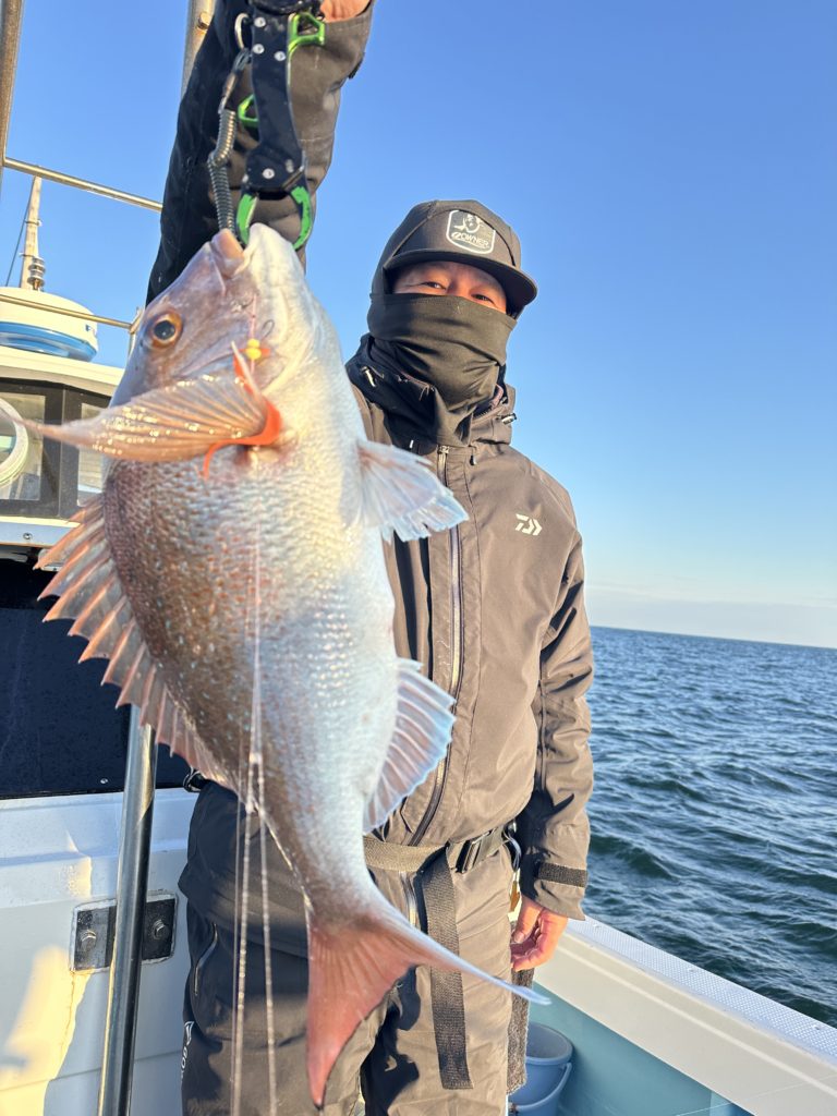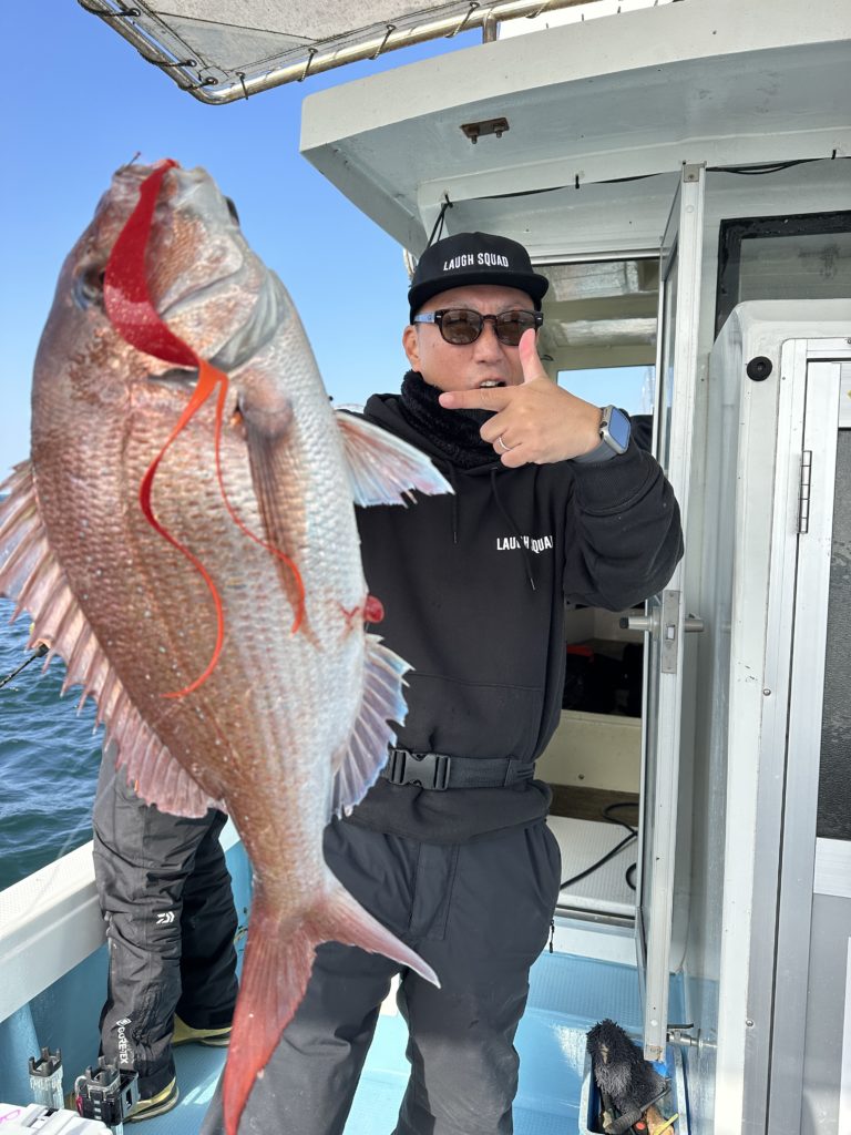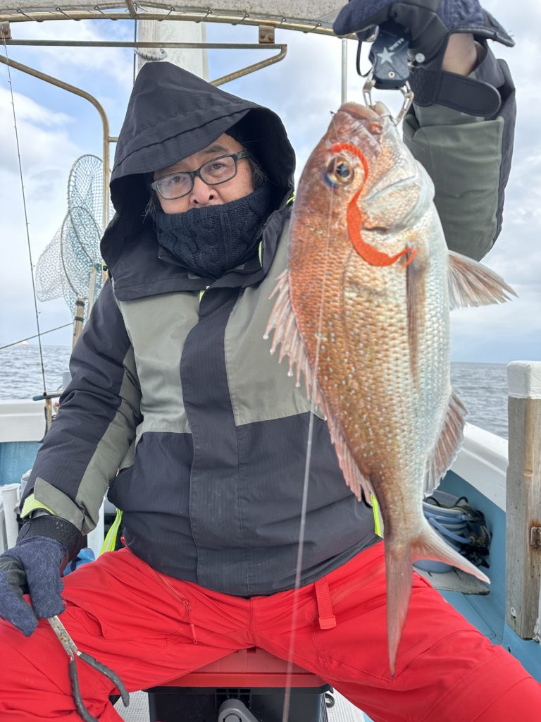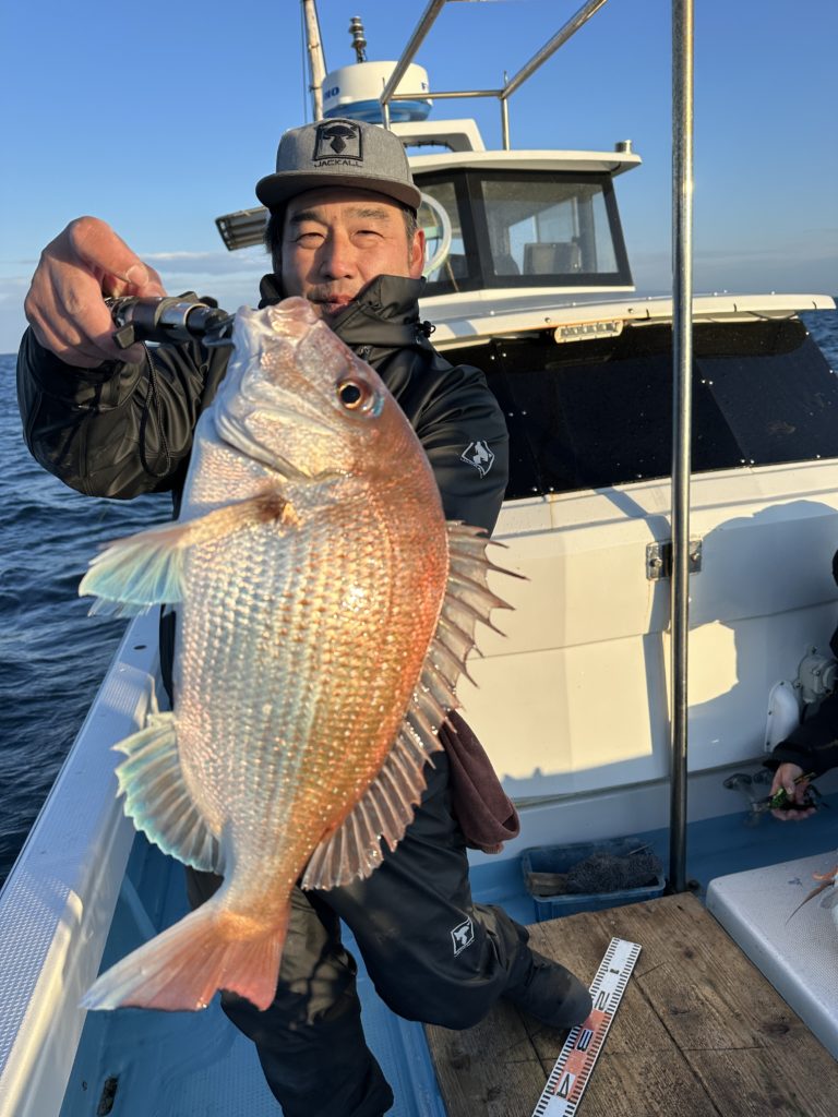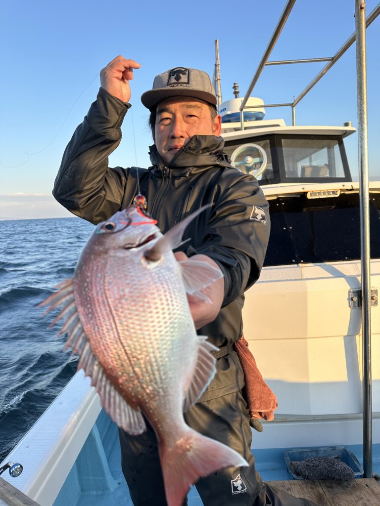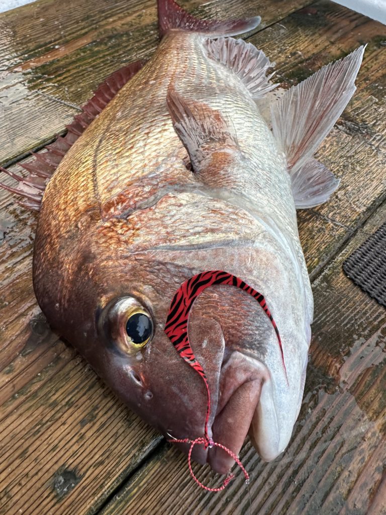 タイラバ、Hタイラバでは当たりも良くあり、浮いた鯛もタイラバによく当たりがありました。水温も11℃と下がり浮いた鯛がタイラバで釣れるとサイズも良く50.60㌢と良型が連発で釣れました。丸々してアメ色に輝いた黄金真鯛も釣れてますので皆さん黄金真鯛を狙いに来て下さい。