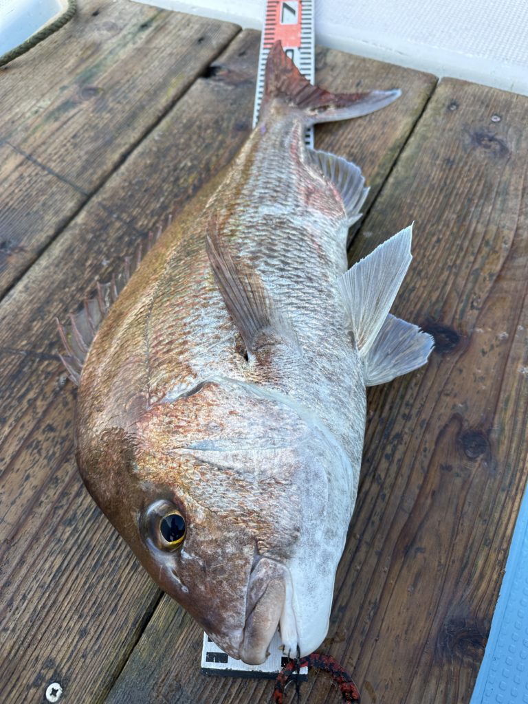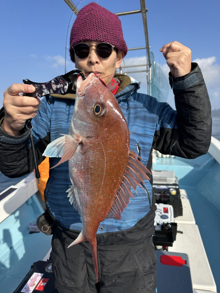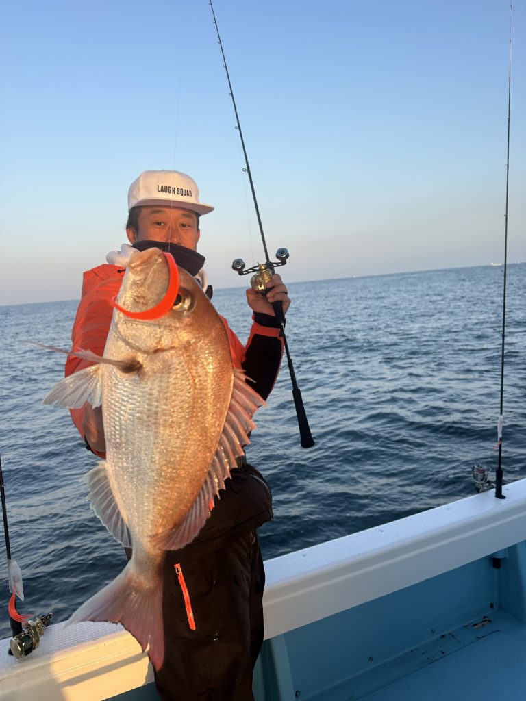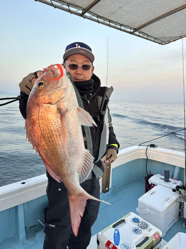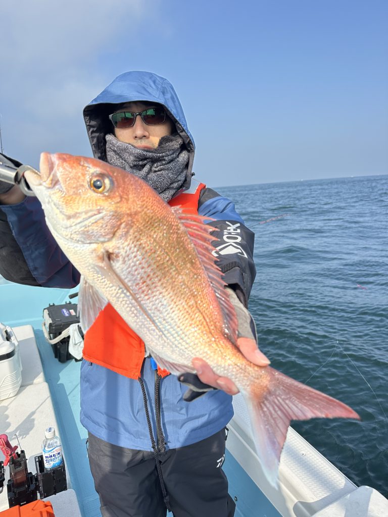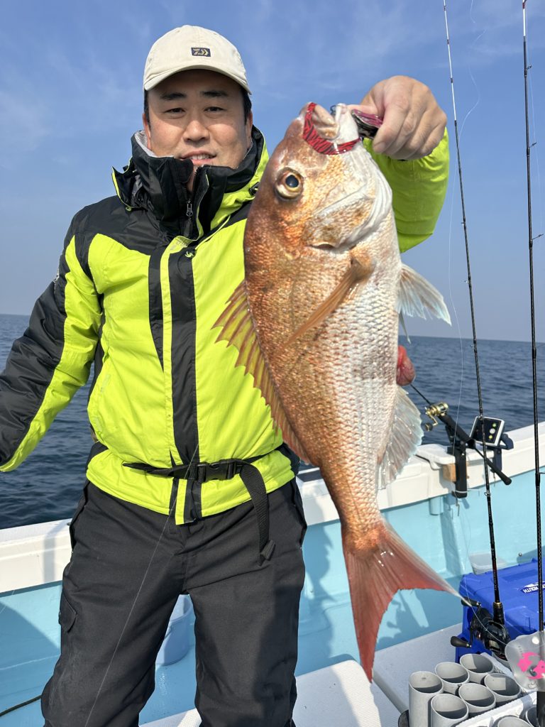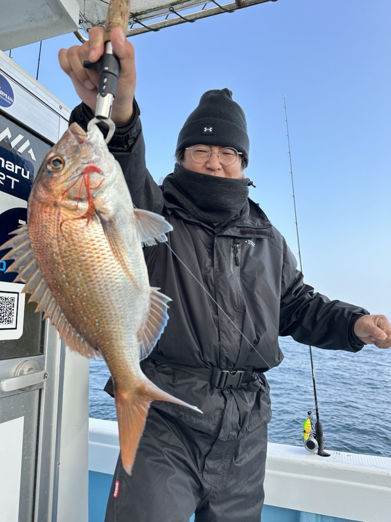 タイラバ、Hタイラバでは当たりも良くあり、浮いた鯛もタイラバによく当たりがありました。水温も11℃と下がり浮いた鯛がタイラバで釣れるとサイズも良く50.60㌢と良型が連発で釣れました。丸々してアメ色に輝いた黄金真鯛も釣れてますので皆さん黄金真鯛を狙いに来て下さい。