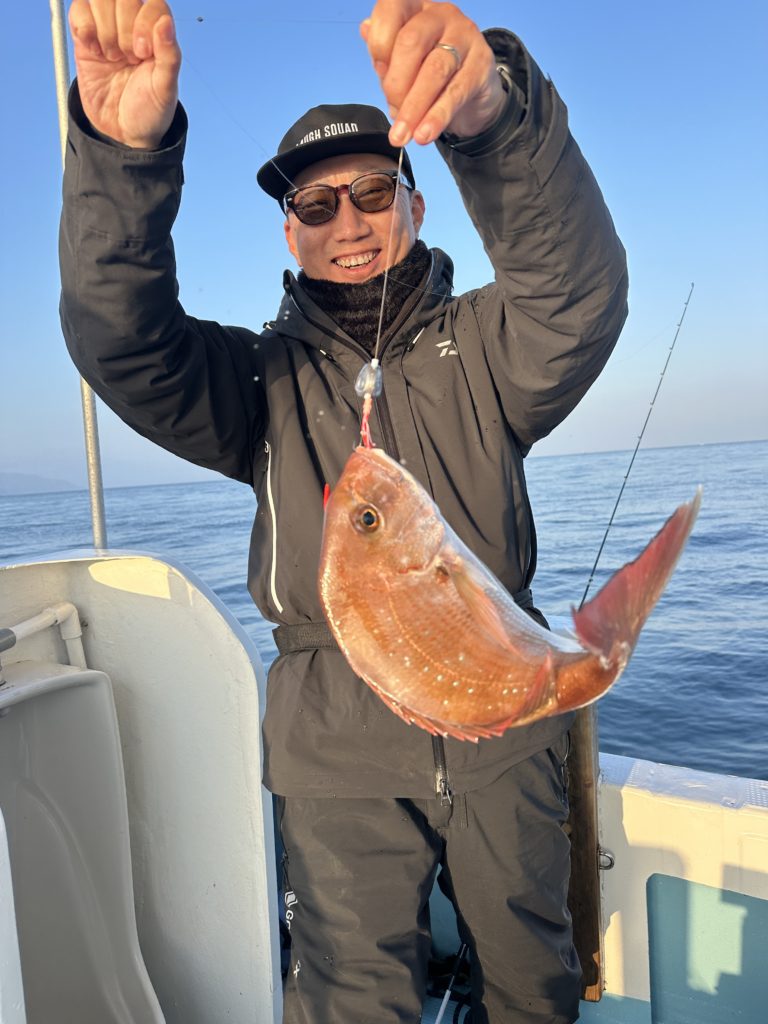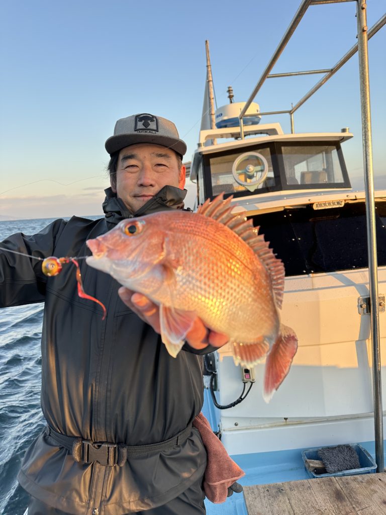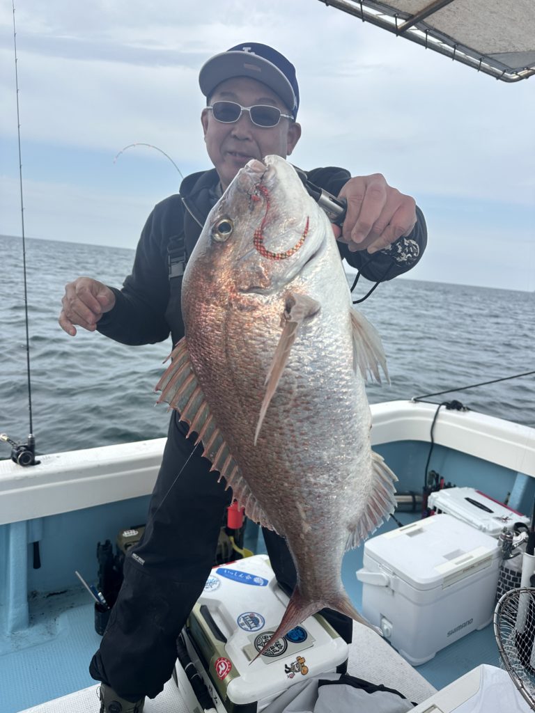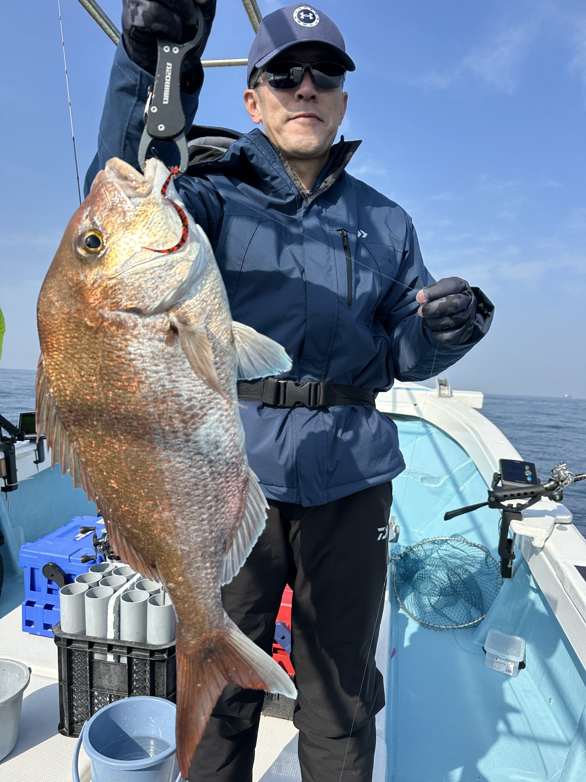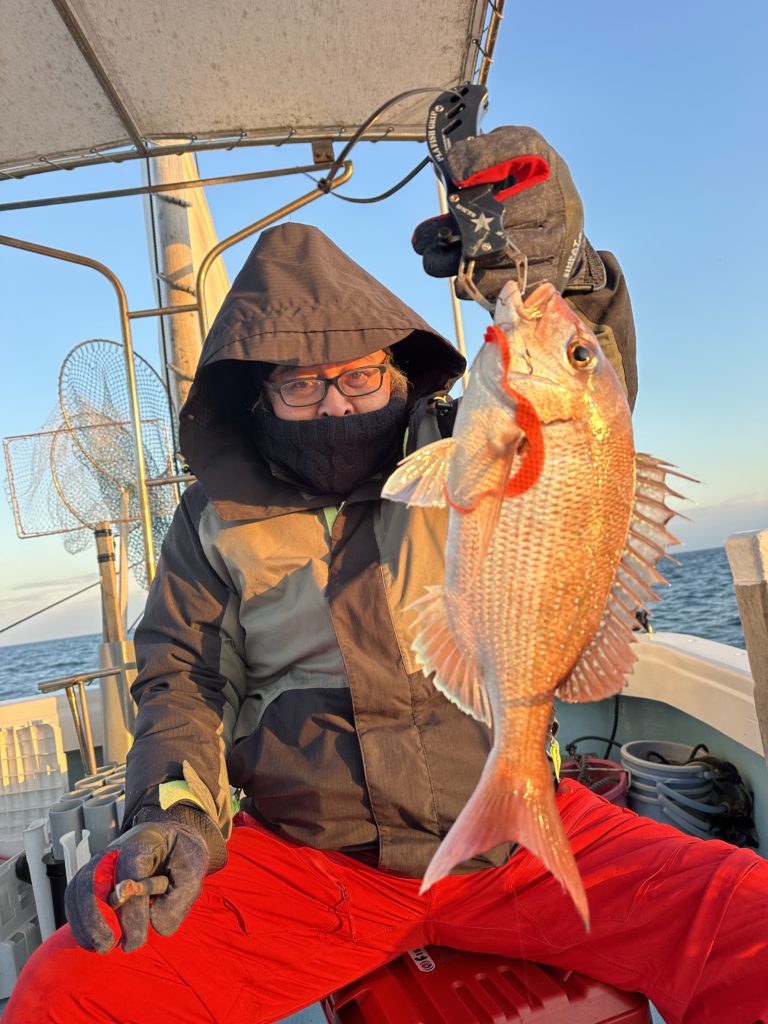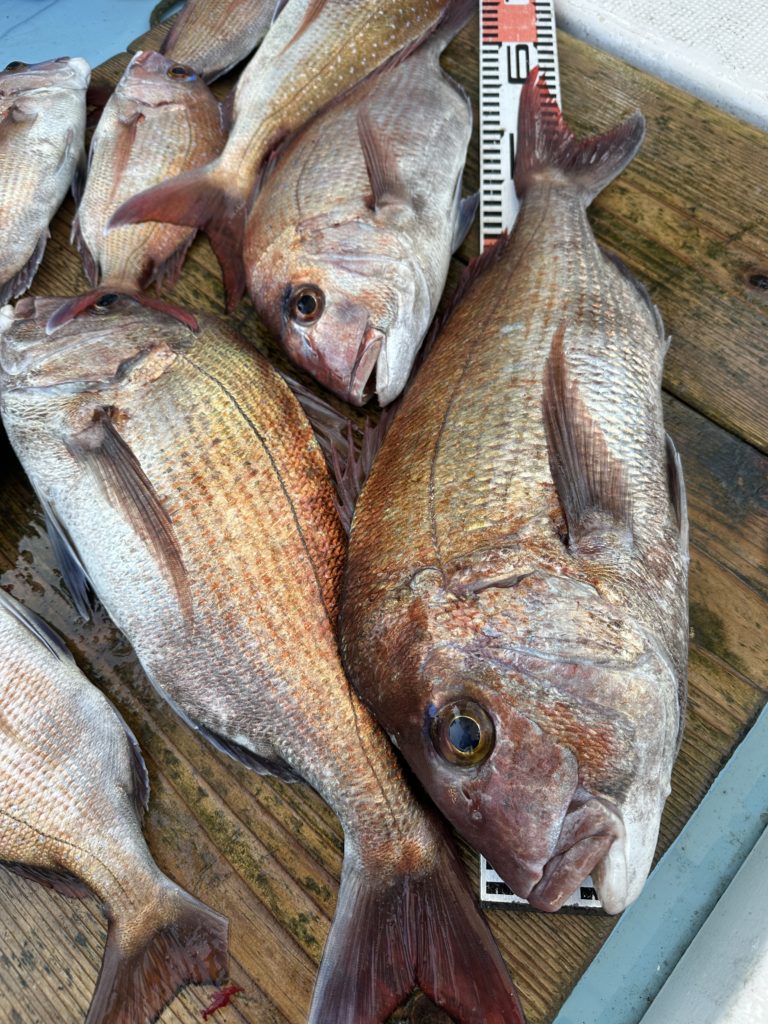 タイラバ、Hタイラバでは当たりも良くあり、浮いた鯛もタイラバによく当たりがありました。水温も11℃と下がり浮いた鯛がタイラバで釣れるとサイズも良く50.60㌢と良型が連発で釣れました。丸々してアメ色に輝いた黄金真鯛も釣れてますので皆さん黄金真鯛を狙いに来て下さい。