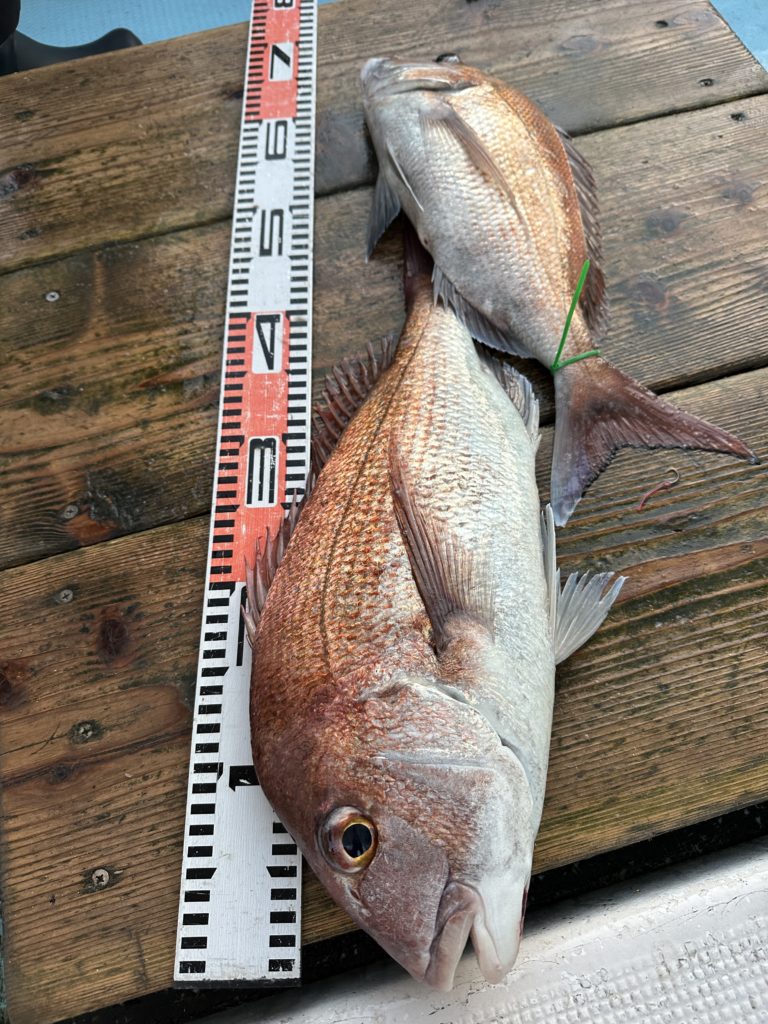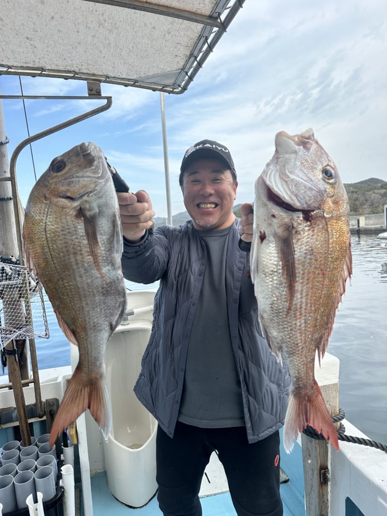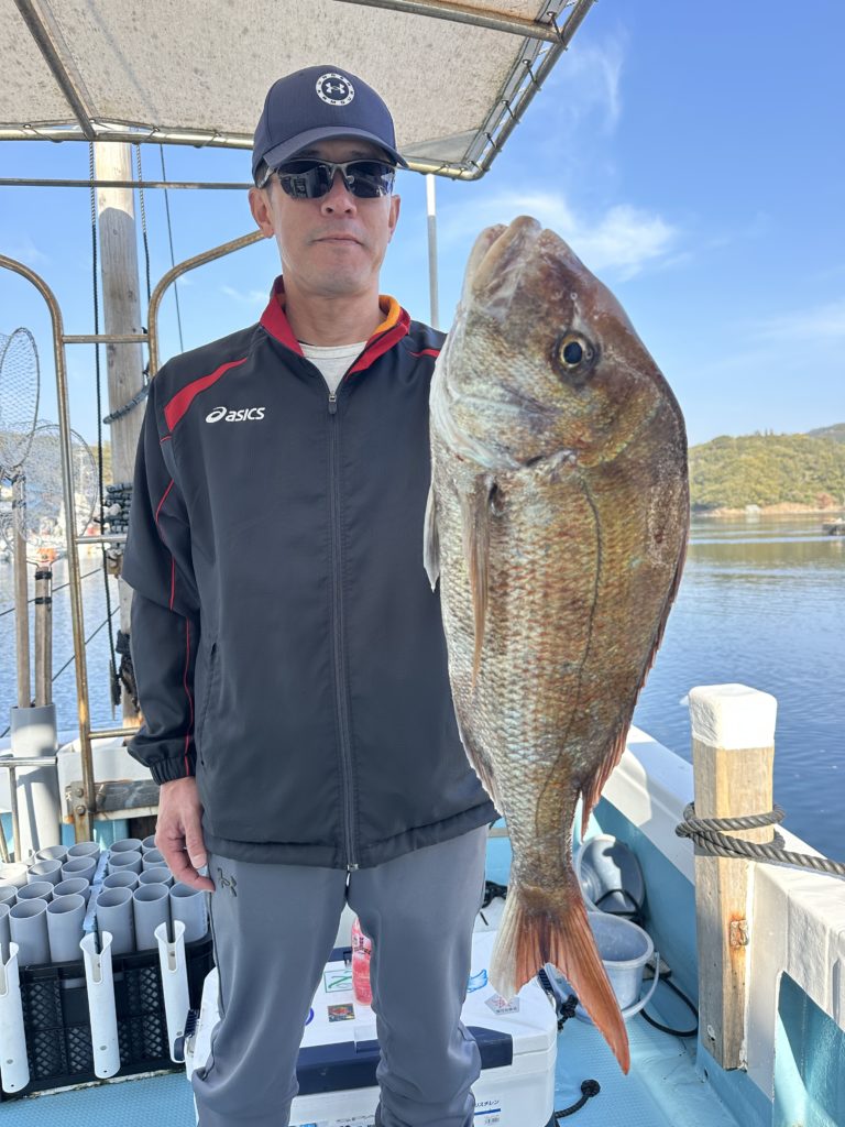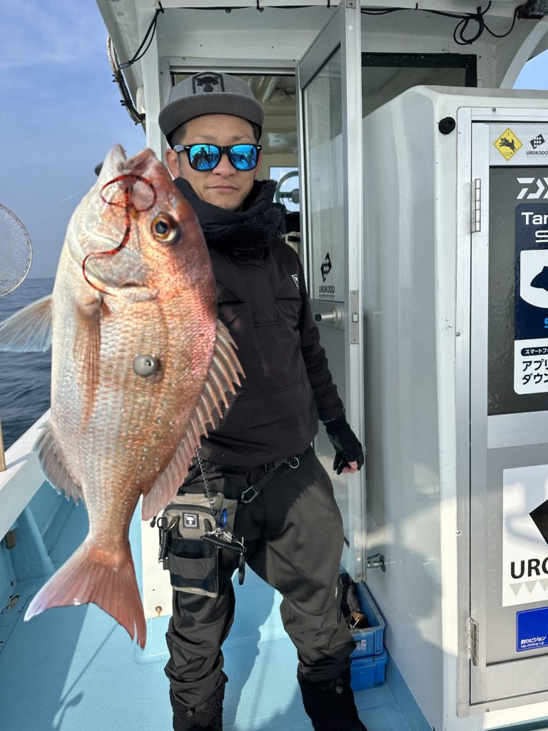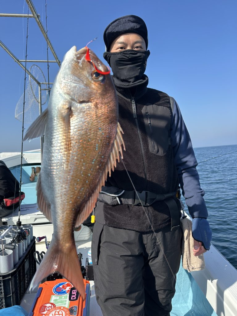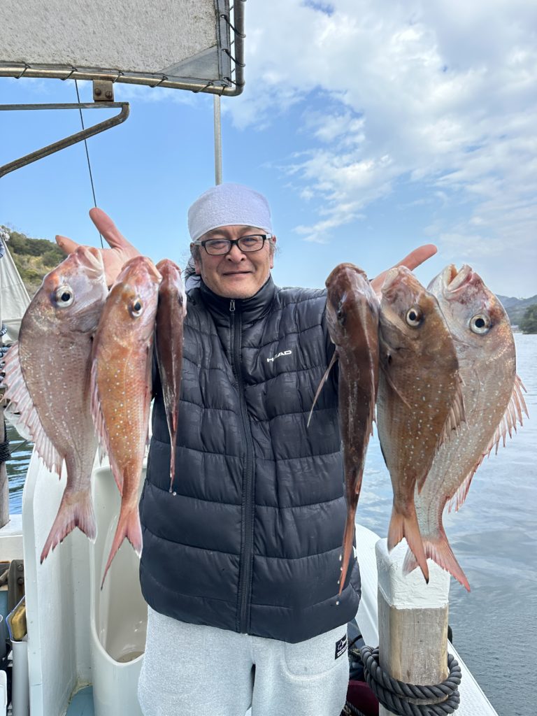 タイラバ、Hタイラバでは当たりも良くあり、浮いた鯛もタイラバによく当たりがありました。水温も11℃と下がり浮いた鯛がタイラバで釣れるとサイズも良く50.60㌢と良型が連発で釣れました。丸々してアメ色に輝いた黄金真鯛も釣れてますので皆さん黄金真鯛を狙いに来て下さい。