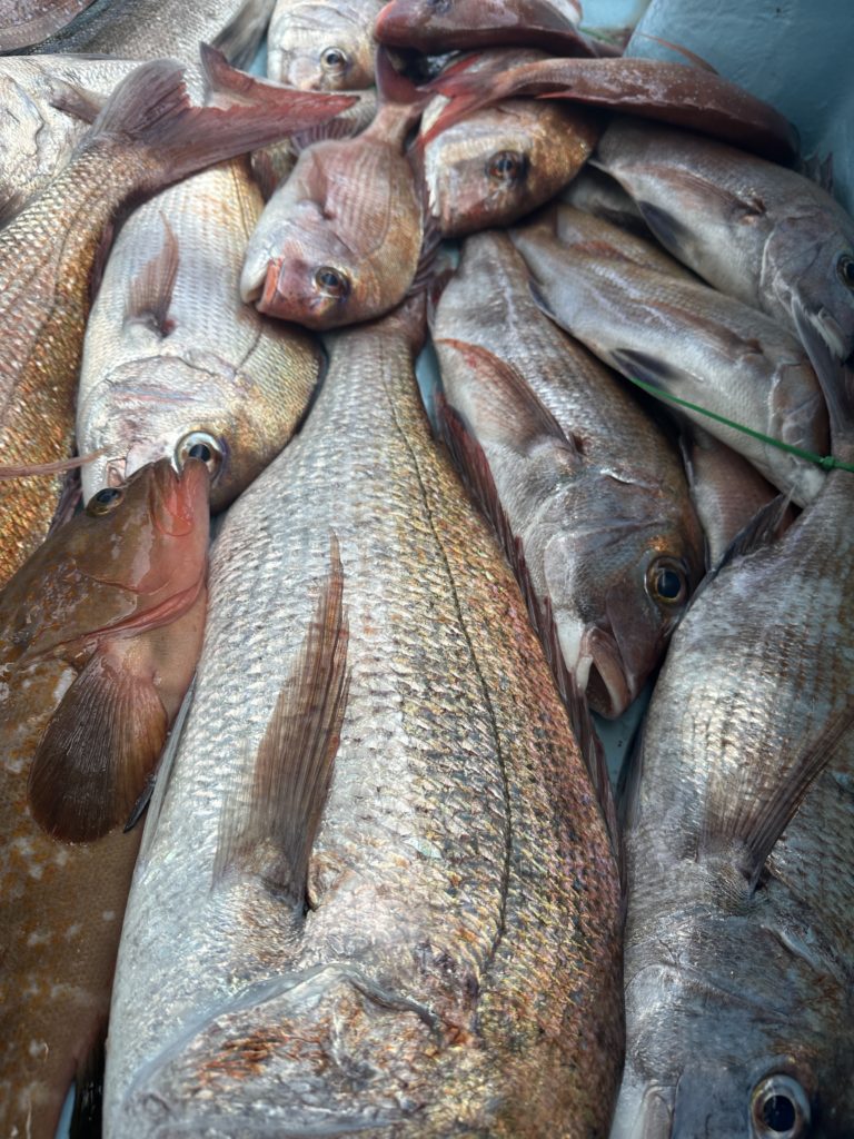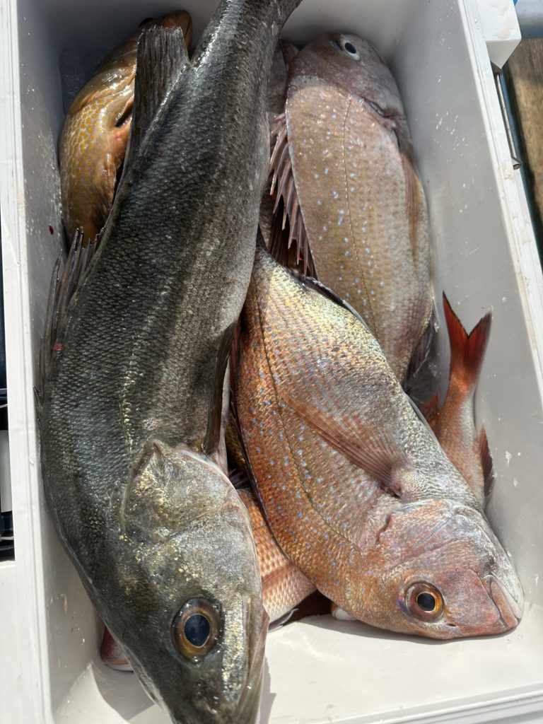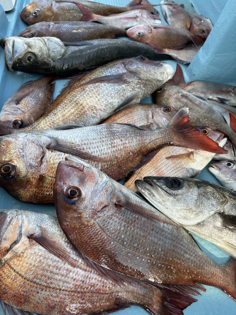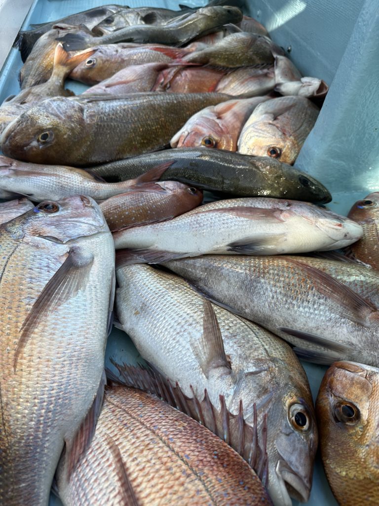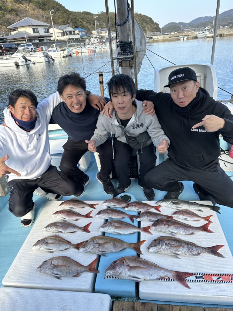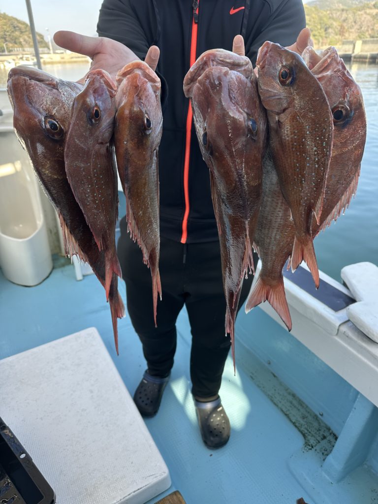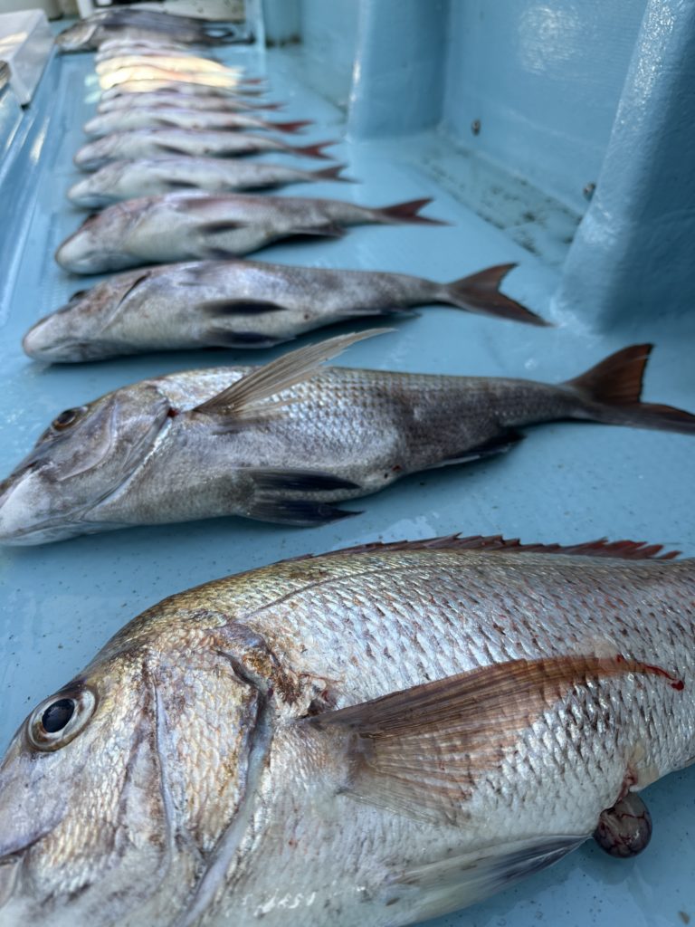 タイラバ、Hタイラバでは当たりも良くあり、浮いた鯛もタイラバによく当たりがありました。水温も11℃と下がり浮いた鯛がタイラバで釣れるとサイズも良く50.60㌢と良型が連発で釣れました。丸々してアメ色に輝いた黄金真鯛も釣れてますので皆さん黄金真鯛を狙いに来て下さい。