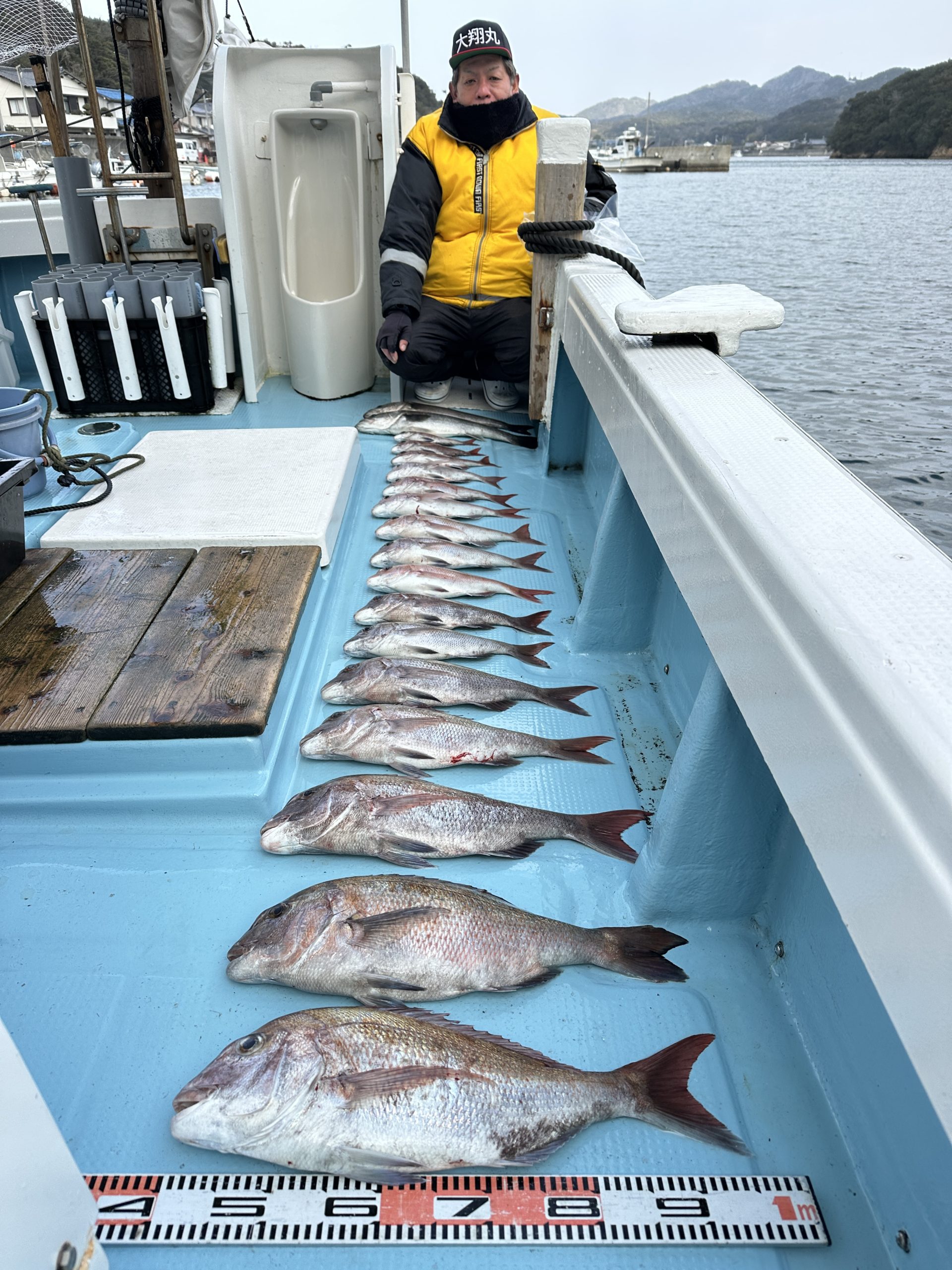 時化明けは水温が9.8℃まで低下し、全体的に食い渋る状況に。