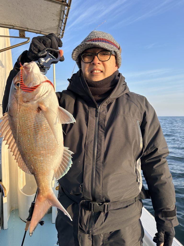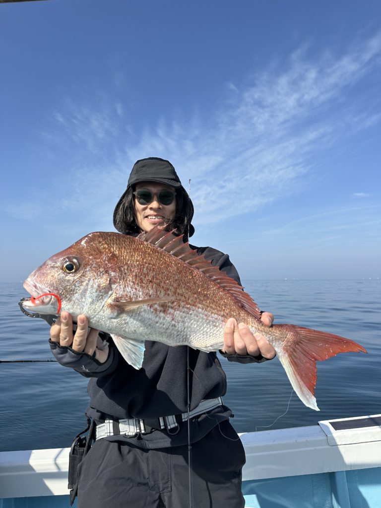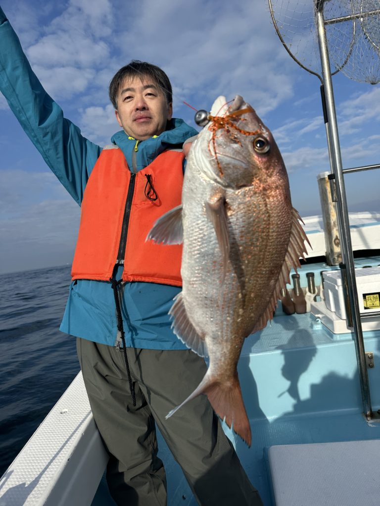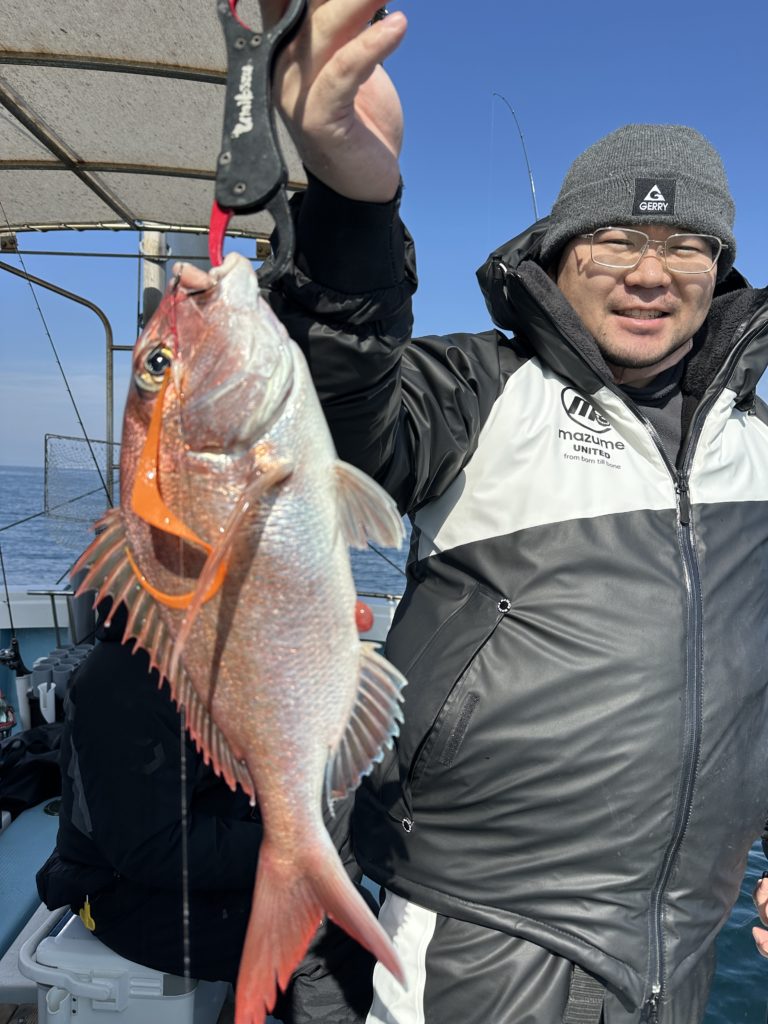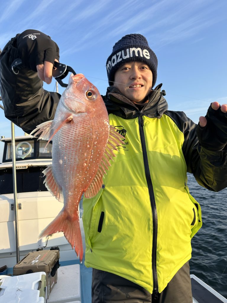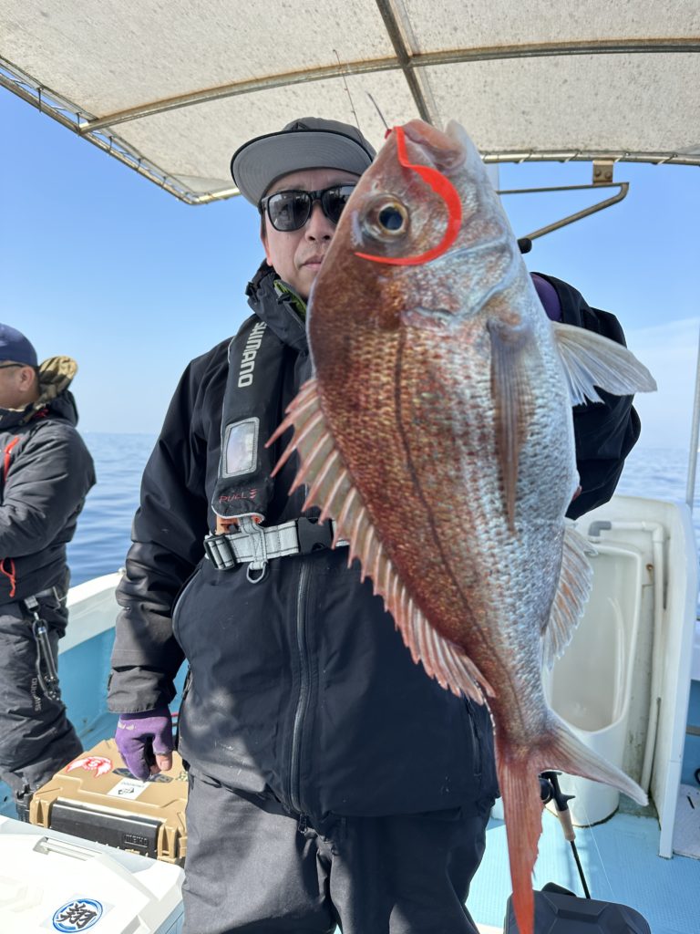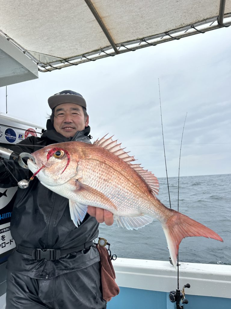 15m、20mとレンジを丁寧に探り、浮いている真鯛もしっかりキャッチ。