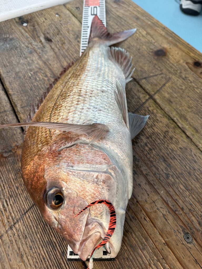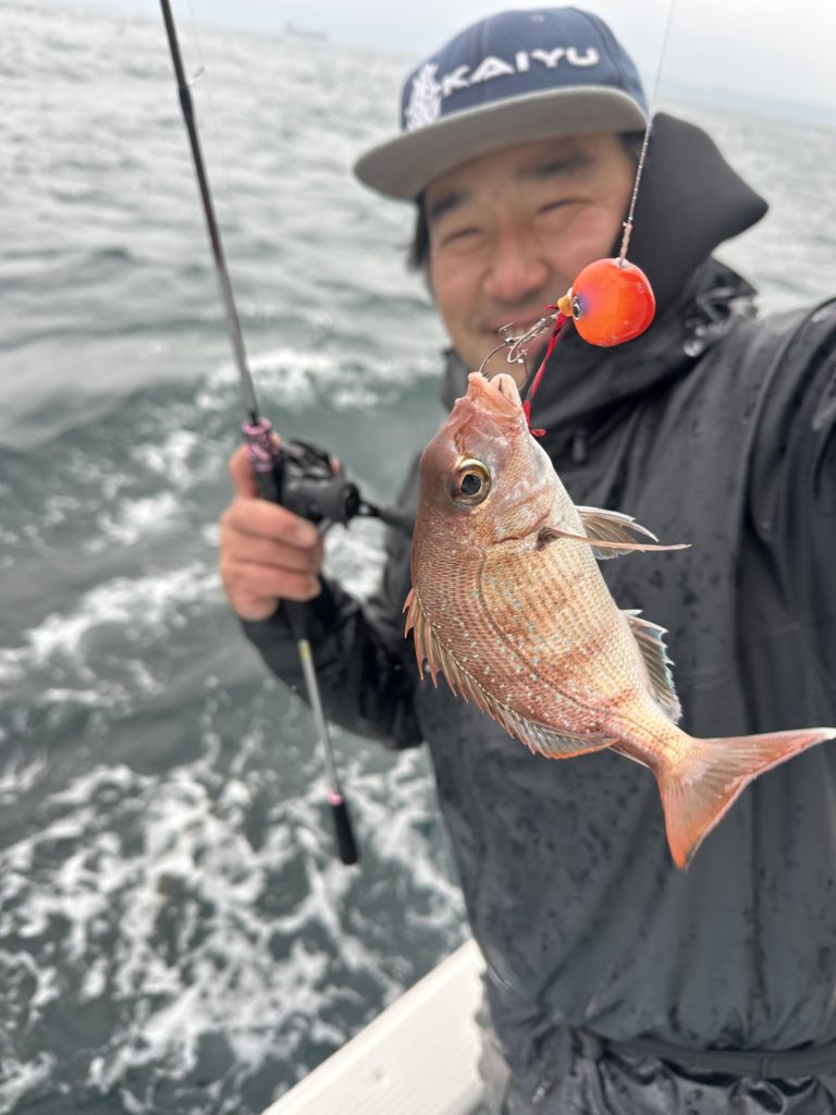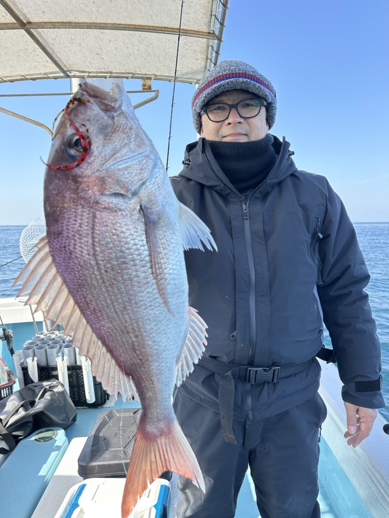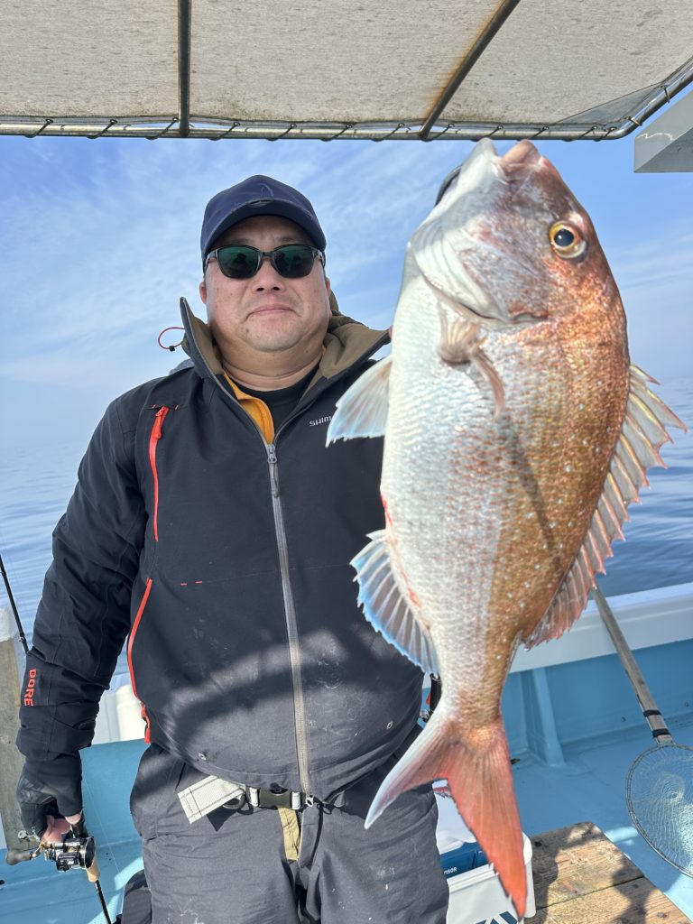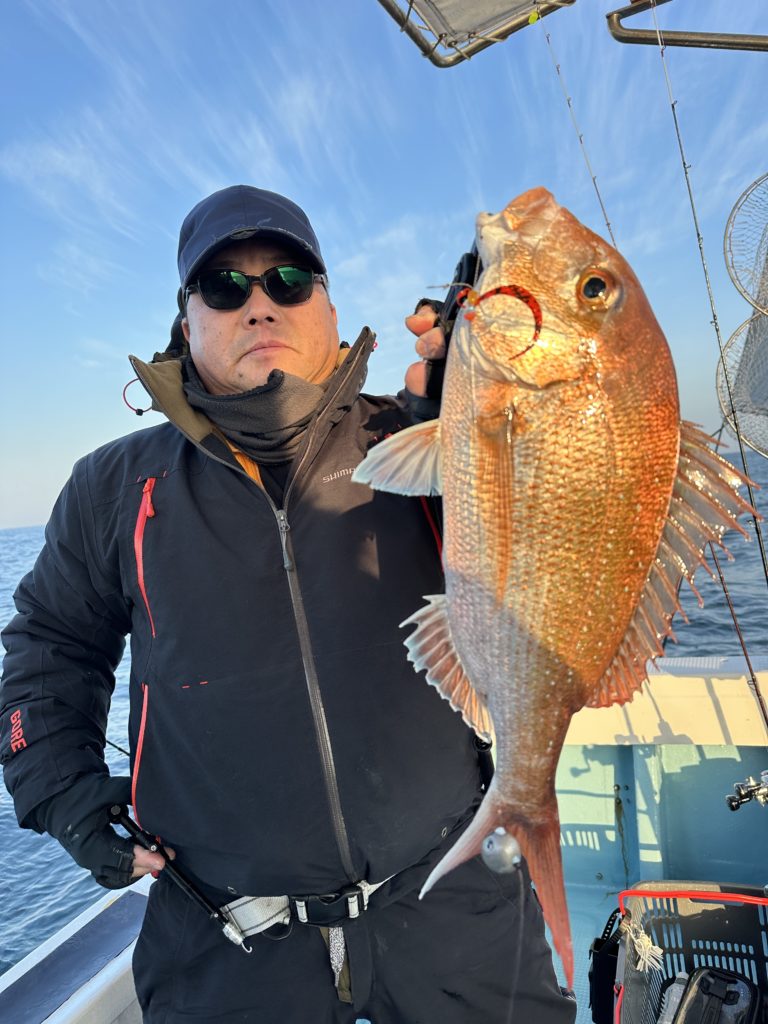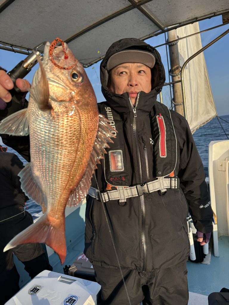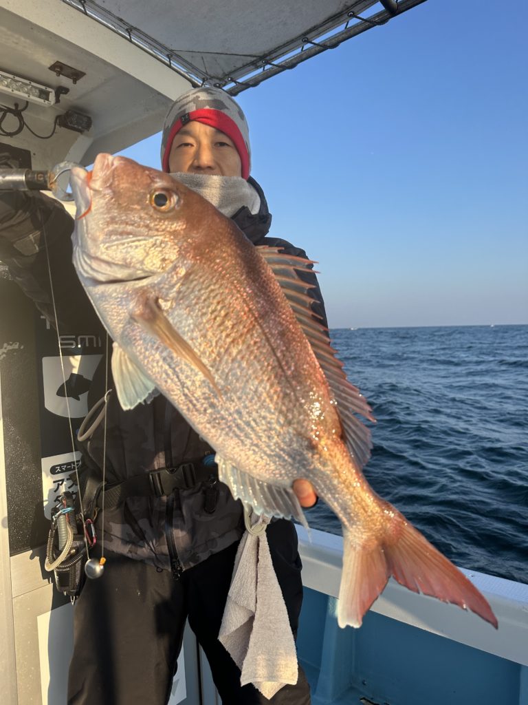 15m、20mとレンジを丁寧に探り、浮いている真鯛もしっかりキャッチ。