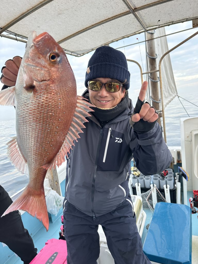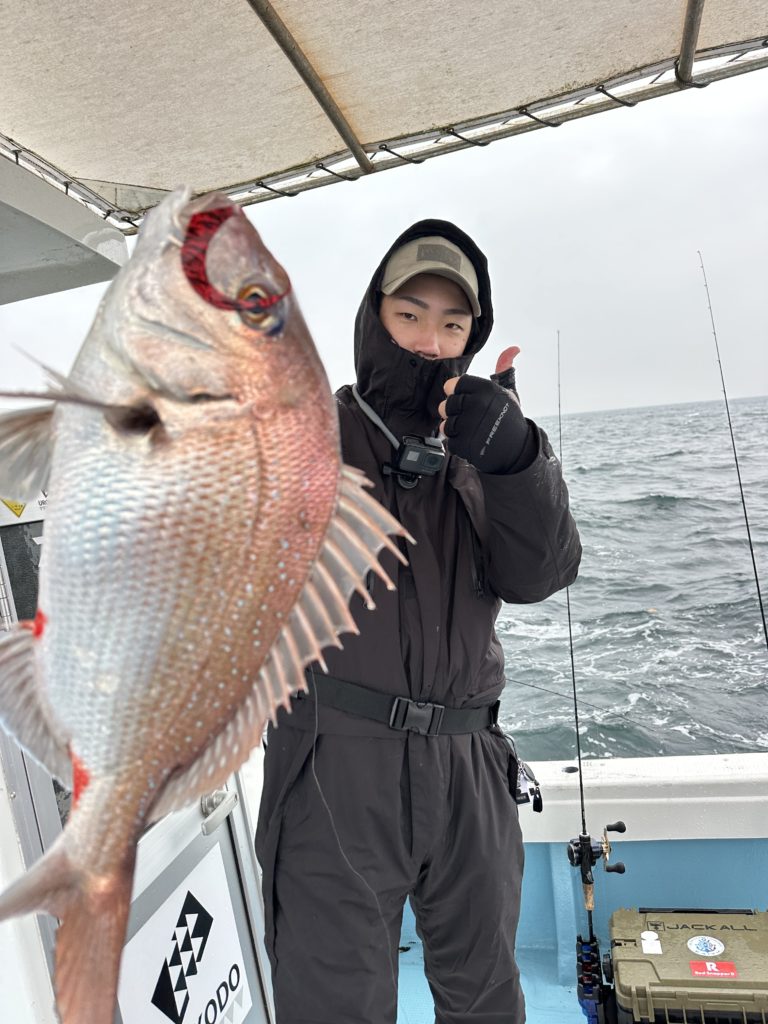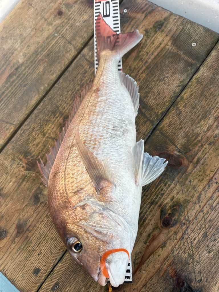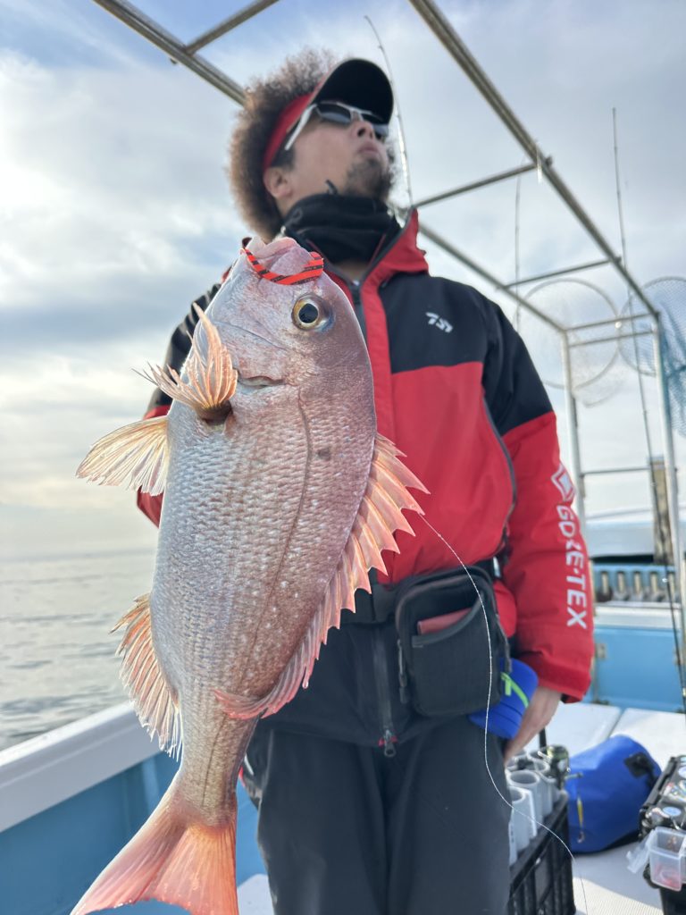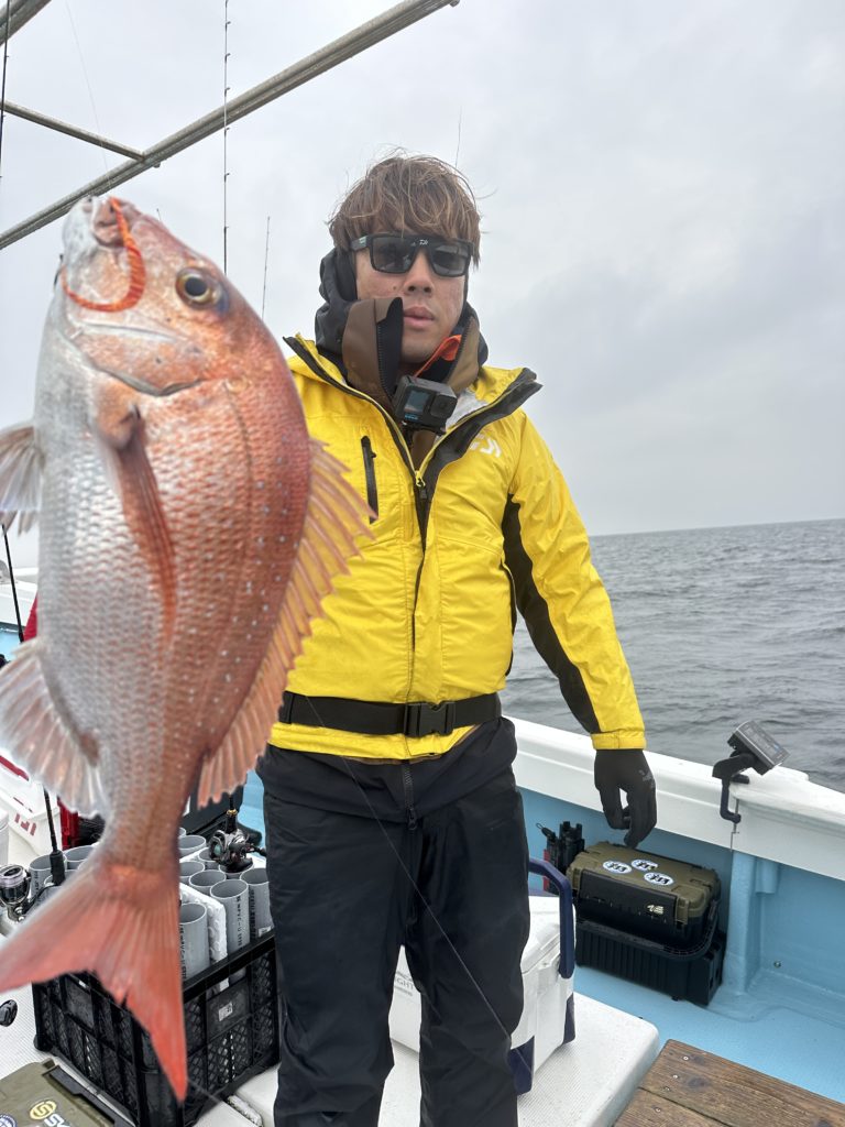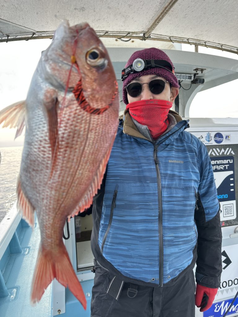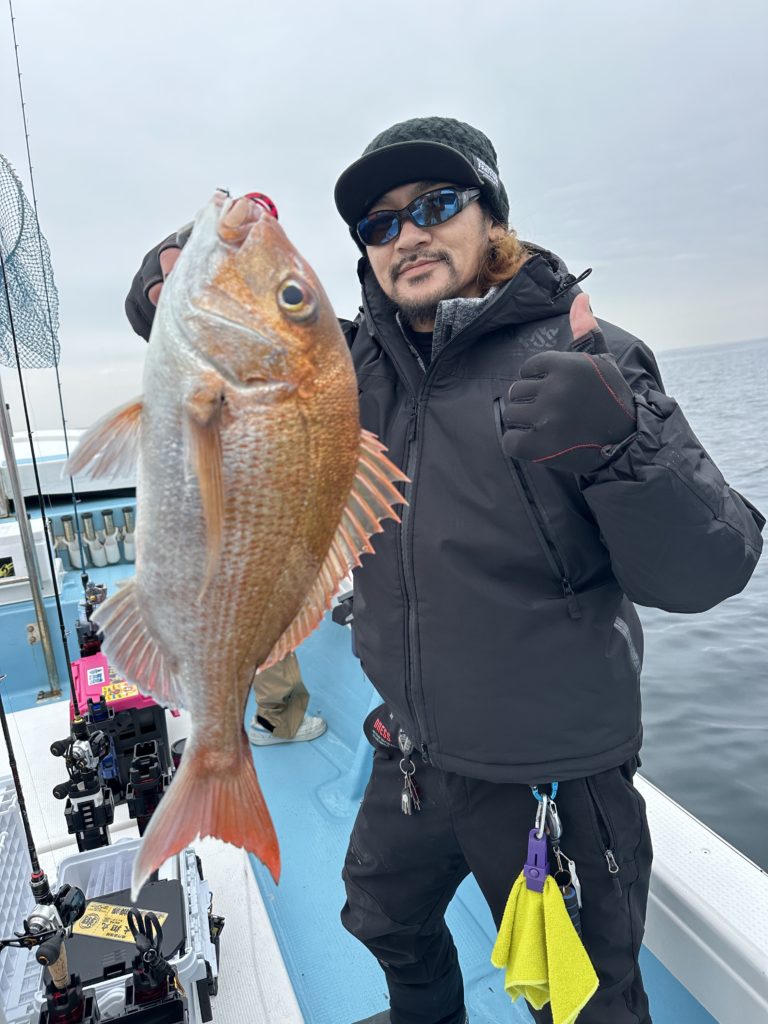 15m、20mとレンジを丁寧に探り、浮いている真鯛もしっかりキャッチ。