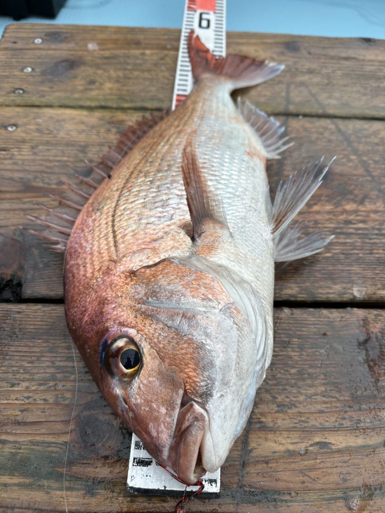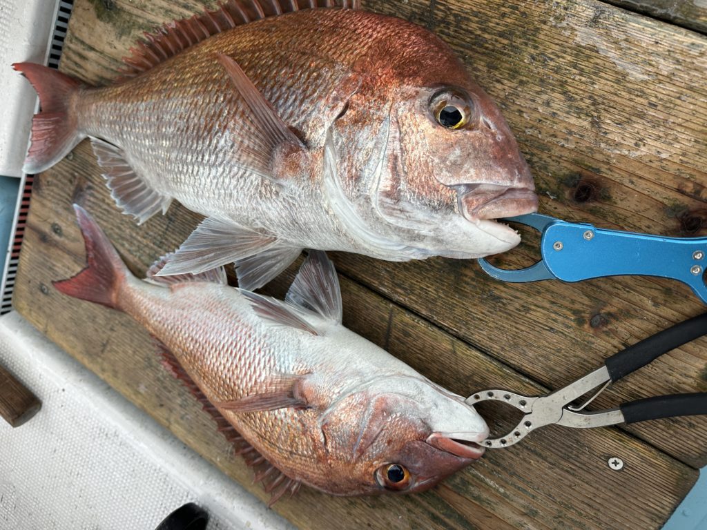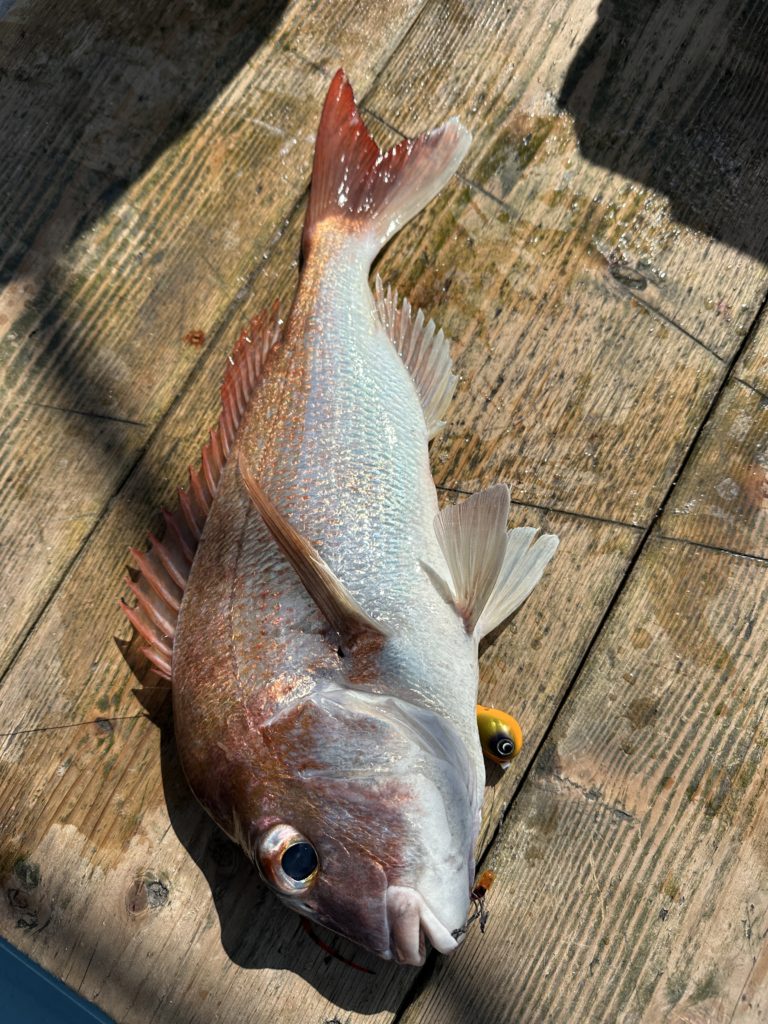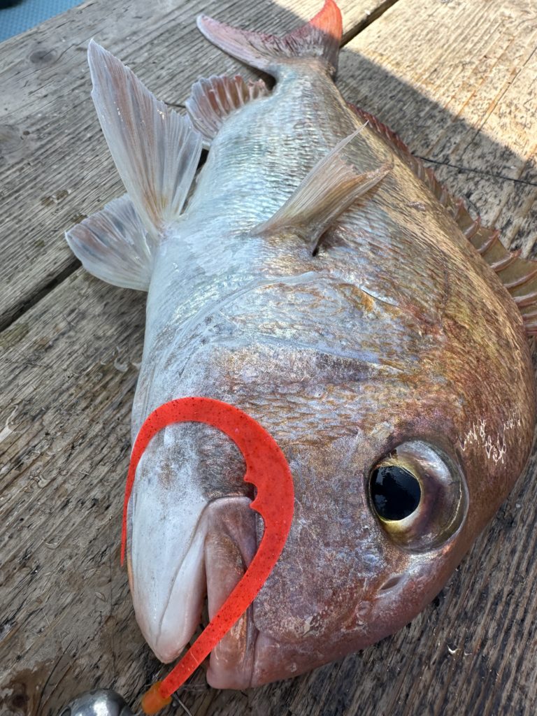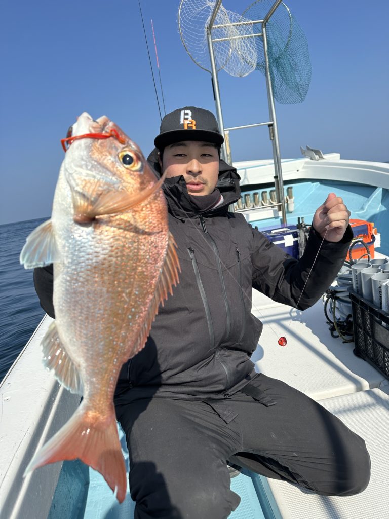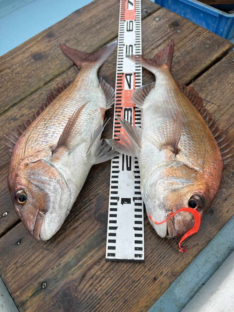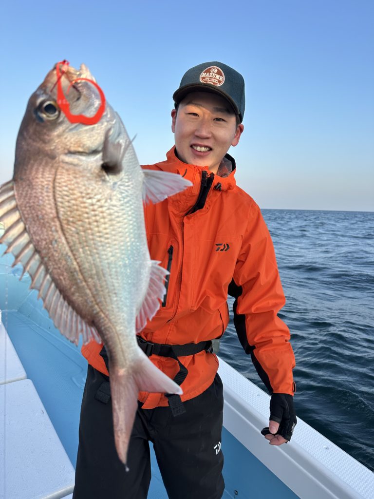 15m、20mとレンジを丁寧に探り、浮いている真鯛もしっかりキャッチ。