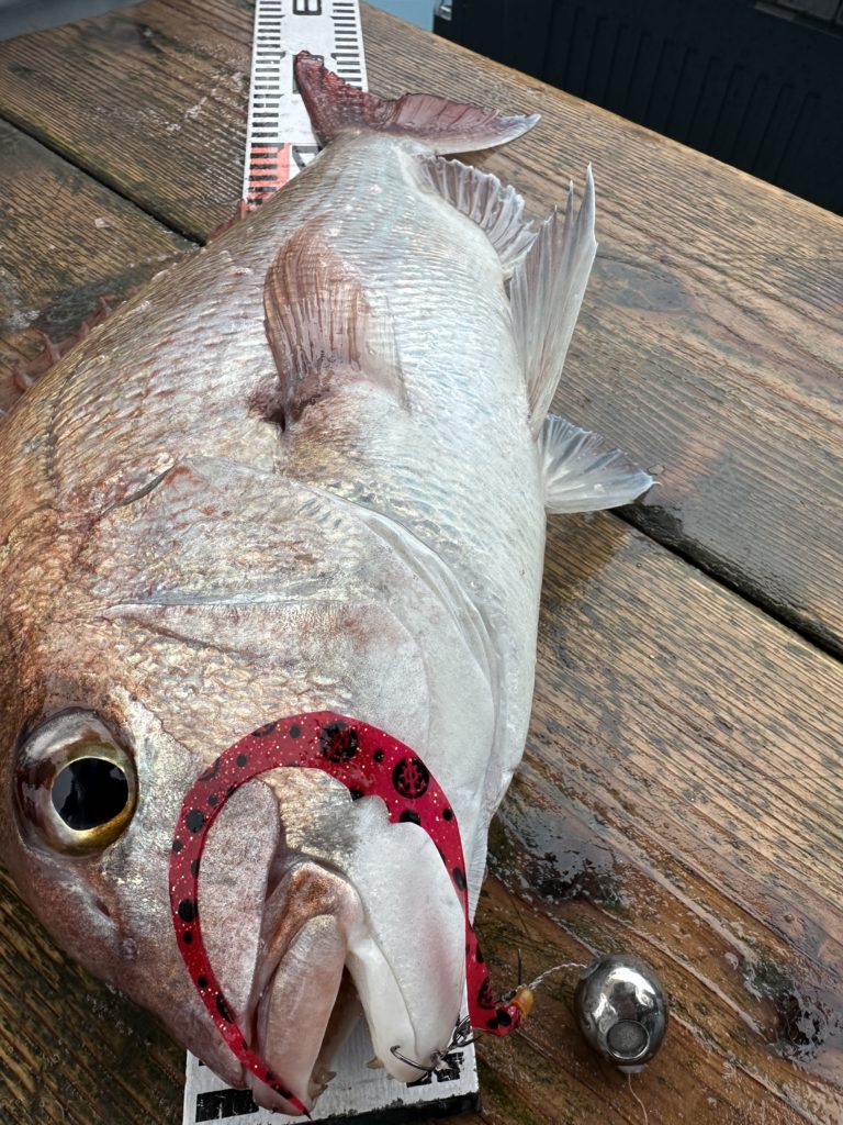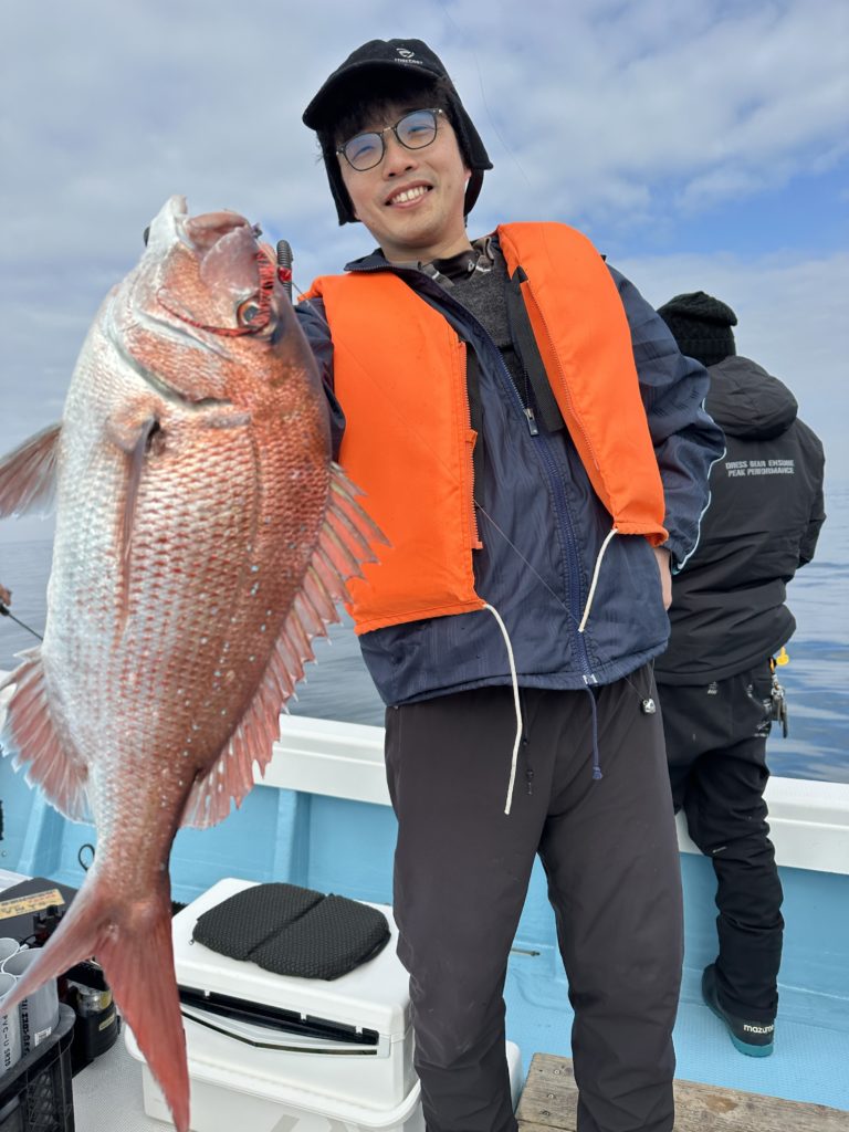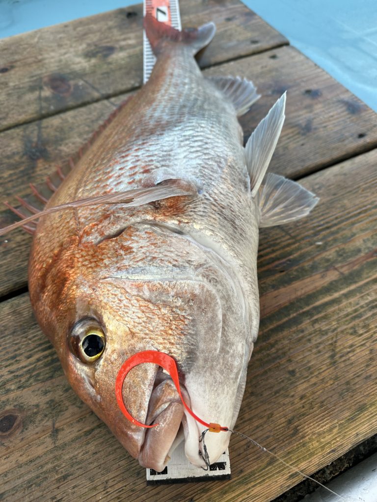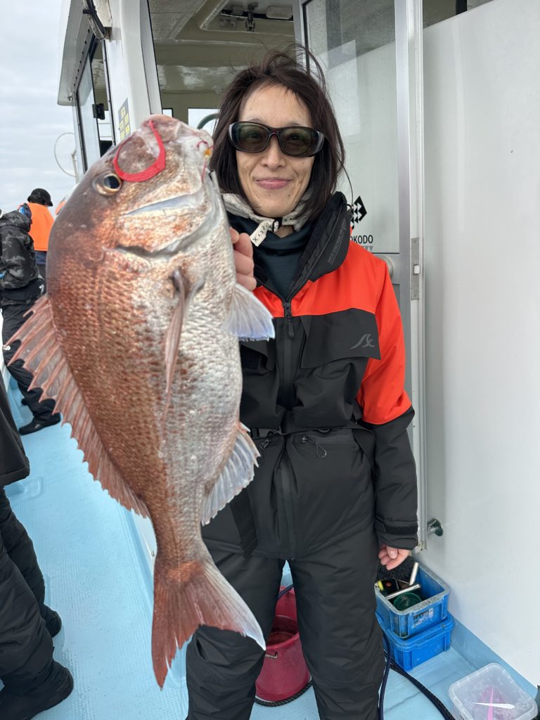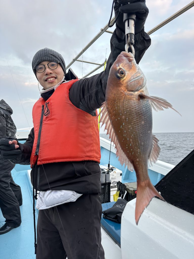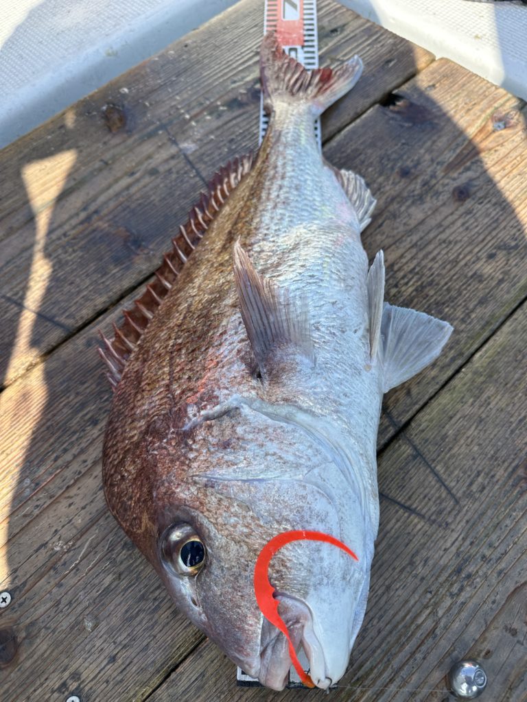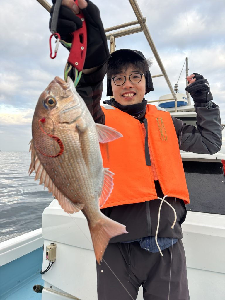 15m、20mとレンジを丁寧に探り、浮いている真鯛もしっかりキャッチ。