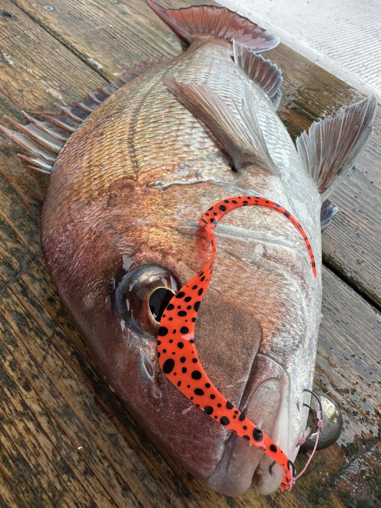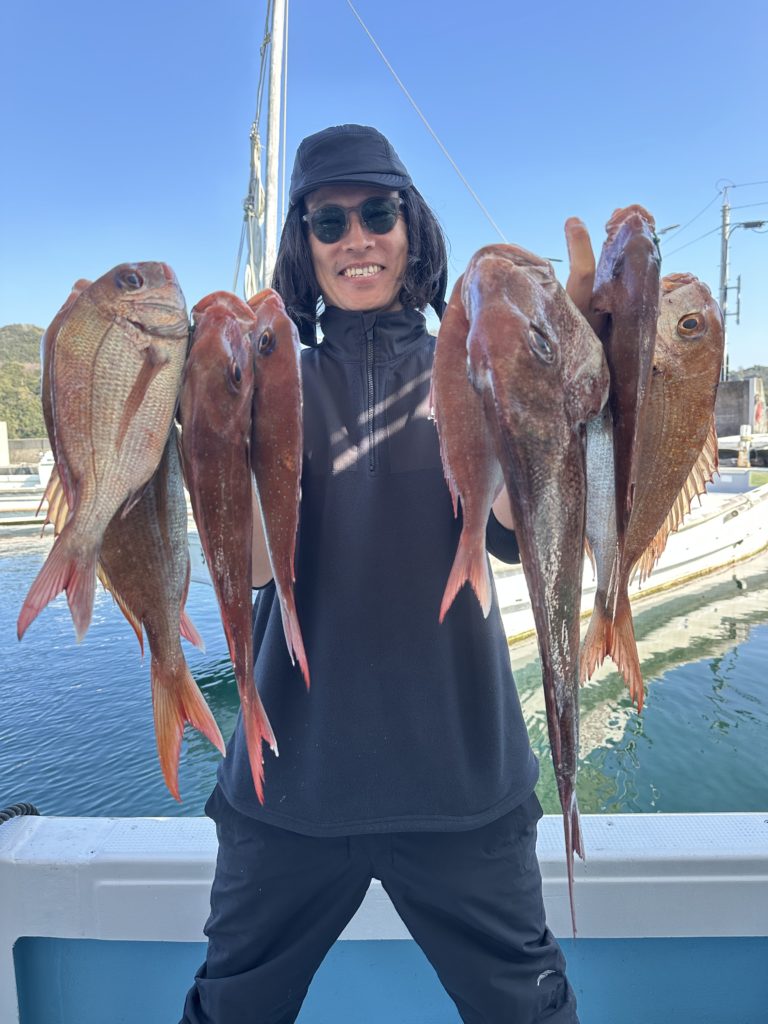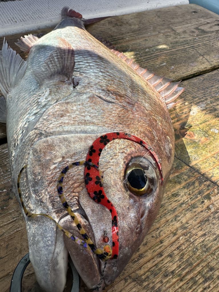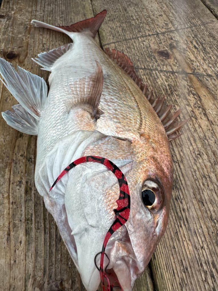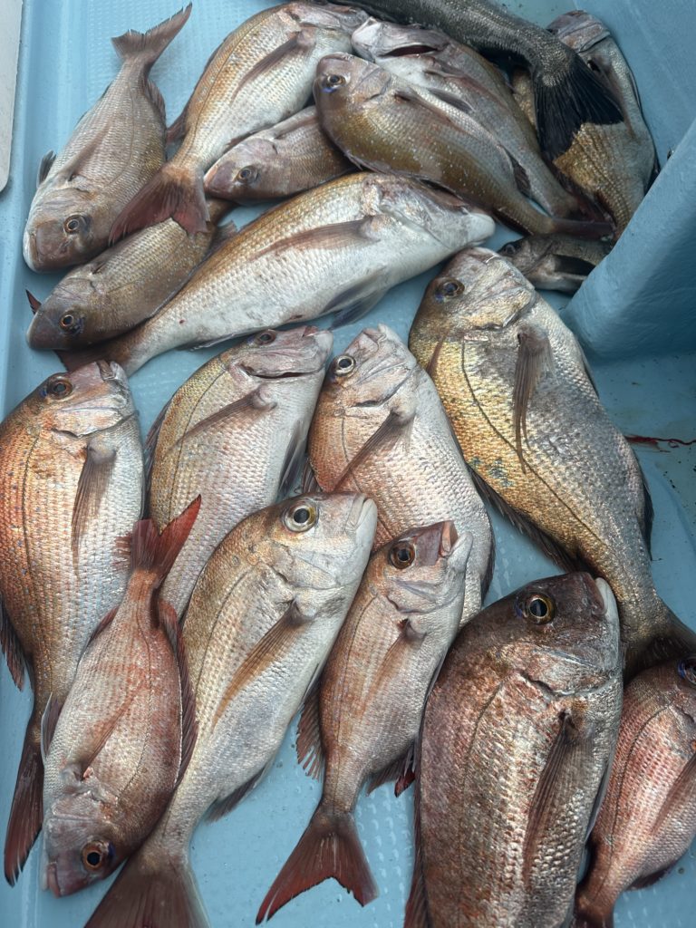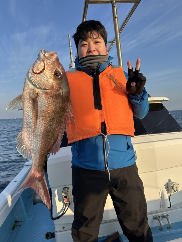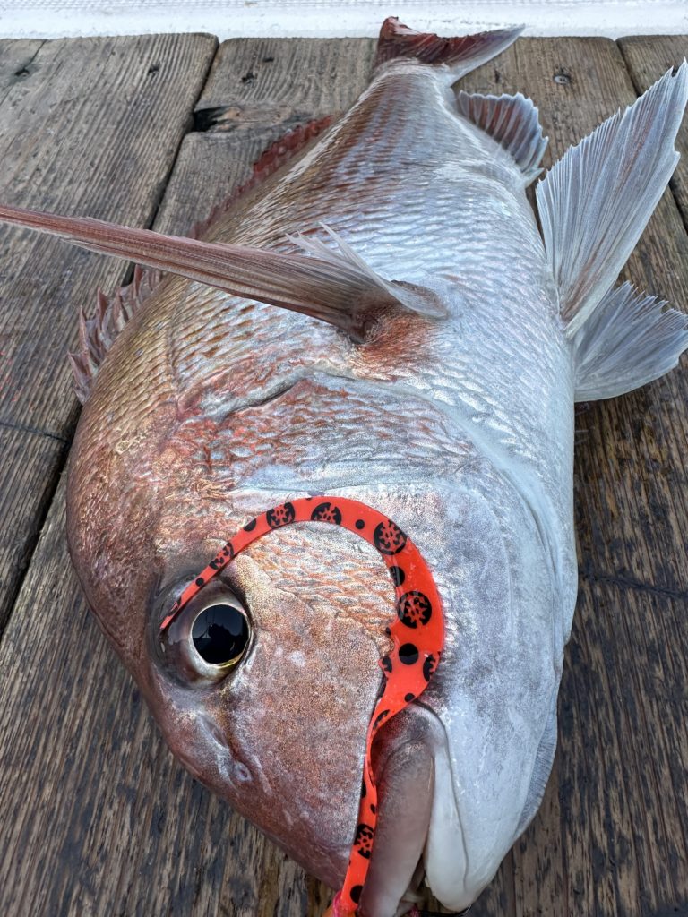 15m、20mとレンジを丁寧に探り、浮いている真鯛もしっかりキャッチ。