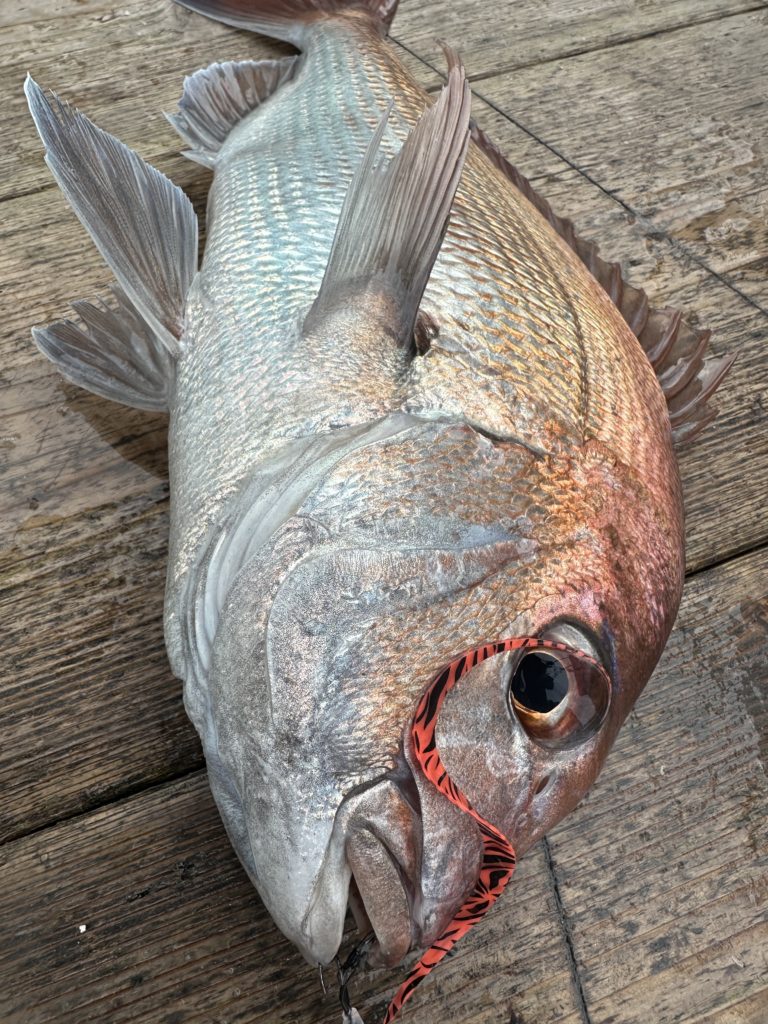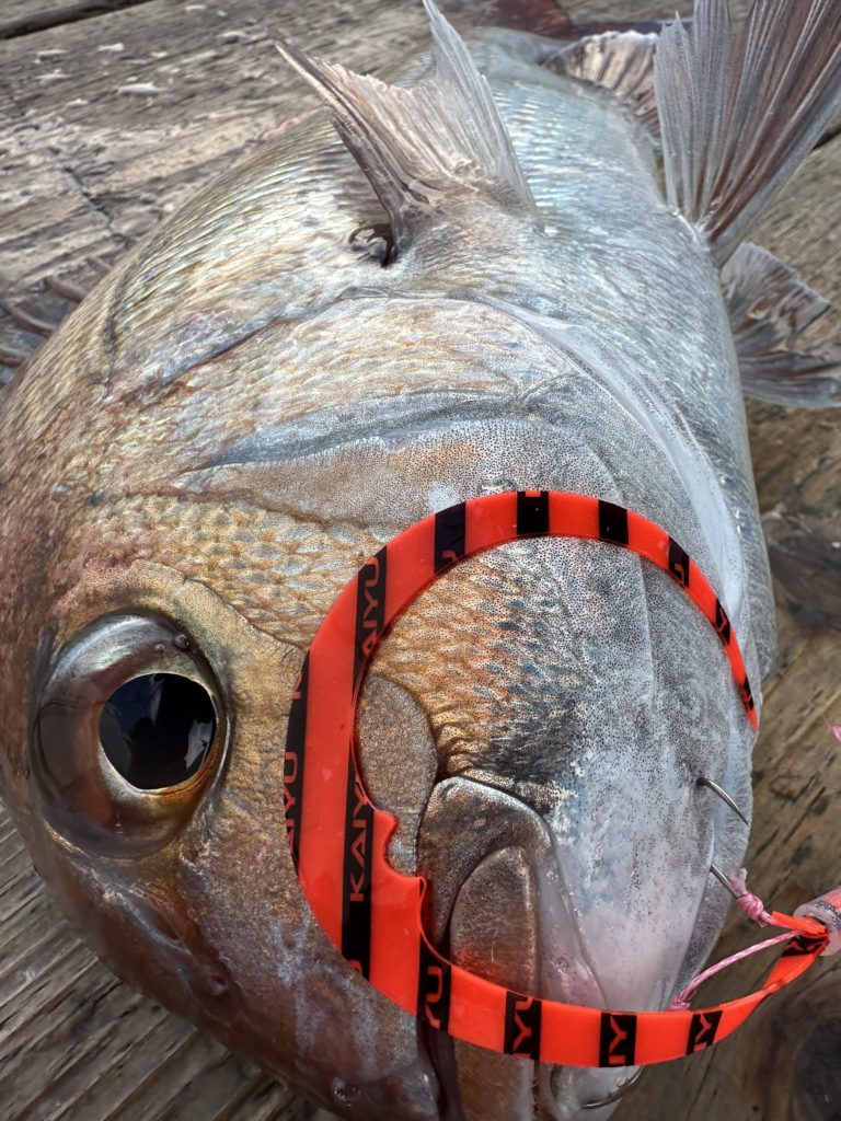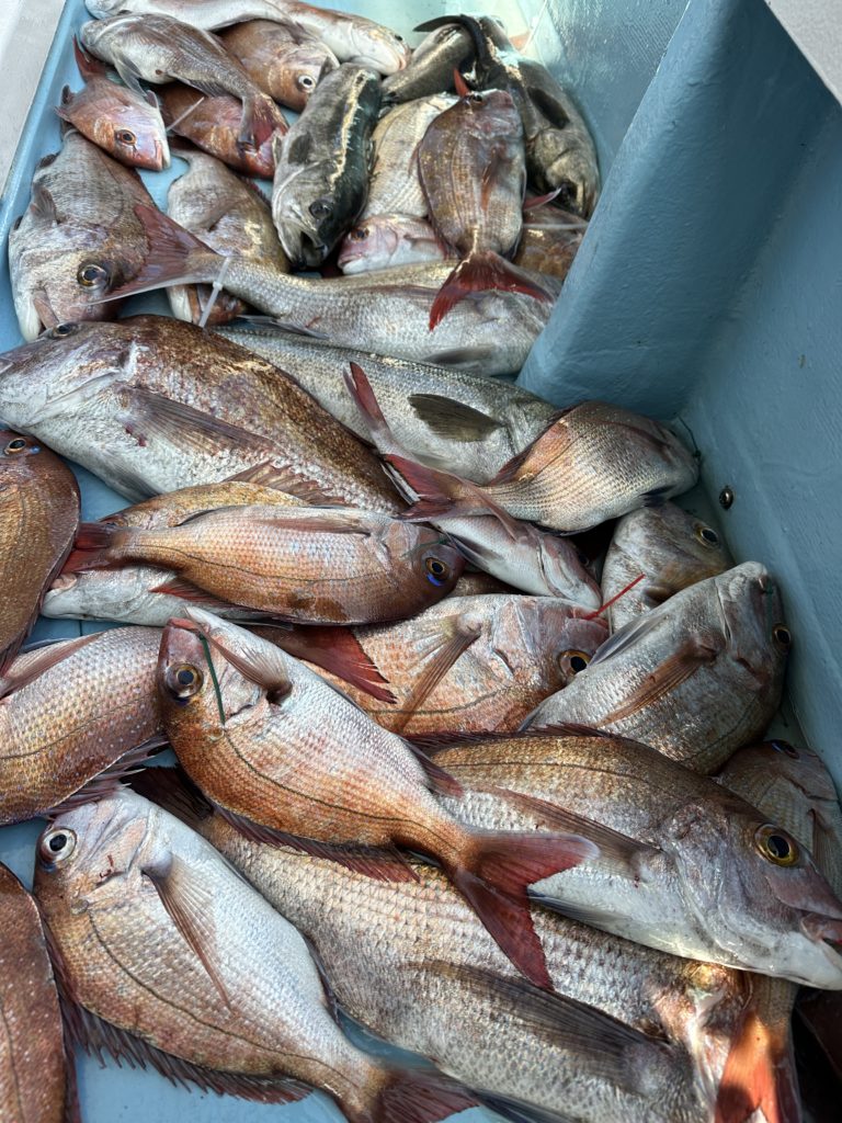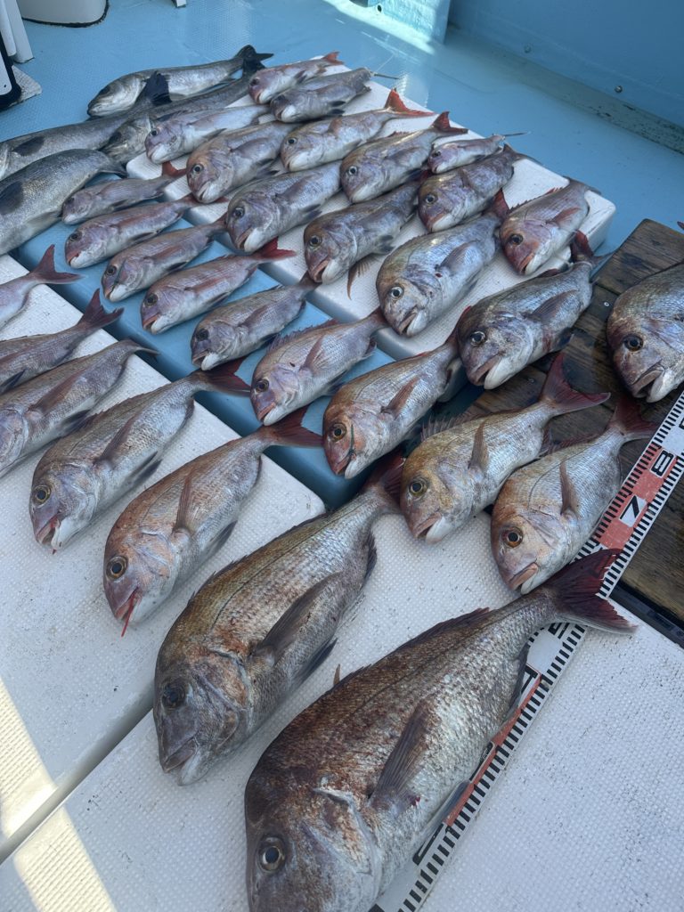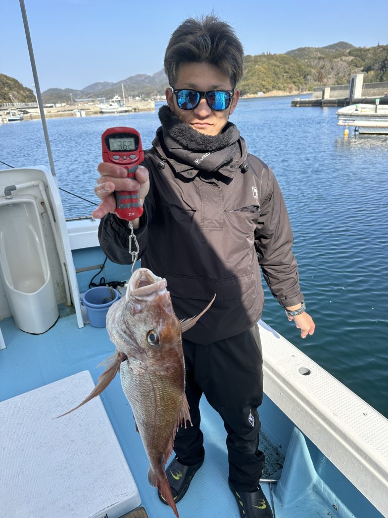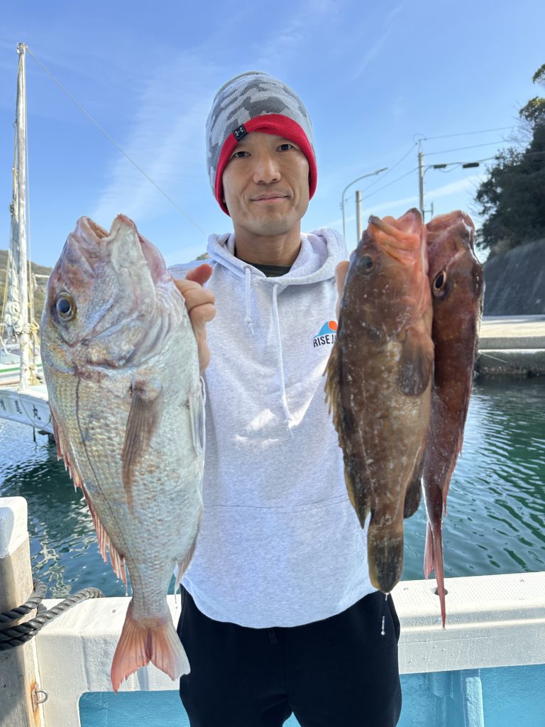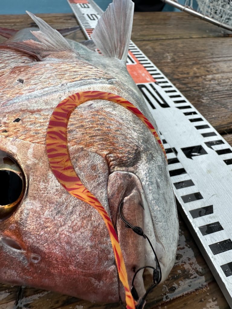 15m、20mとレンジを丁寧に探り、浮いている真鯛もしっかりキャッチ。