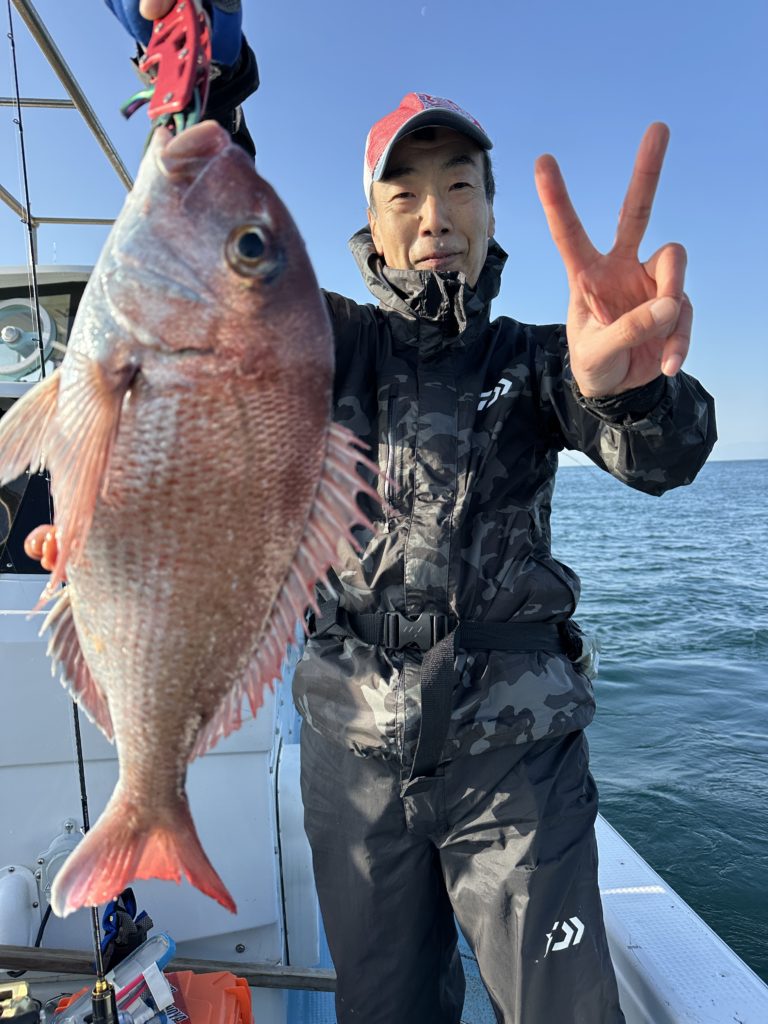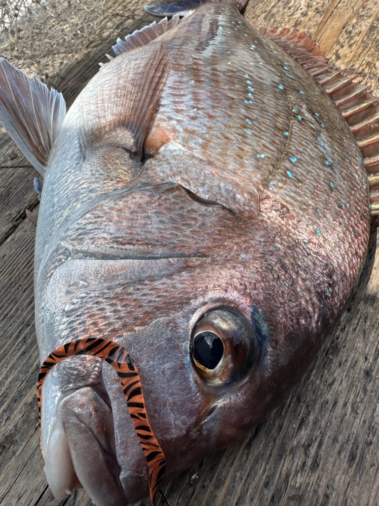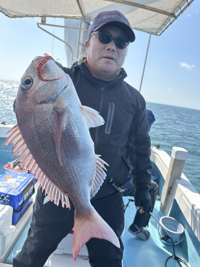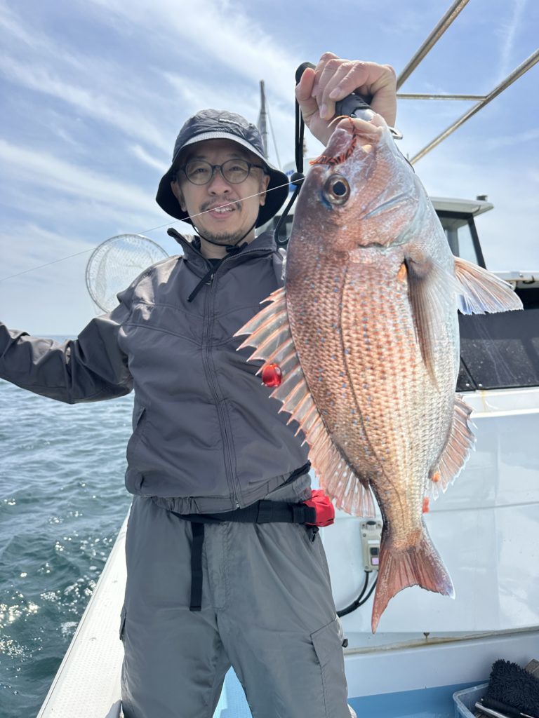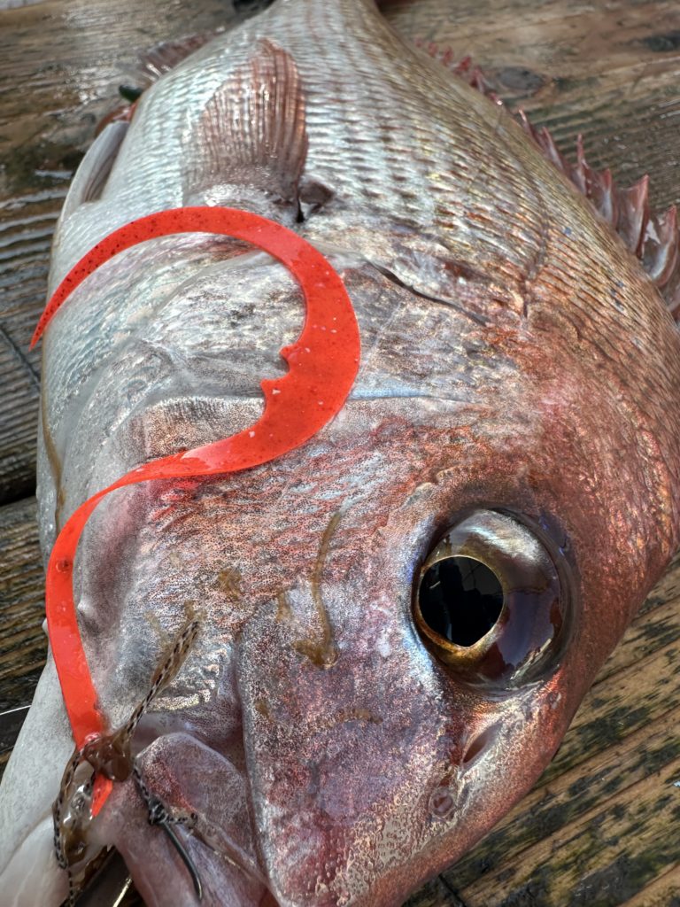 それでも釣れれば乗っ込みシーズンらしい、丸々とした良型真鯛。