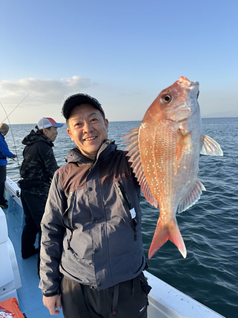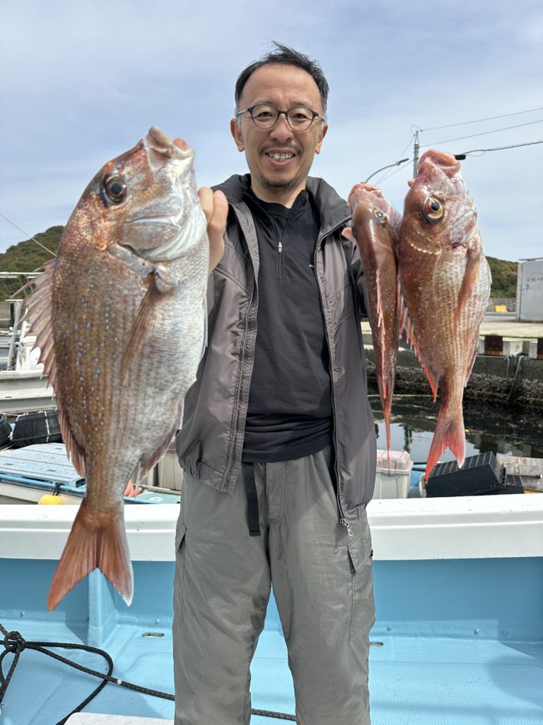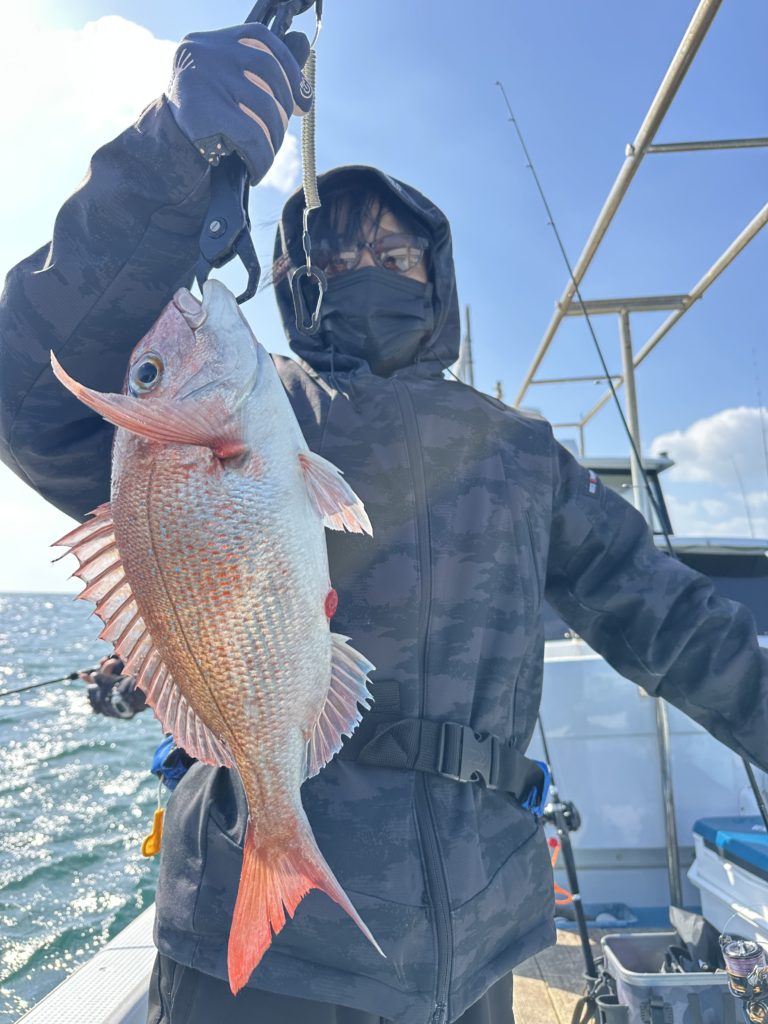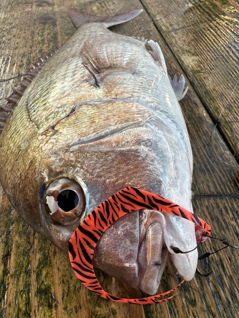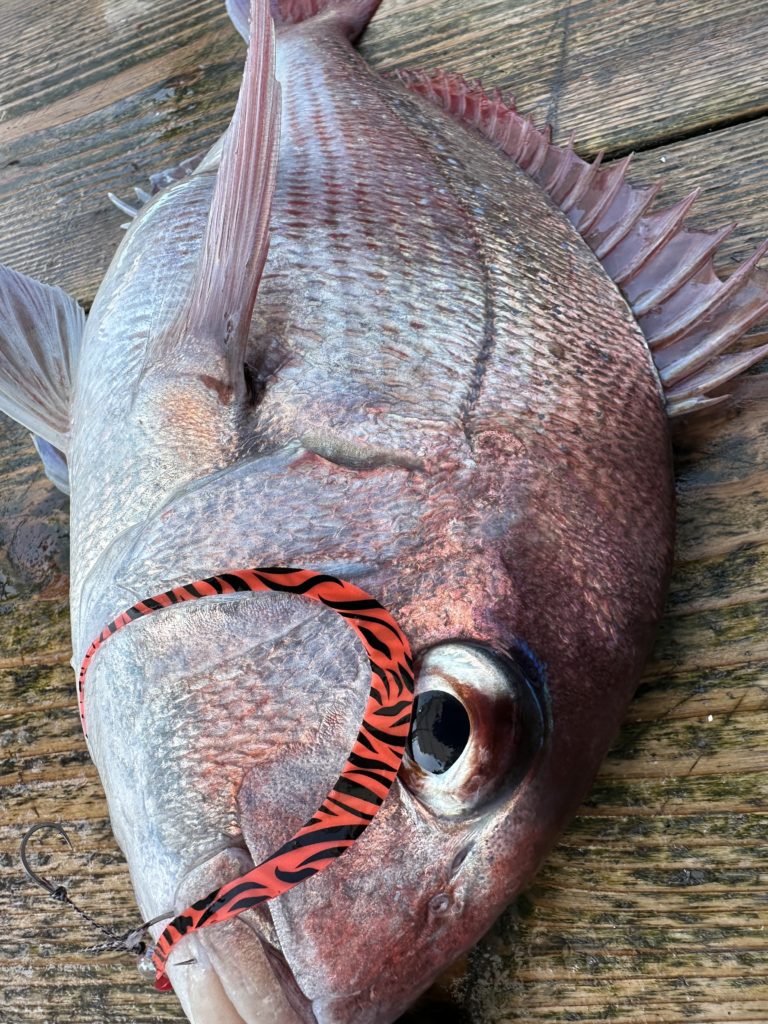 それでも釣れれば乗っ込みシーズンらしい、丸々とした良型真鯛。
